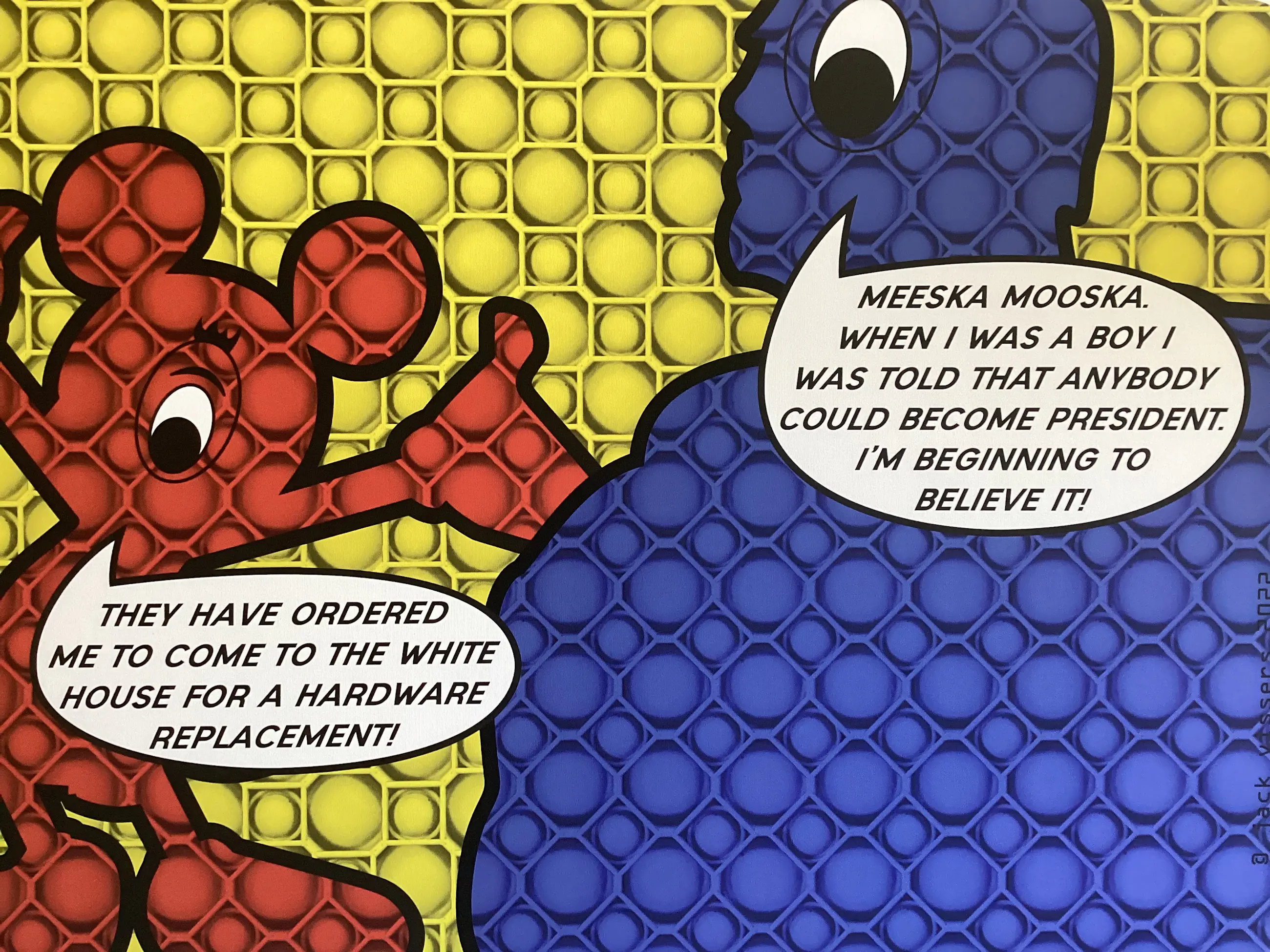 Offset print op canvas - Meeska Mooska Jack Vissers, 2022. Formaat 70 x 100 cm. Achterop hand gesigneerd en in de druk. Oplage nr 5/9.