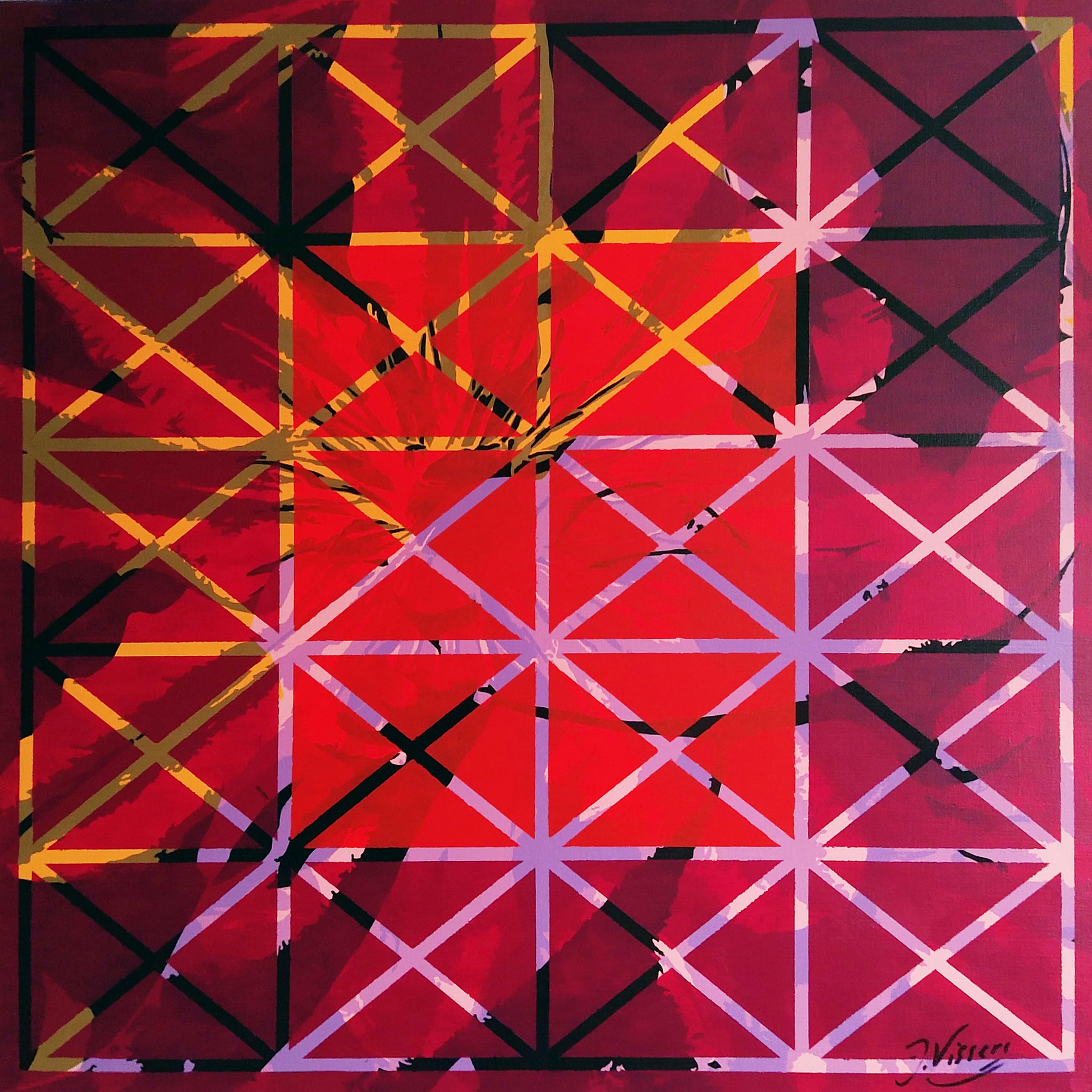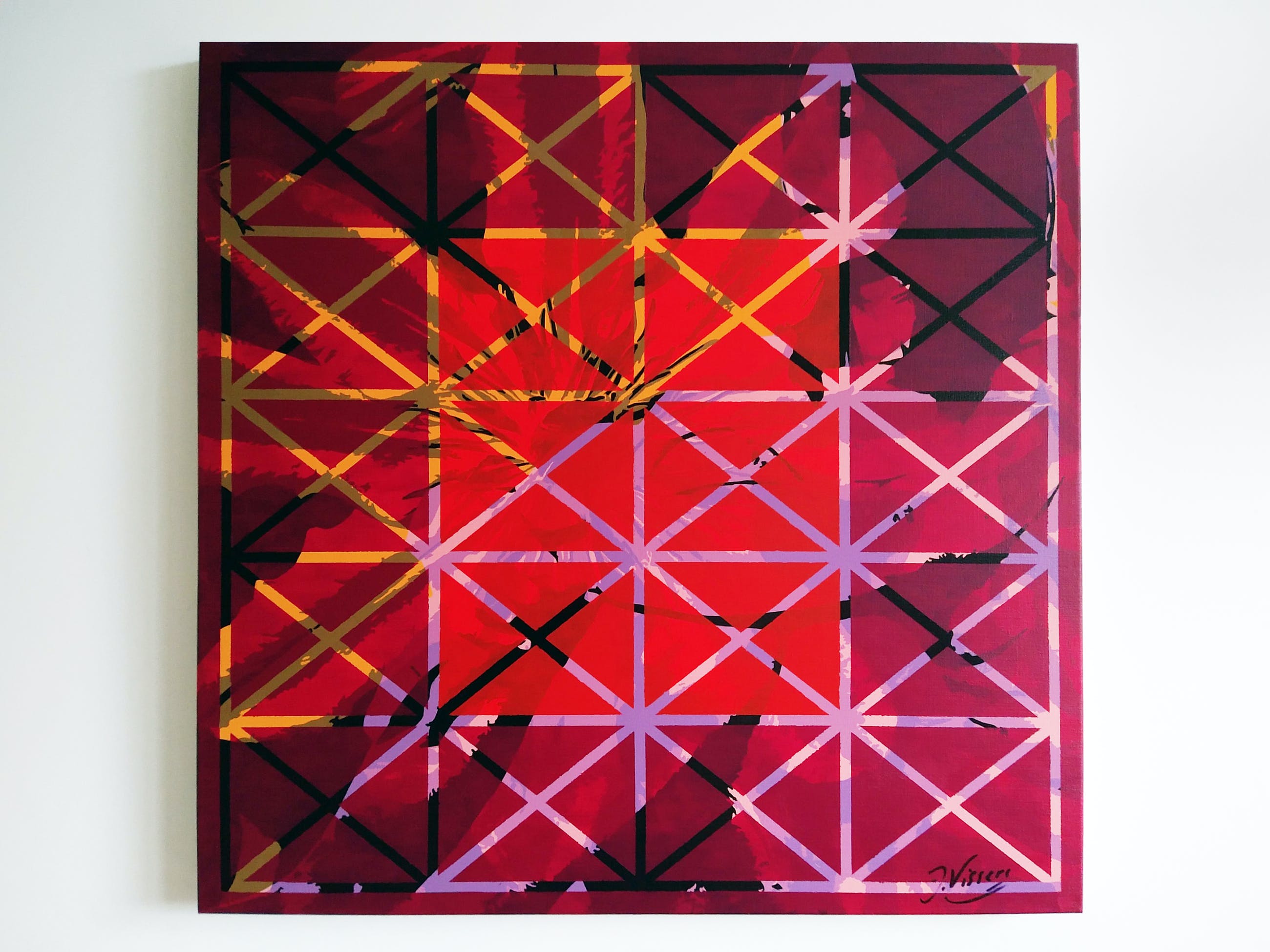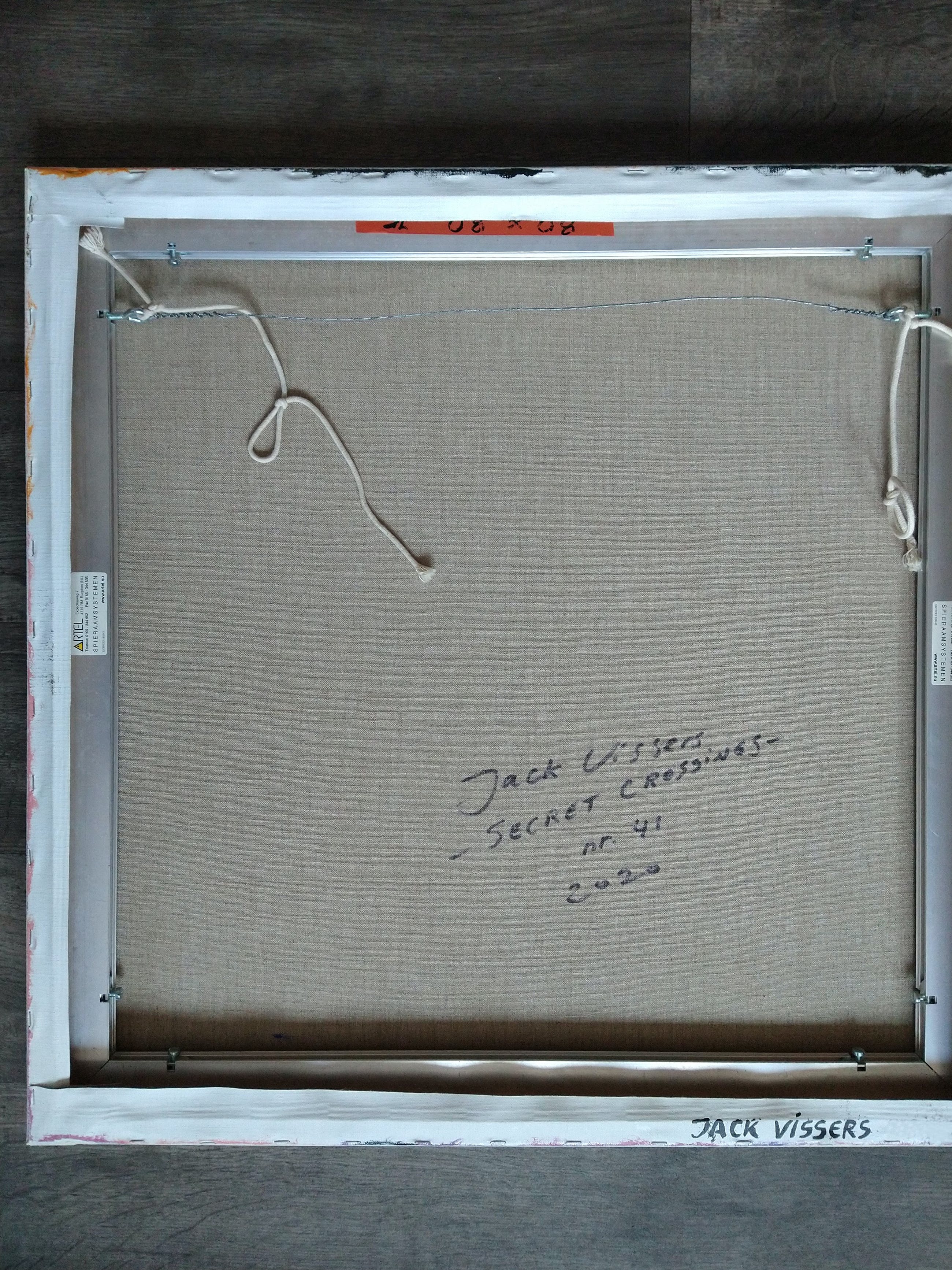 Jack Vissers - Secret Crossings, nr. 41. Acryl op canvas, formaat 80 x 80 x 4 cm. R.o. hand gesigneerd, tevens achterop. Jaar 2020.