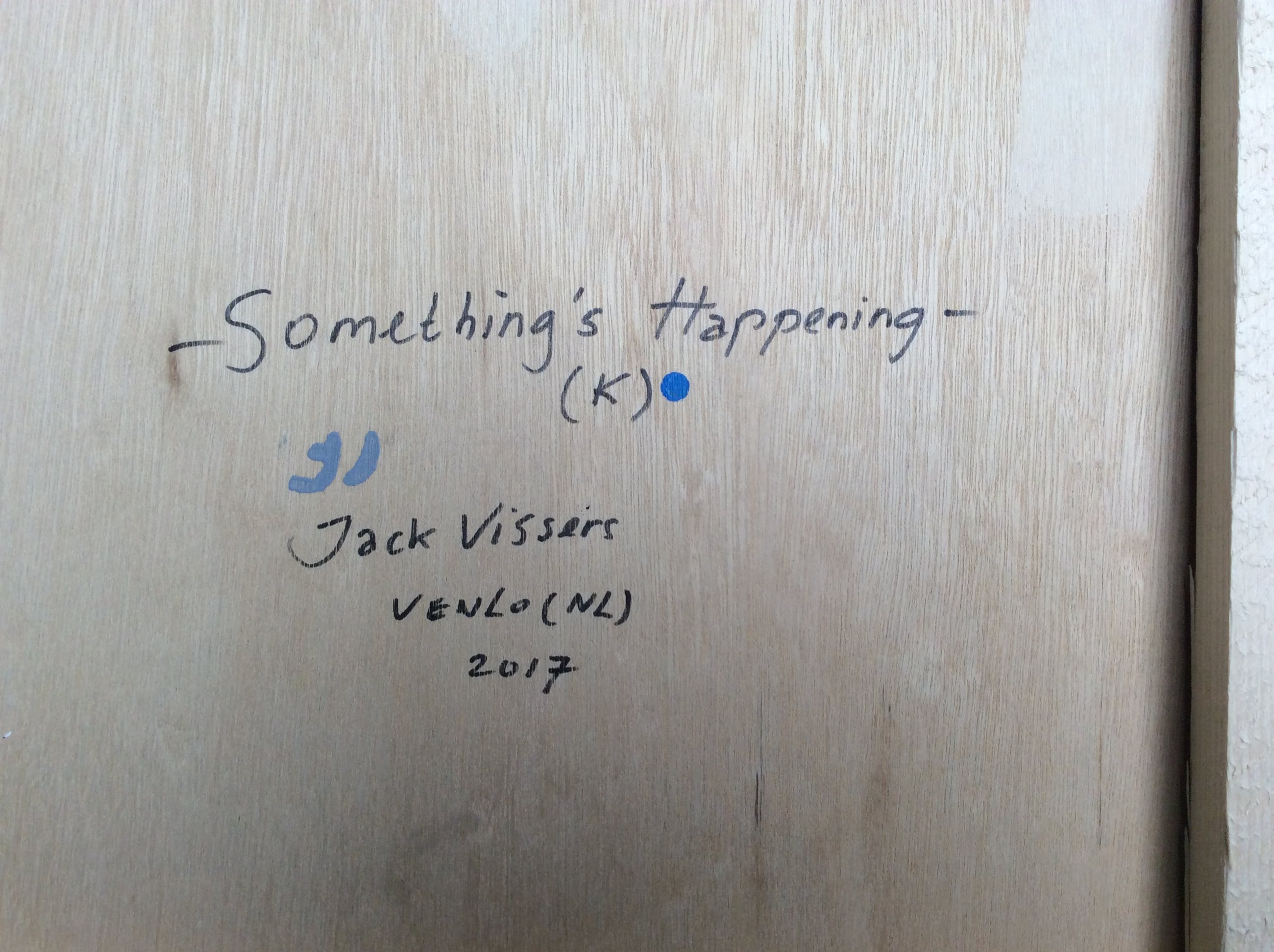 Jack Vissers: Something's Happening (Blue) - acryl op hout, ingelijst.