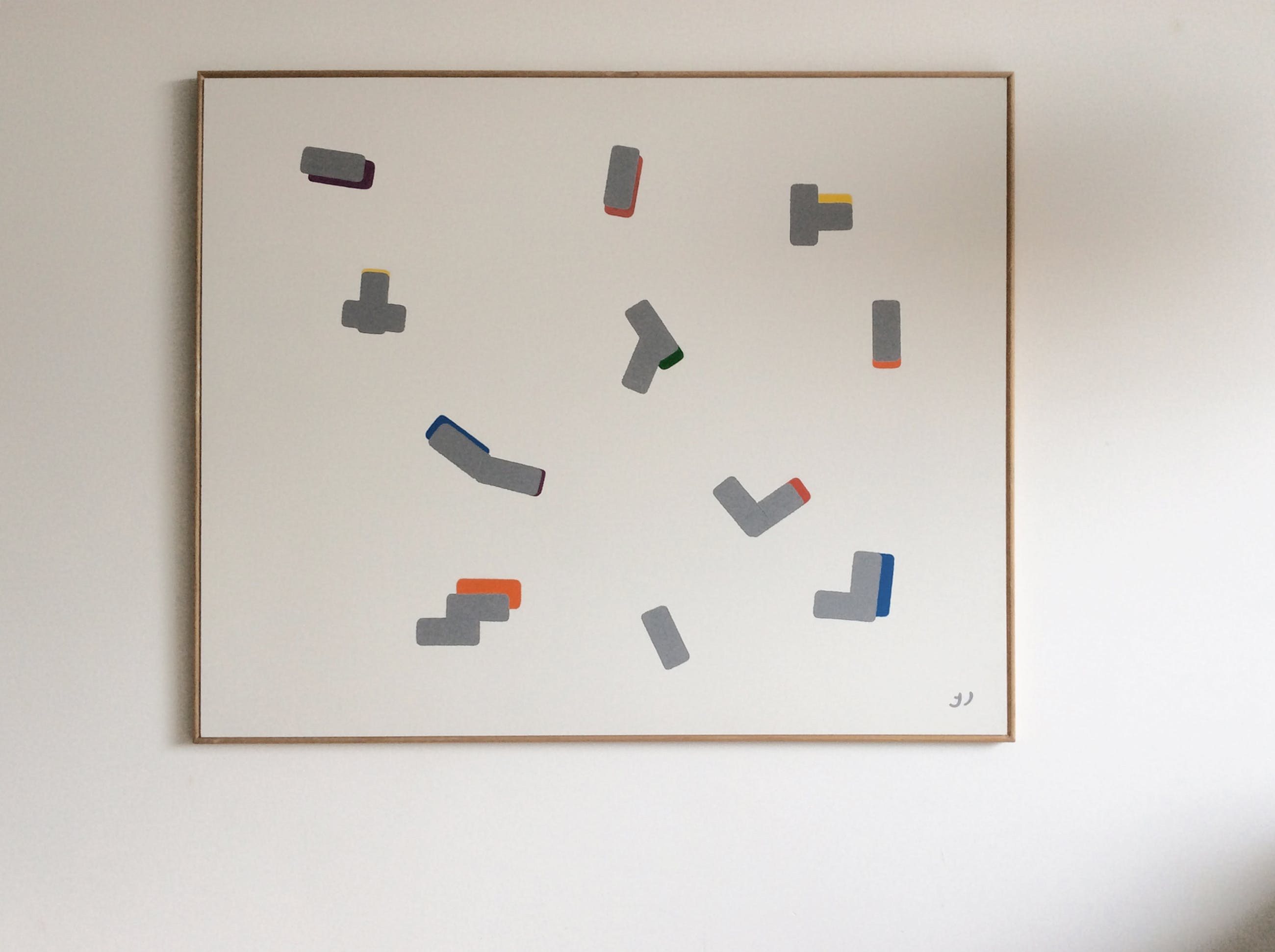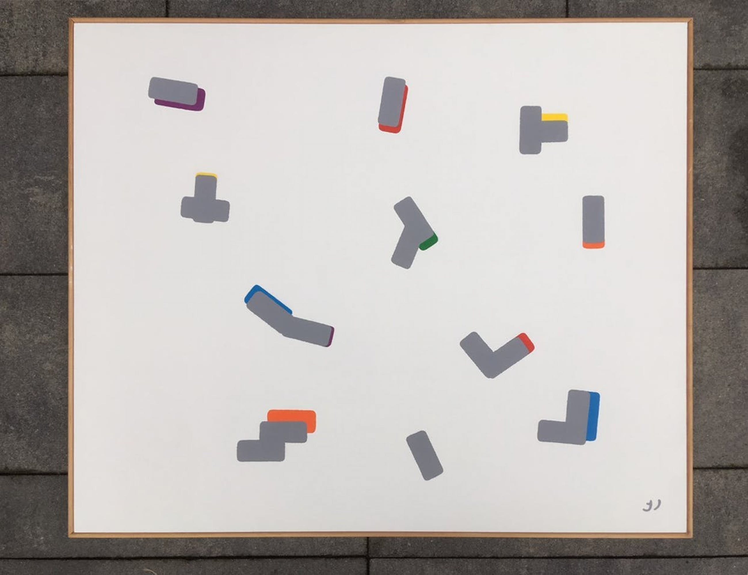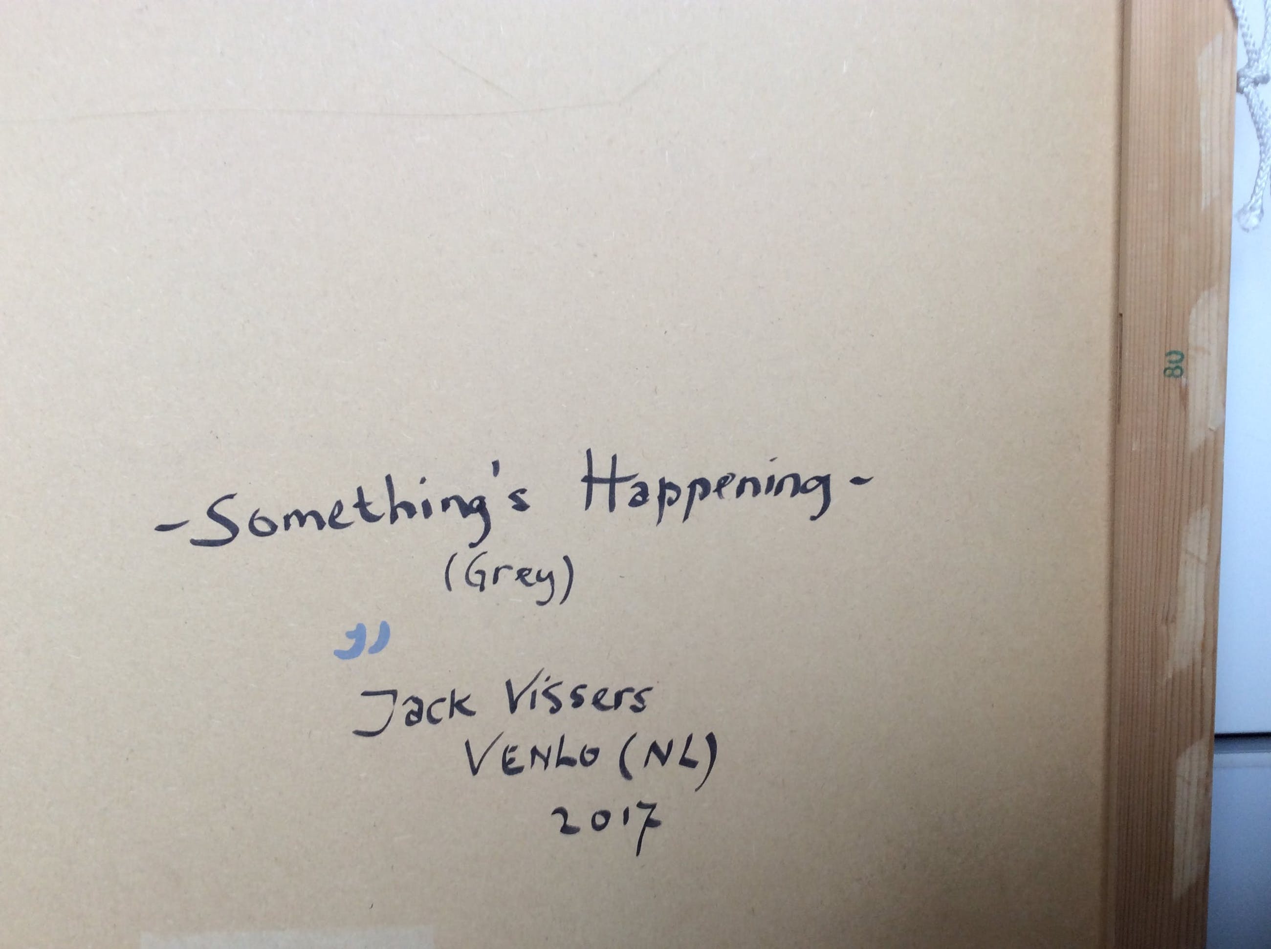 Jack Vissers: Something's Happening (Grey) - acryl op hout, ingelijst.
