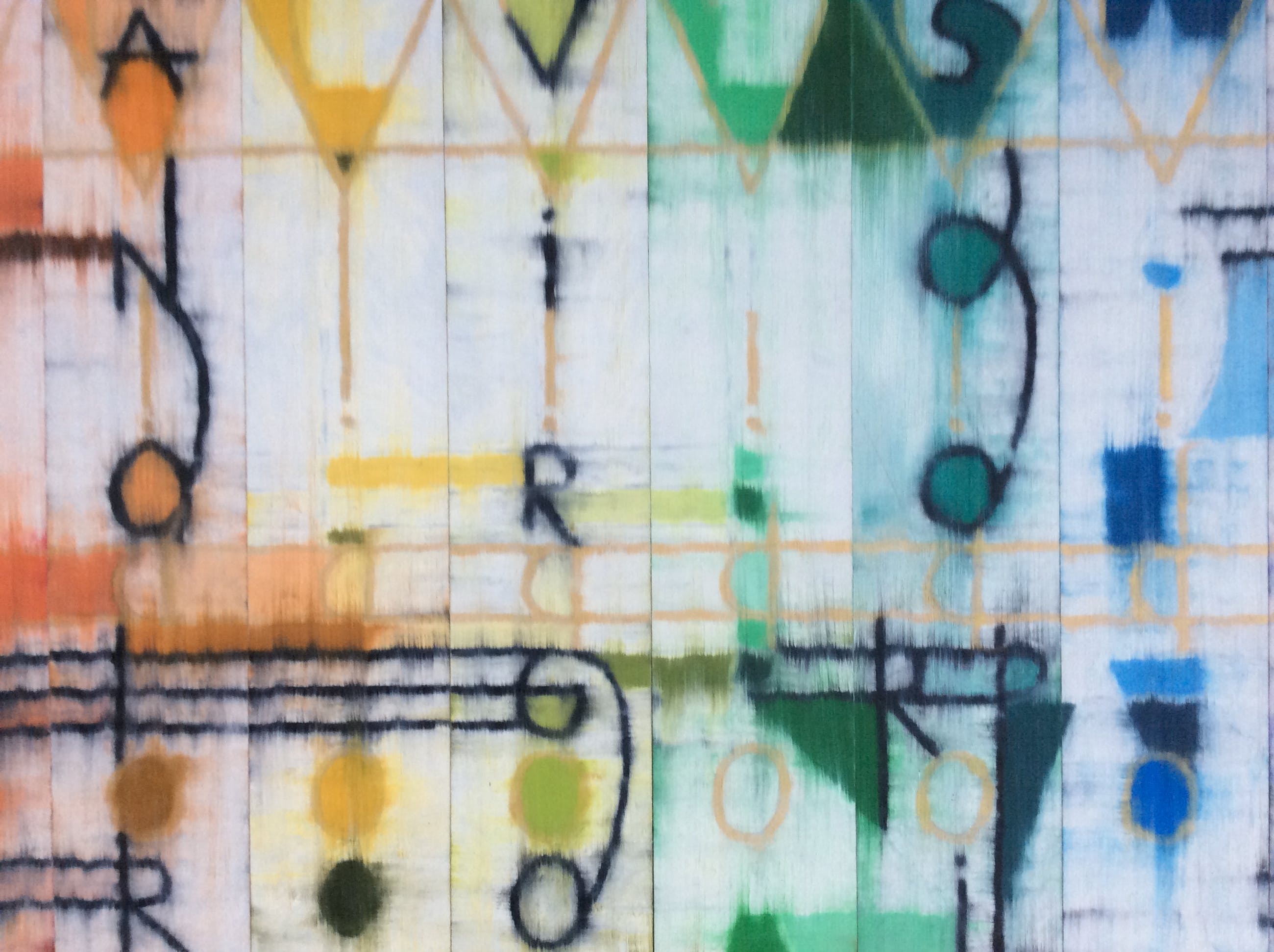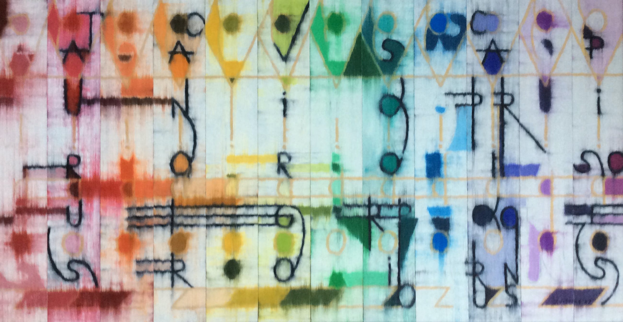 Olieverf op 12 houten panelen - Zodiak - 1997. Formaat incl. 122 x 64 cm. Rechts onder en achterop hand gesigneerd.