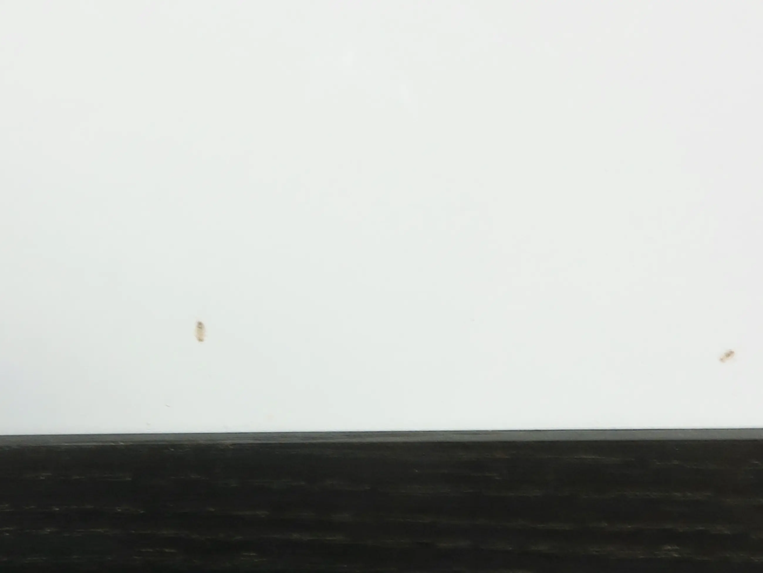 | Restant van sticker op de (plexi)glasplaat. Enkele minimale zeer kleine pestdiertjes achter de glasplaat. | |