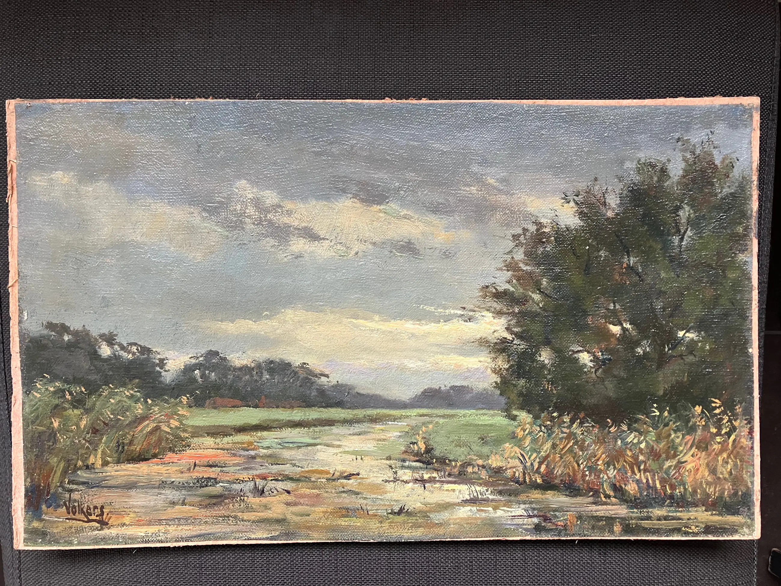 Werk verkregen uit erfenis van schilder zelf. De schilder staat ook vermeld in Scheen. De randjes van het paneeltje zijn hand-gezaagd. Zeer waarschijnlijk een werk uit de periode van de WOII.