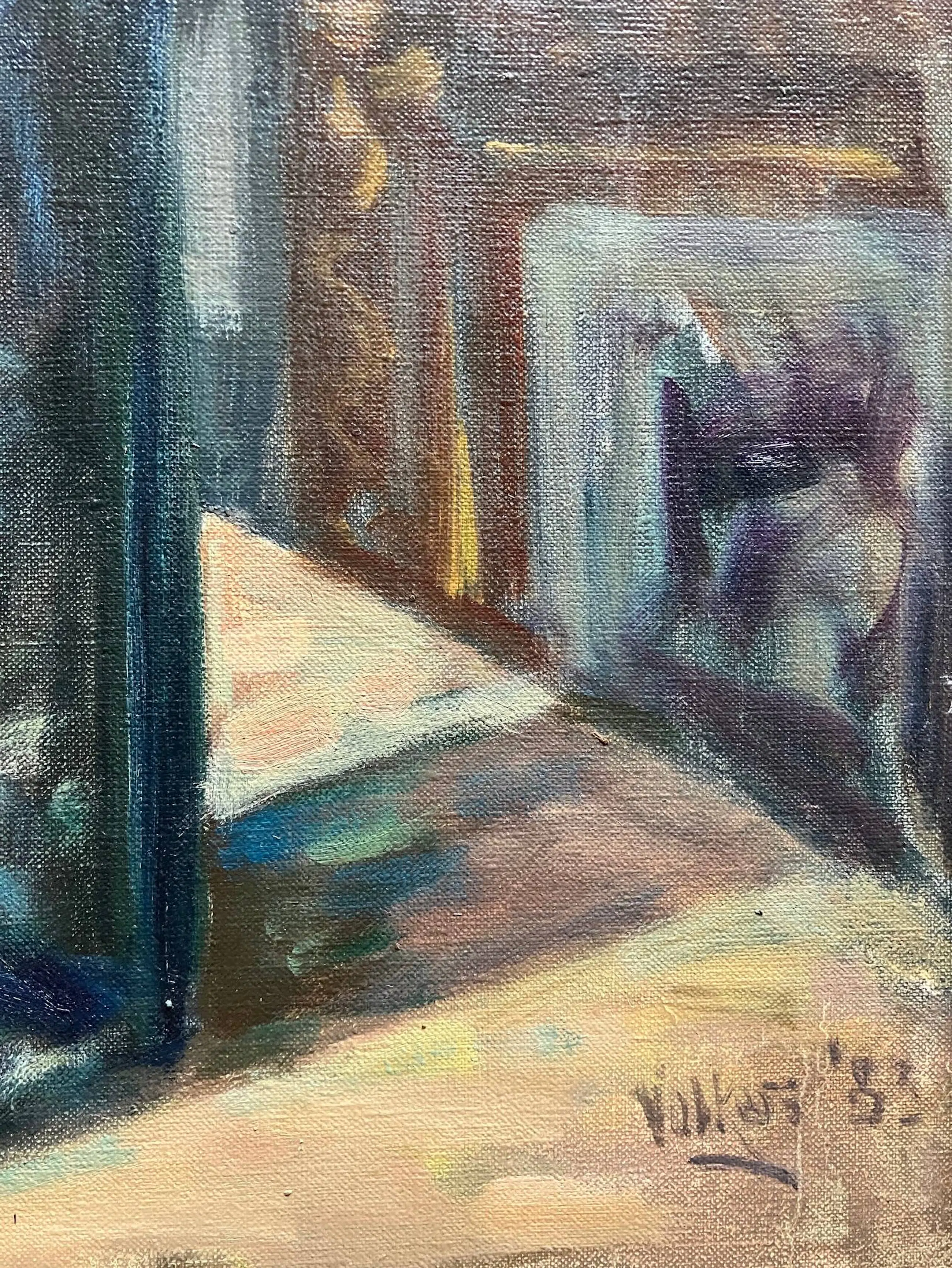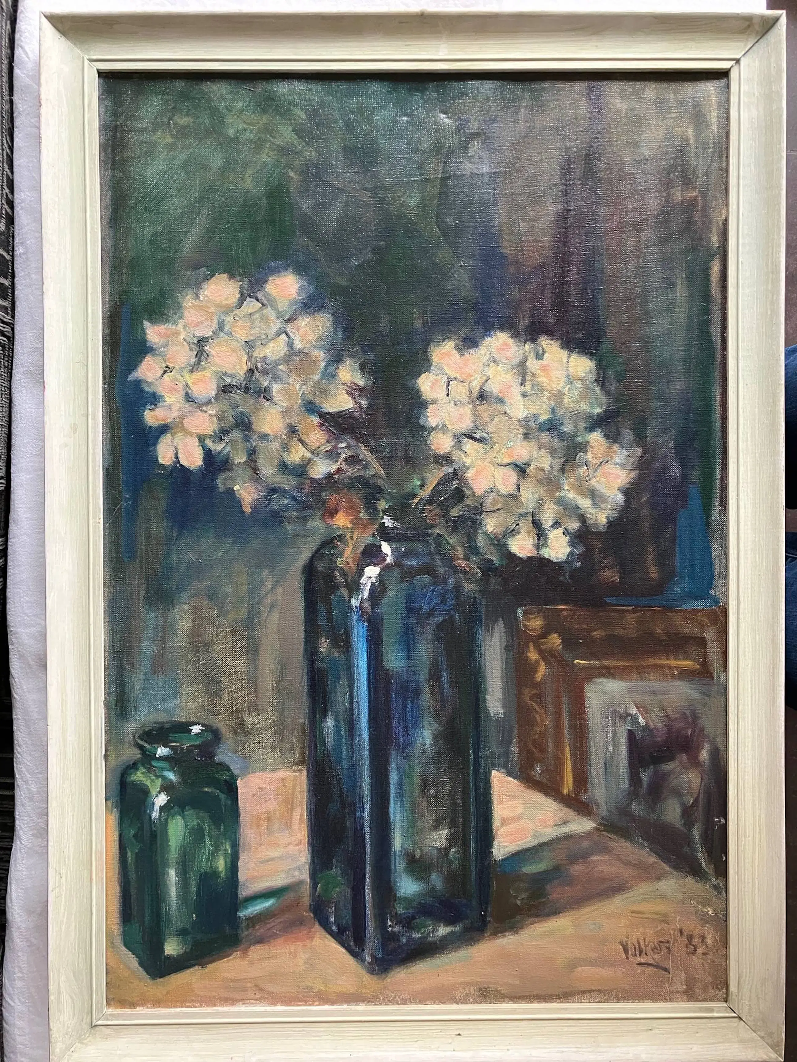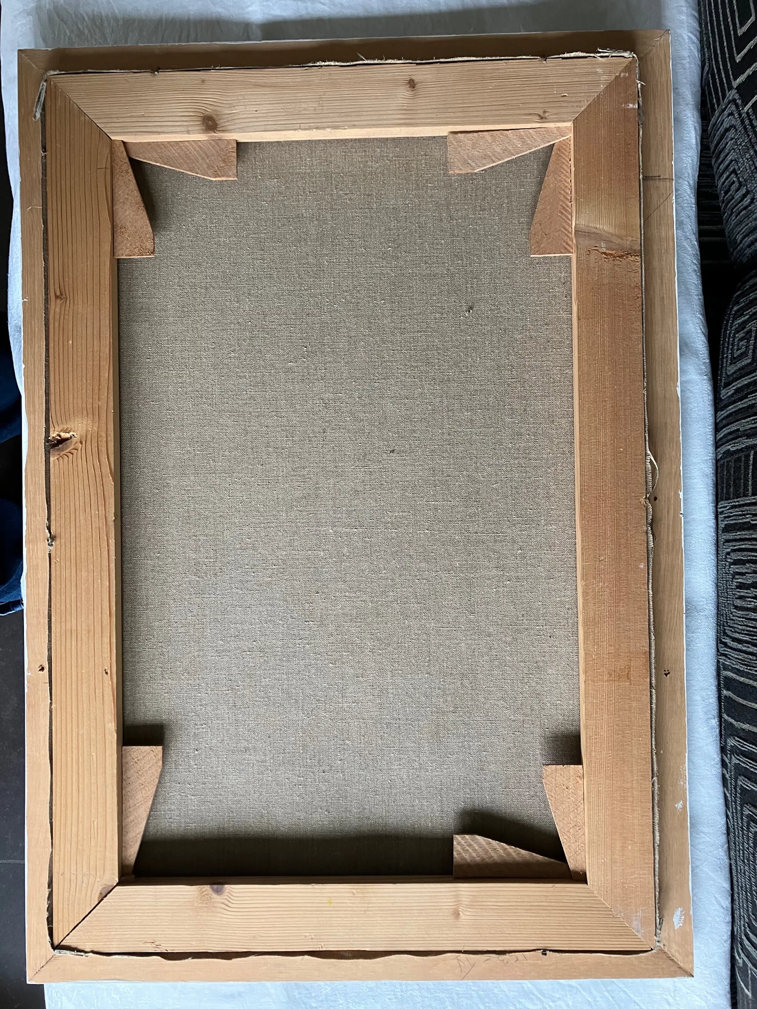 Werk verkregen uit erfenis. De omlijsting heeft de schilder zelf gemaakt.