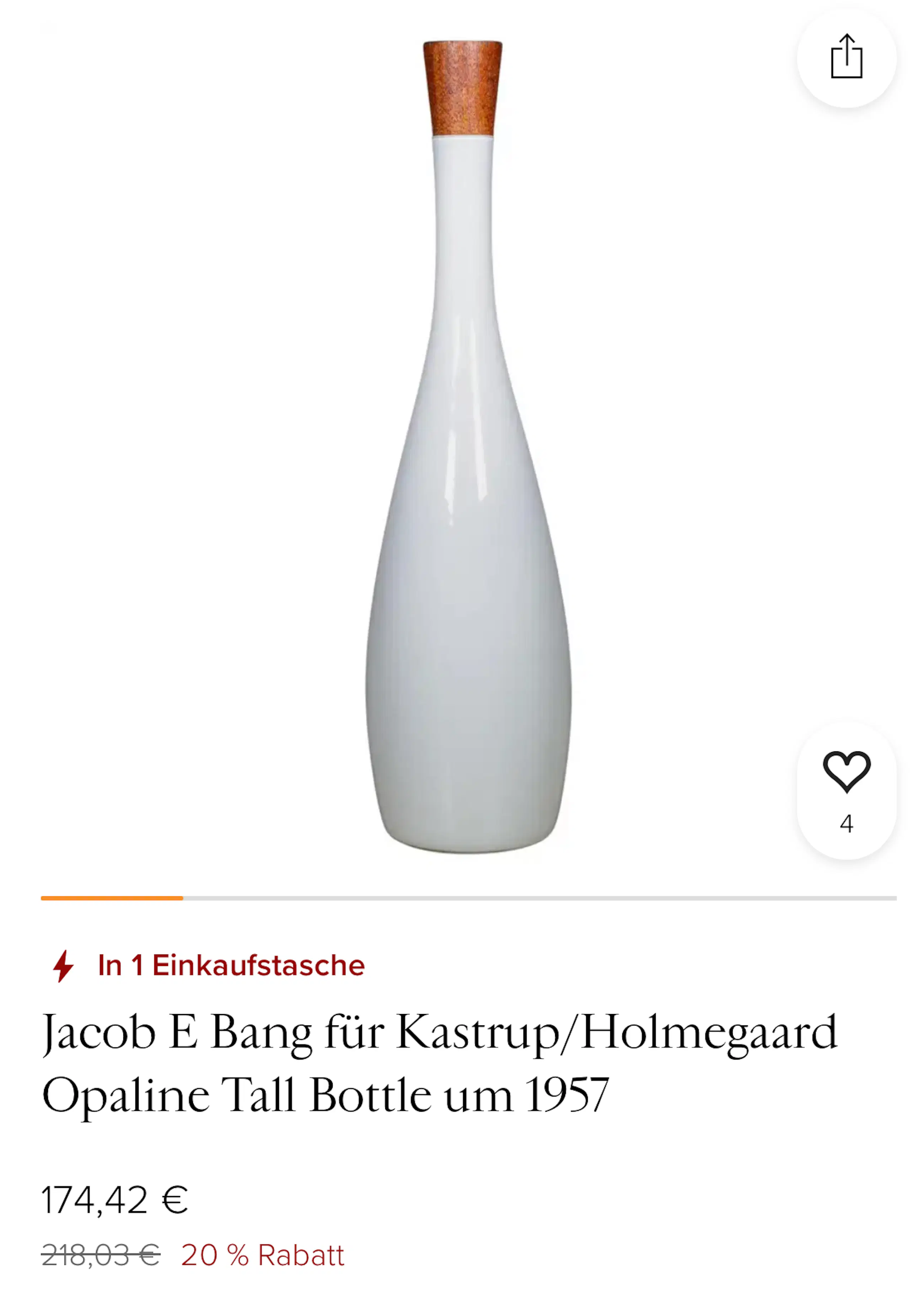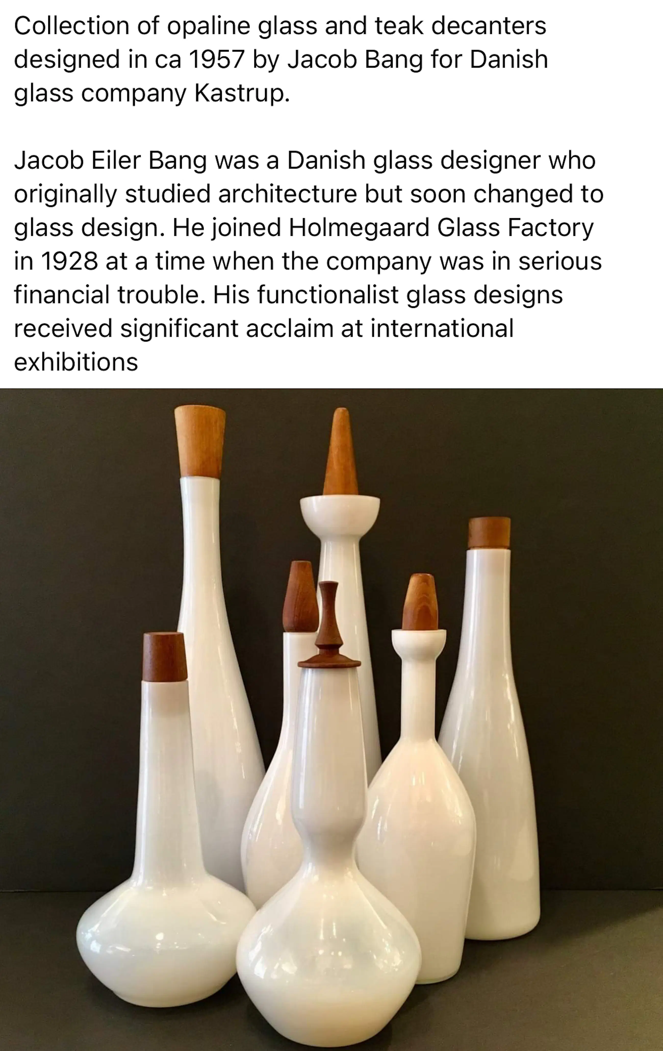 Jacob Eiler Bang - Opaline Fles met teak dop - voor Kastrup