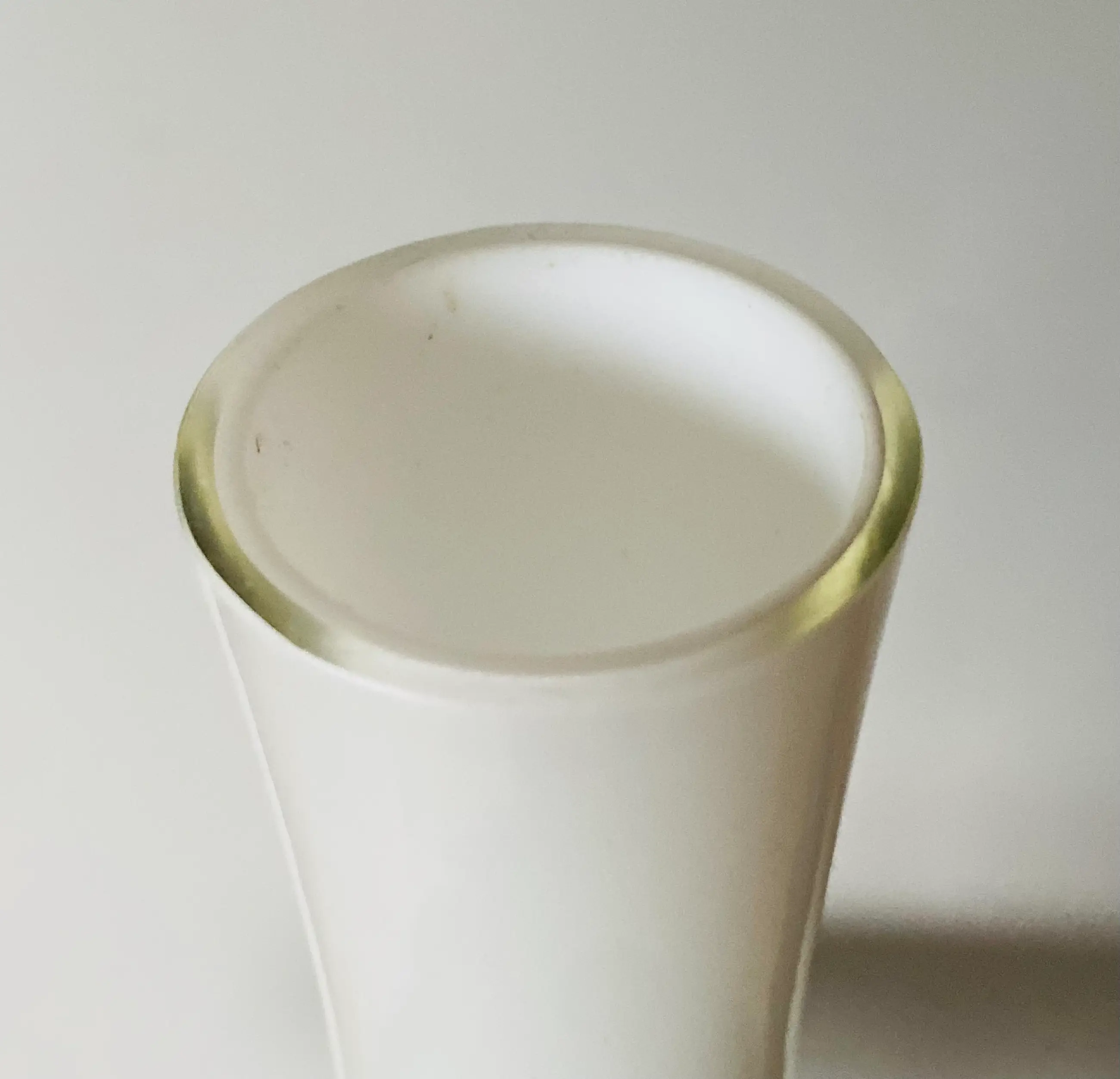 Prachtige grote glazen fles uit de iconische Opaline-serie, ontworpen door de gerenommeerde designer Jacob E. Bang in 1957 voor Kastrup, Denemarken.