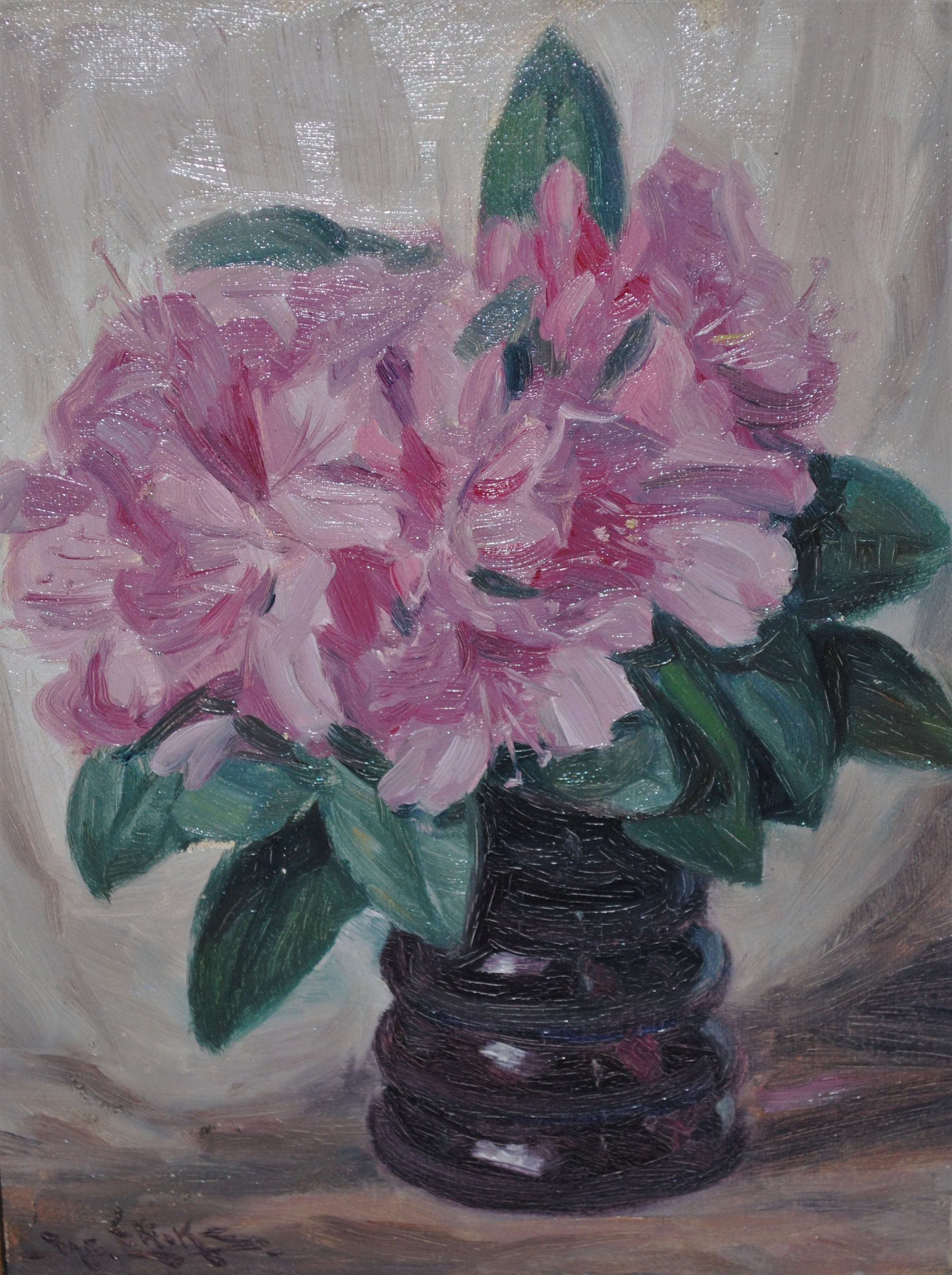 Jacob Eriks: Bloemen in een vaas. Olieverf op doek op een houten paneel. In de originele fraaie houten/gipsen lijst.