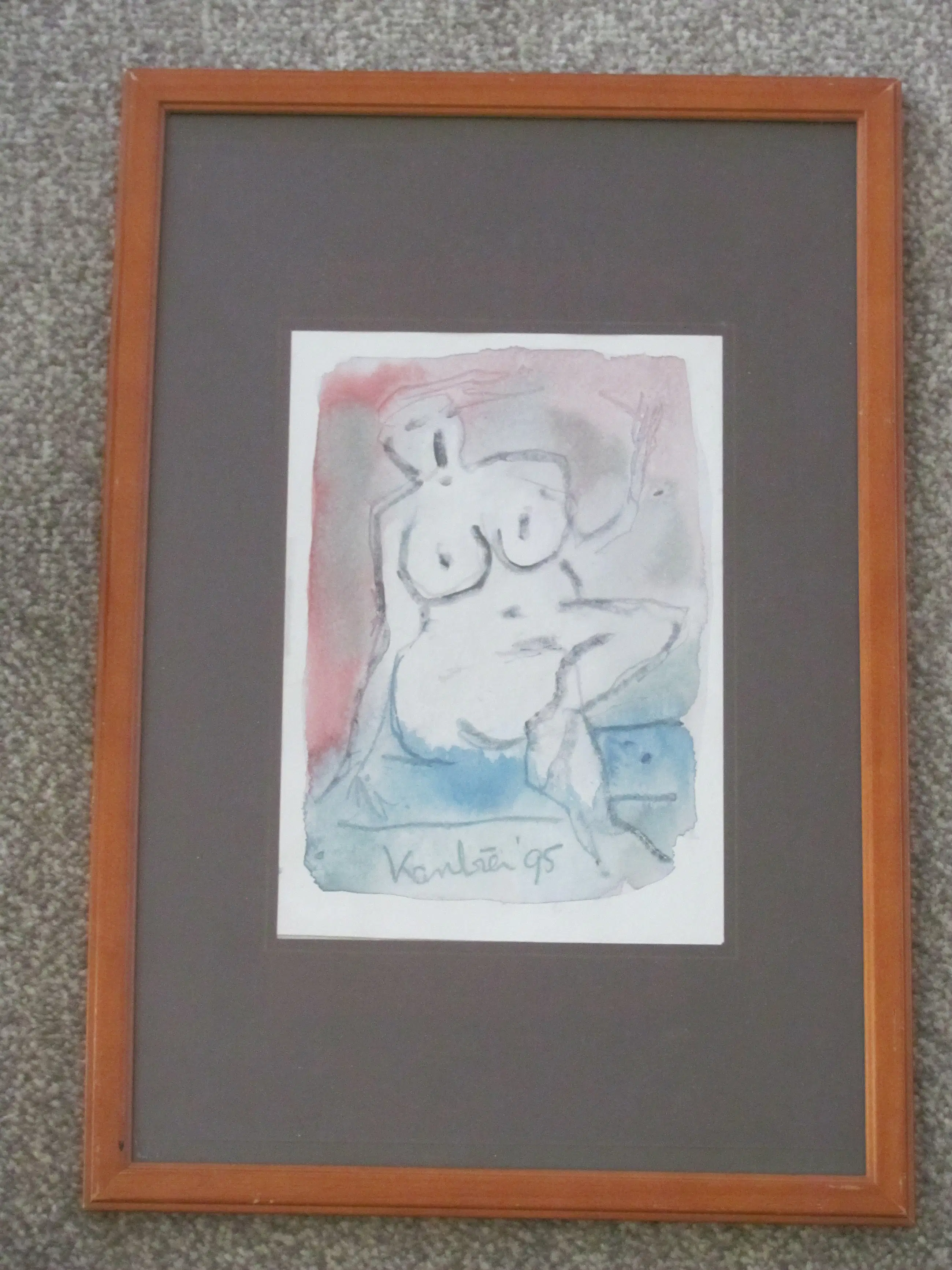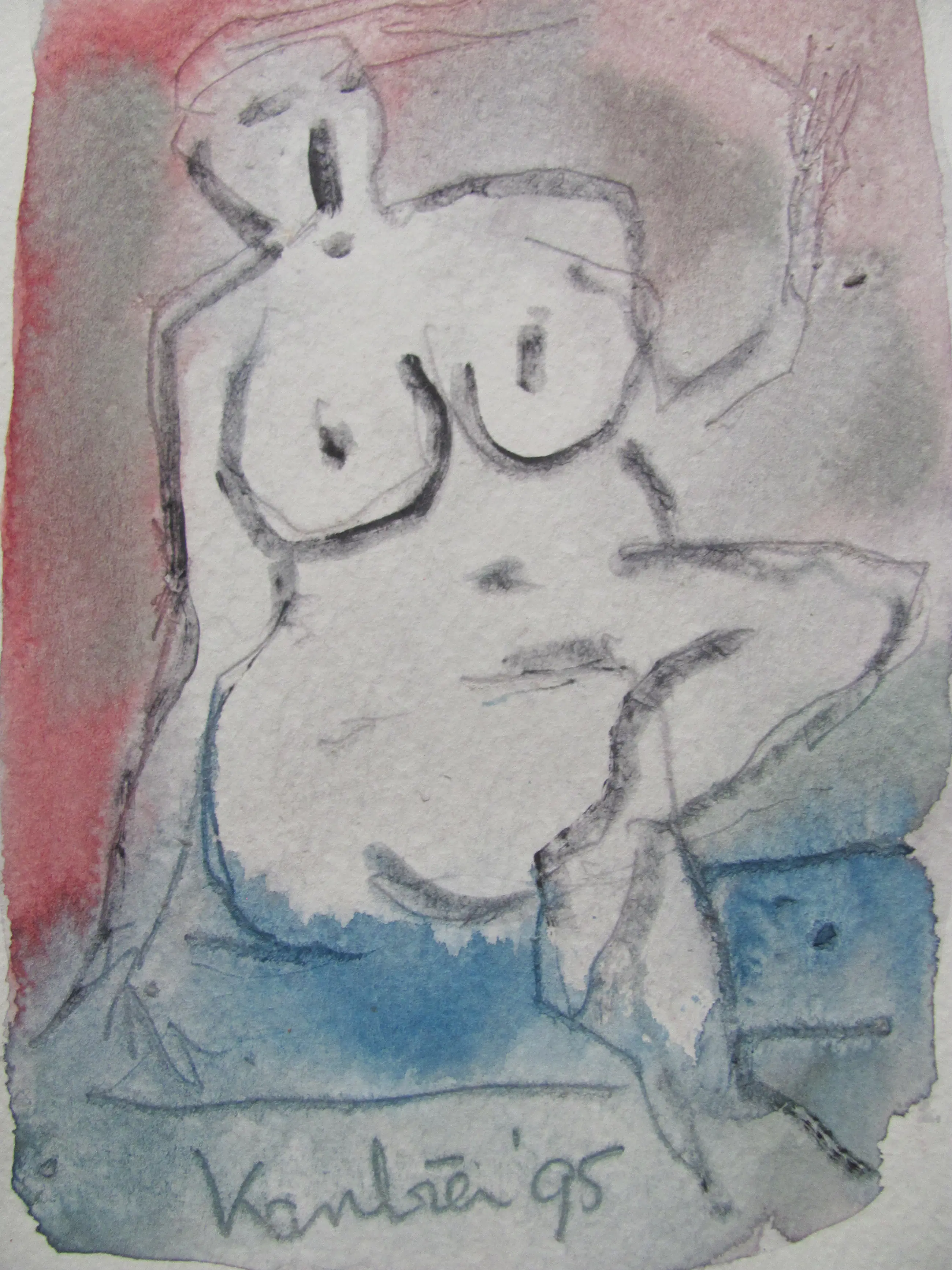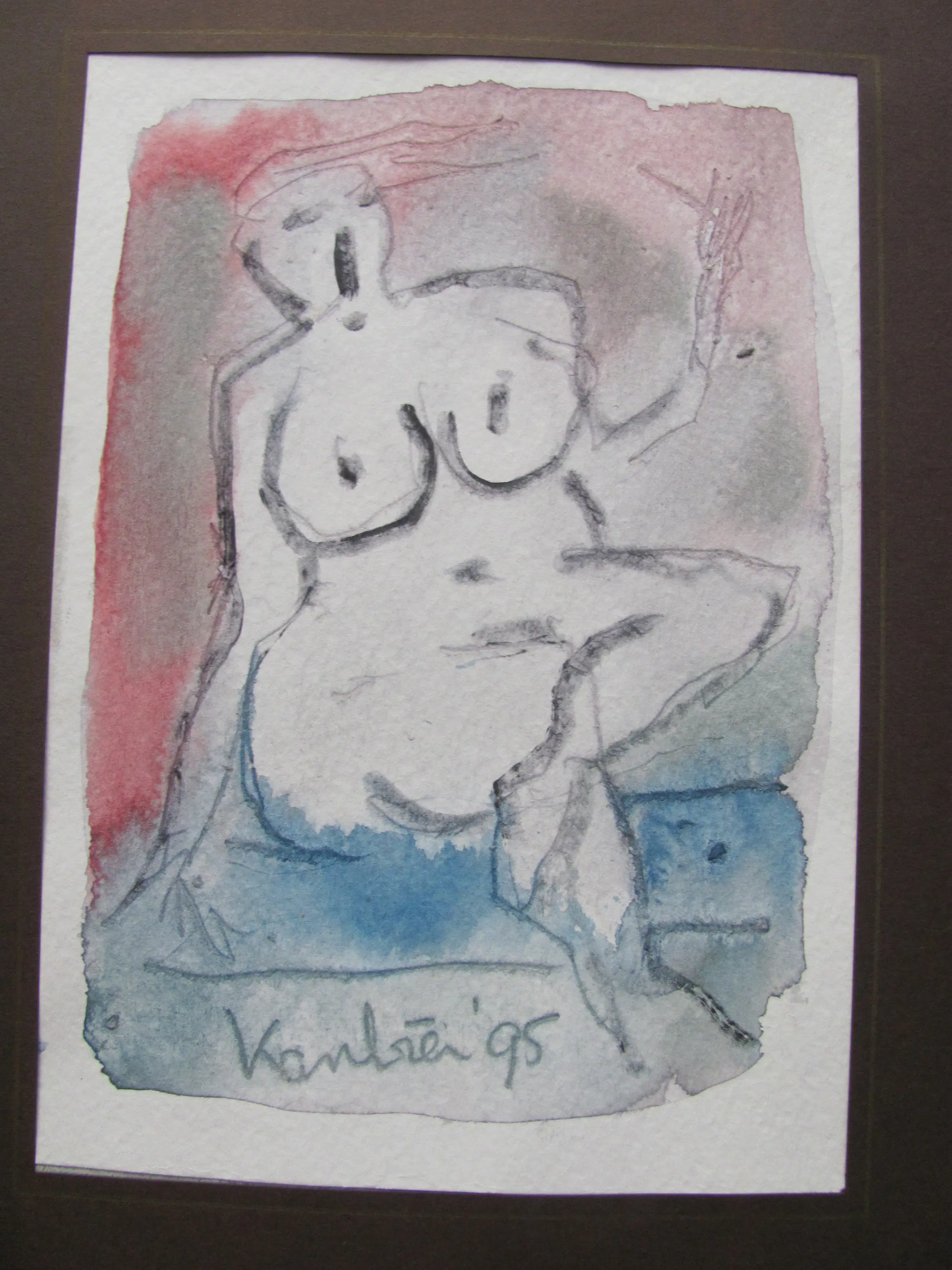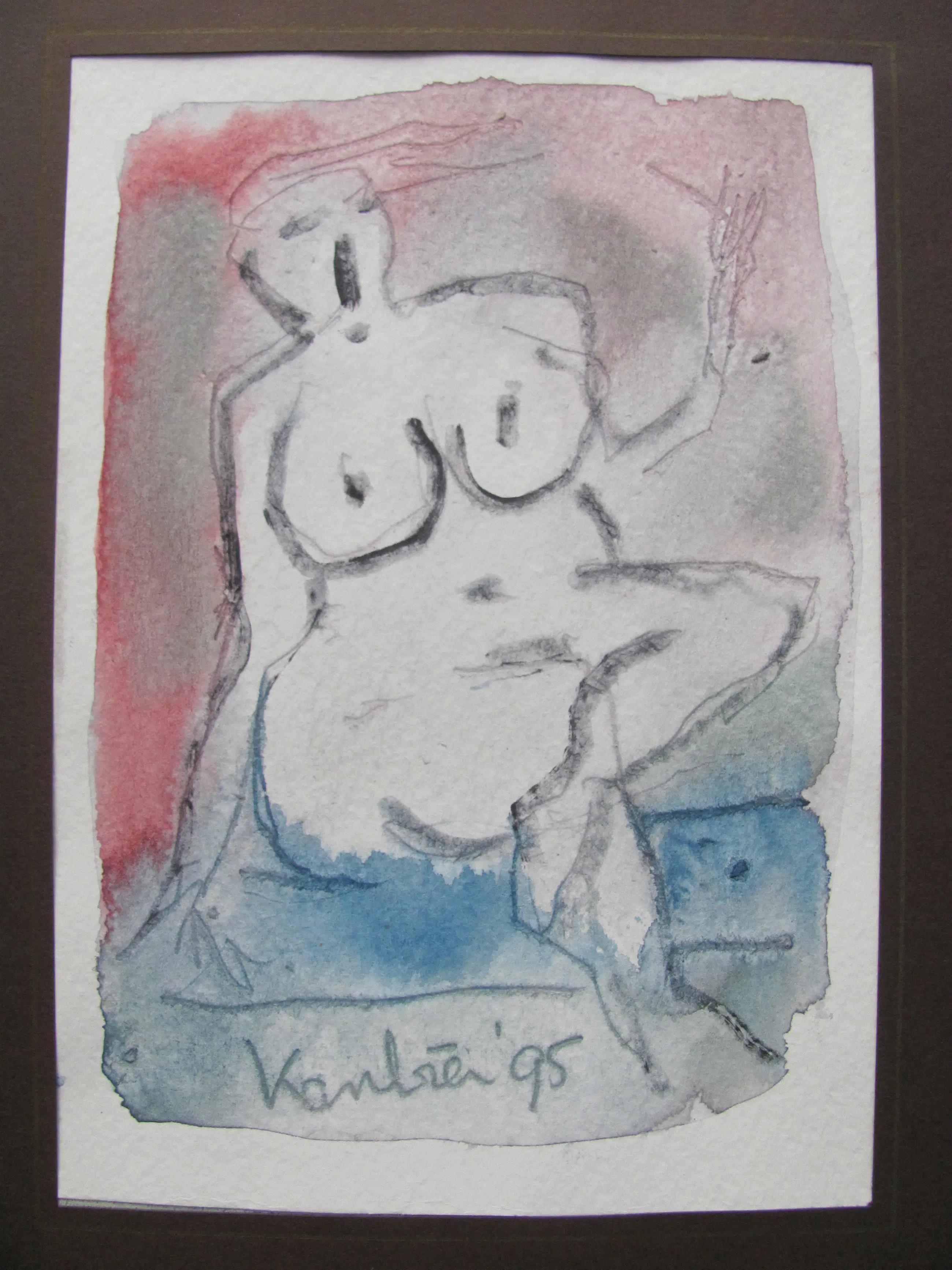Aquarel van Jacob Kanbier. Gesigneerd en gedateerd (Kanbier '95).