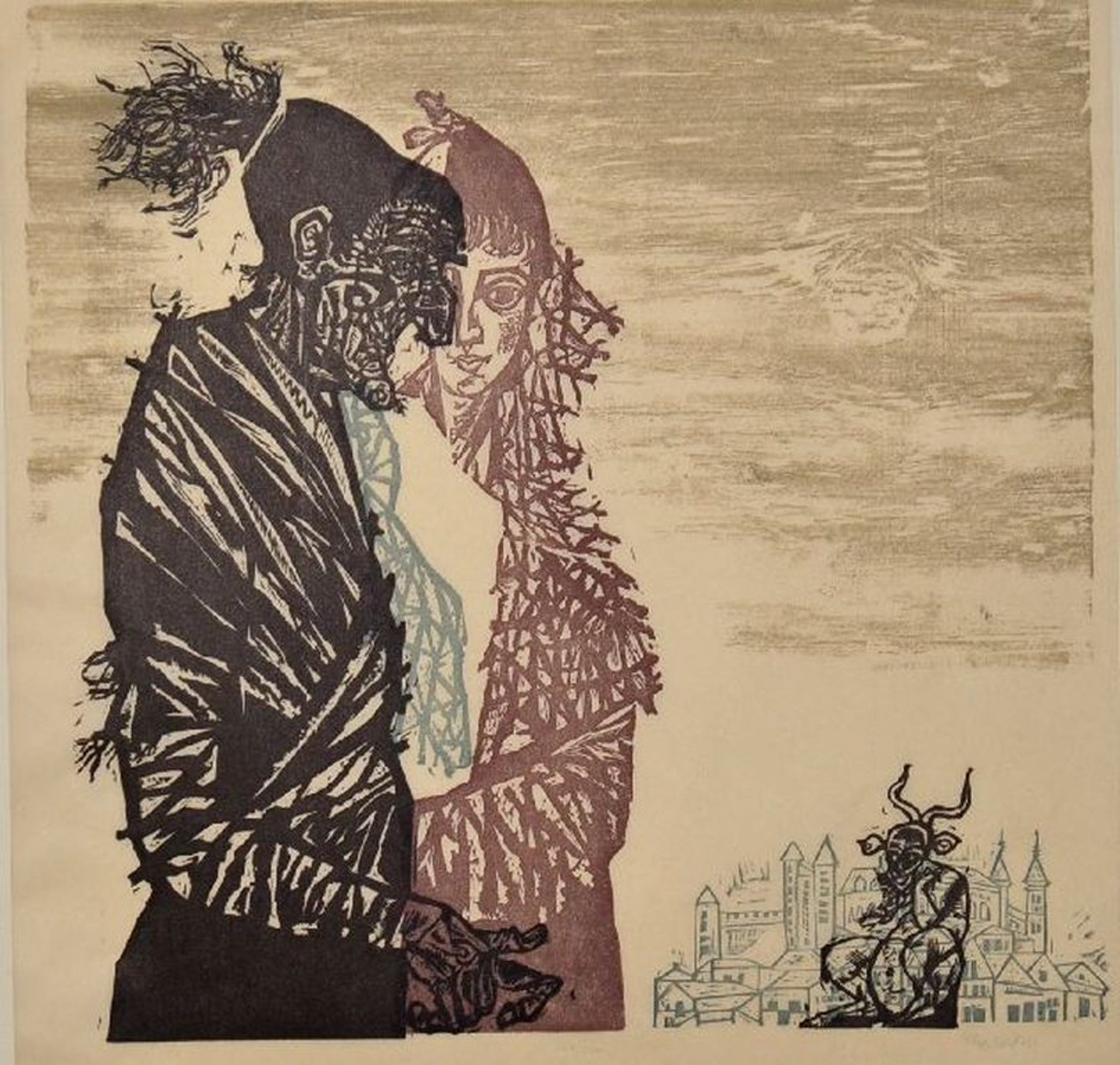 Meer kleuren houtsnede van Jacob Landau, The Witch