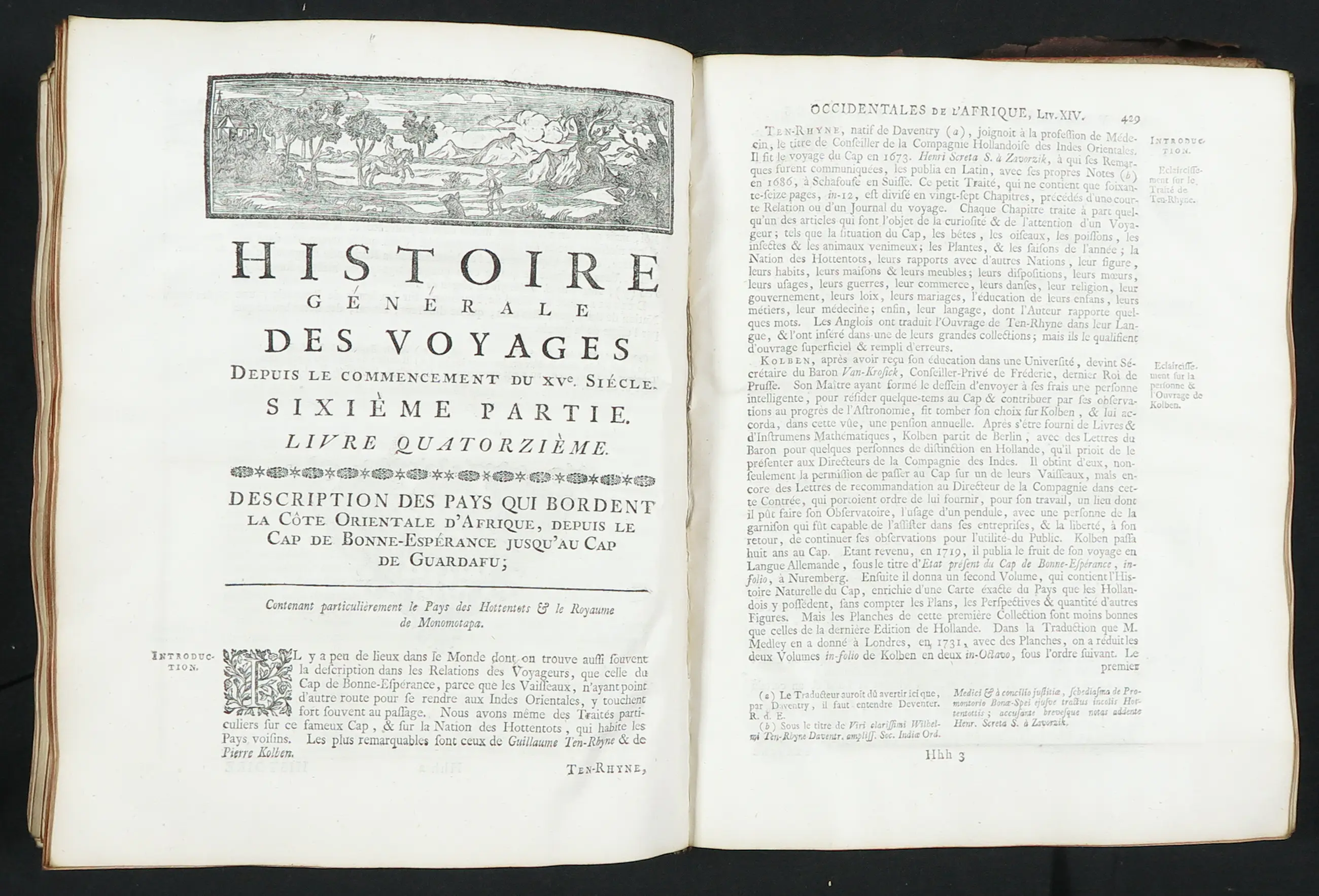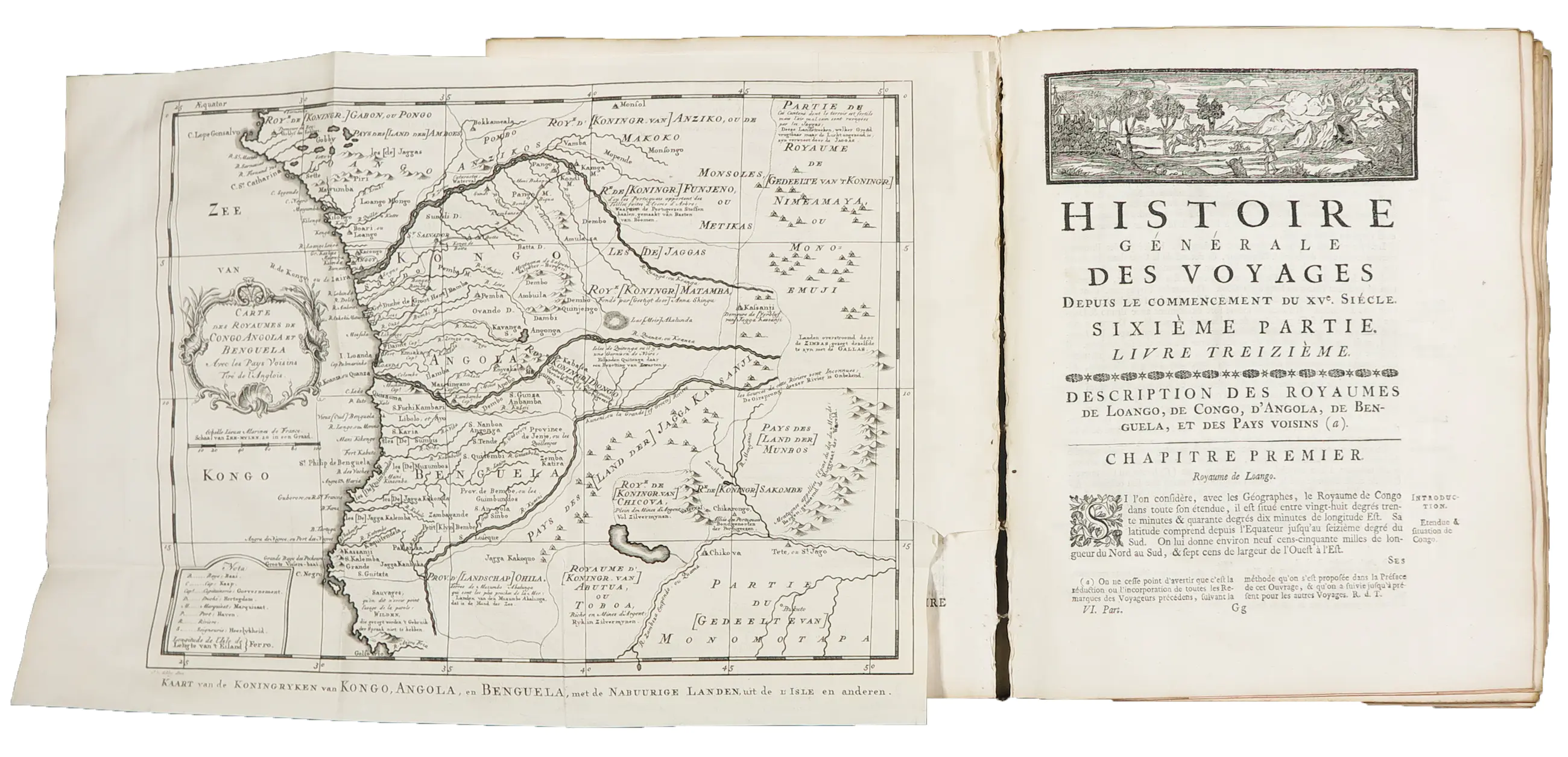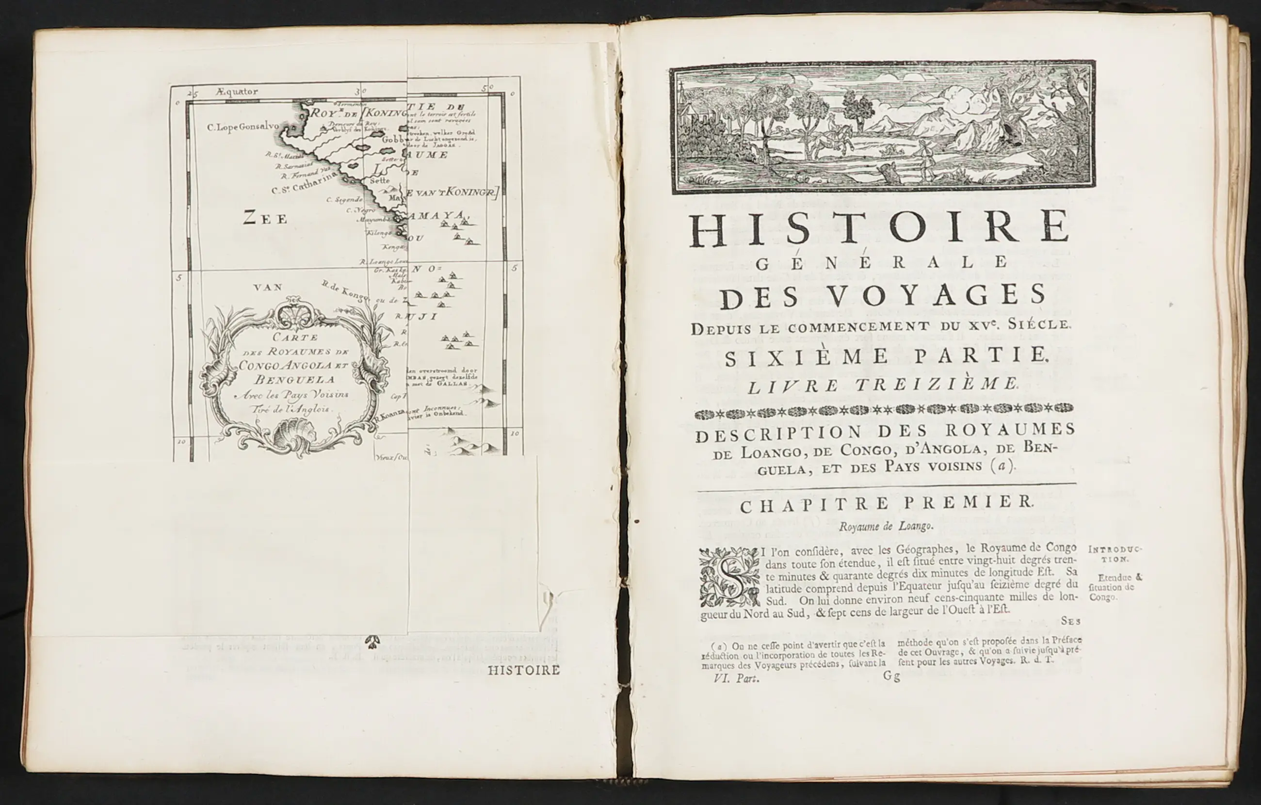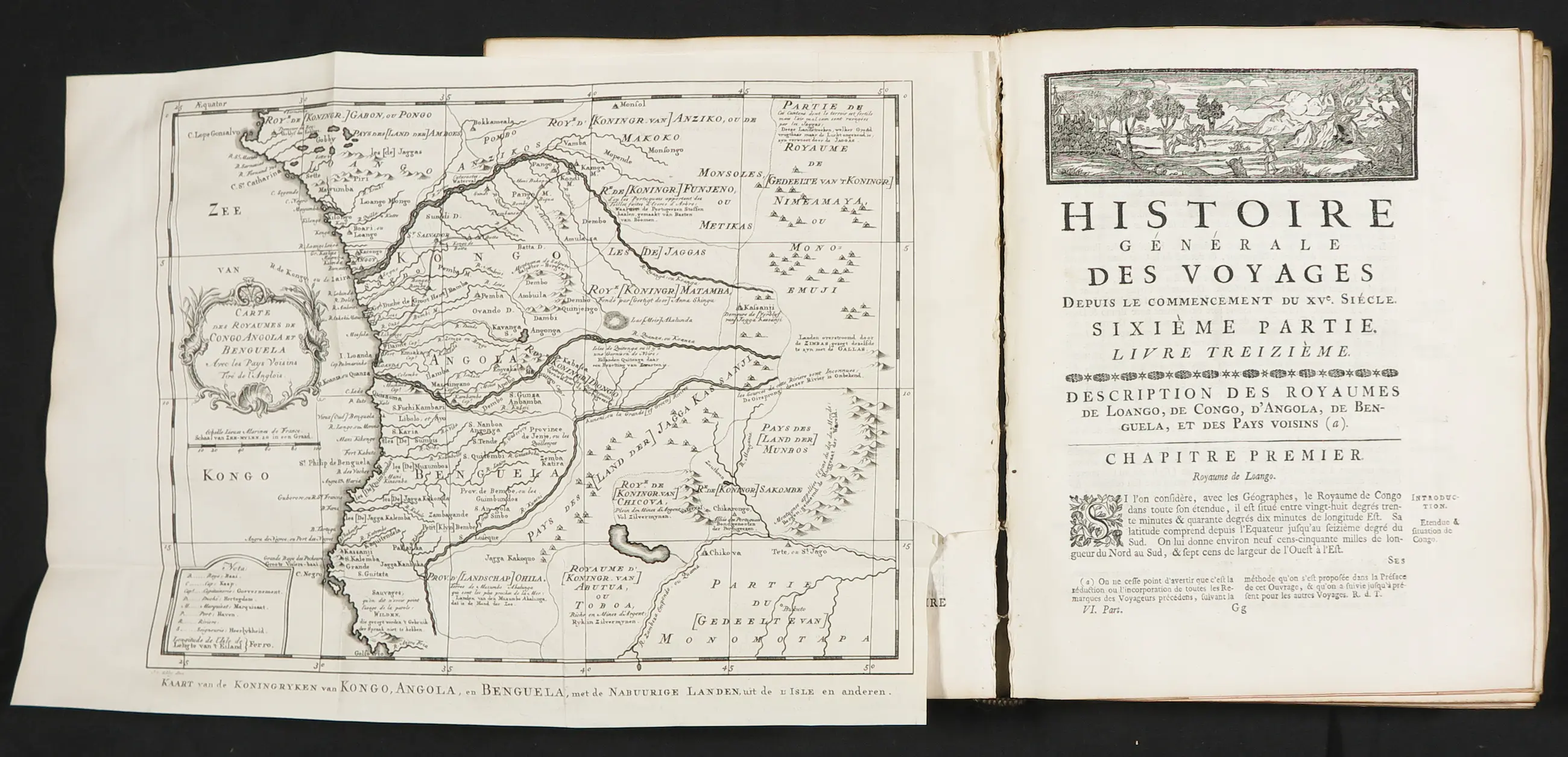 Deel VI van het Histoire générale des voyages: Occidentales de l'Afrique uitgegeven Pierre de Hondt in 1749. De prenten zijn gemaakt door Jacob van der Schley.