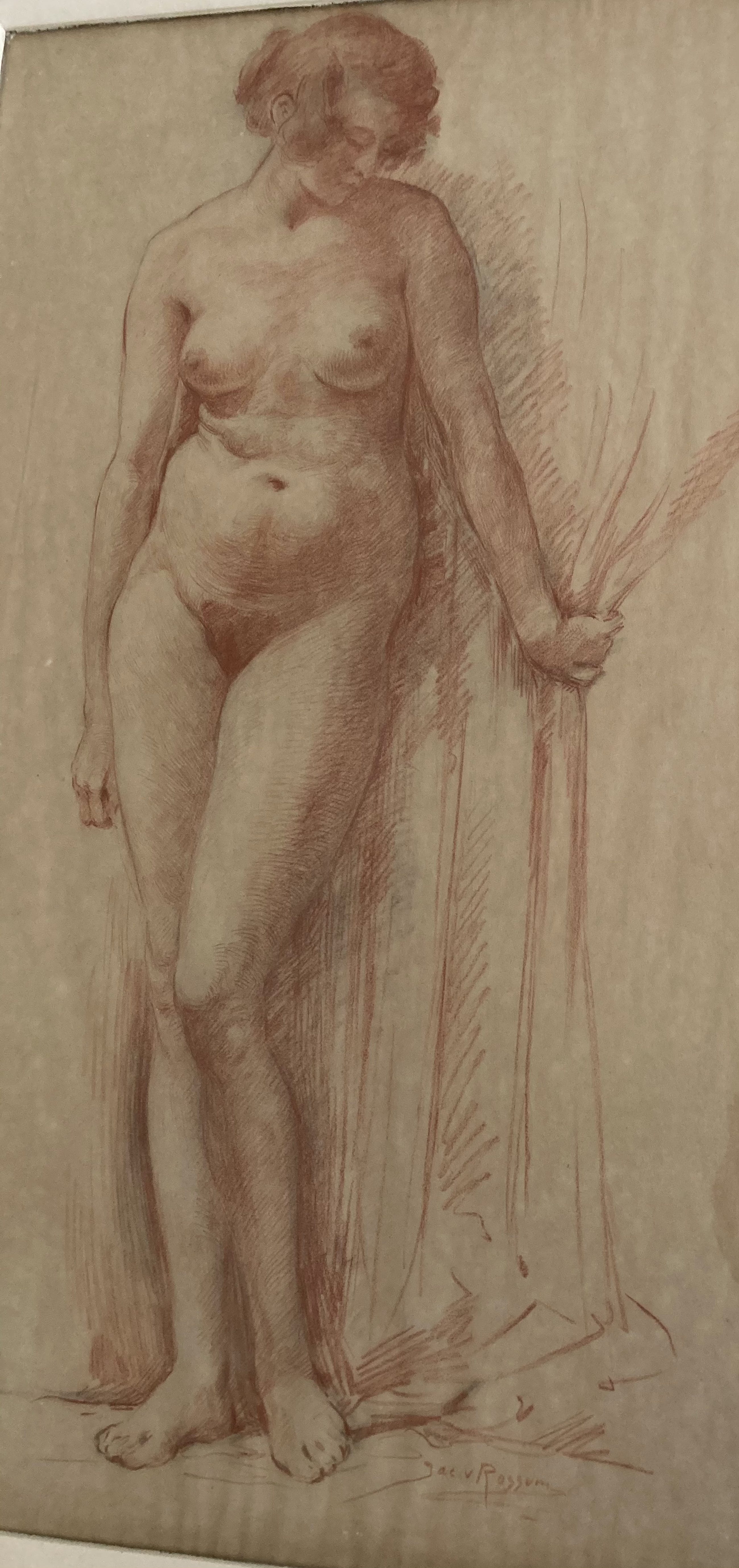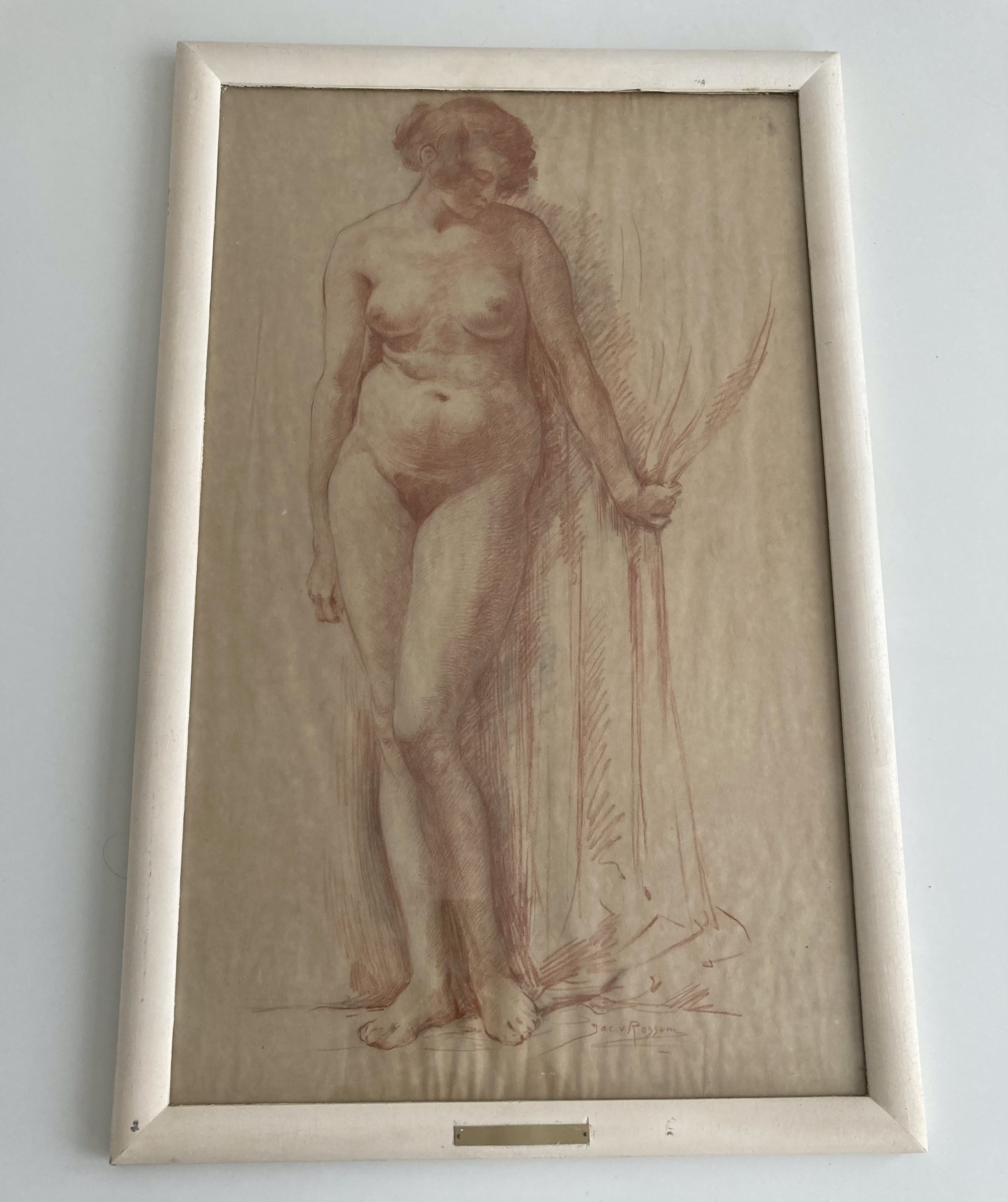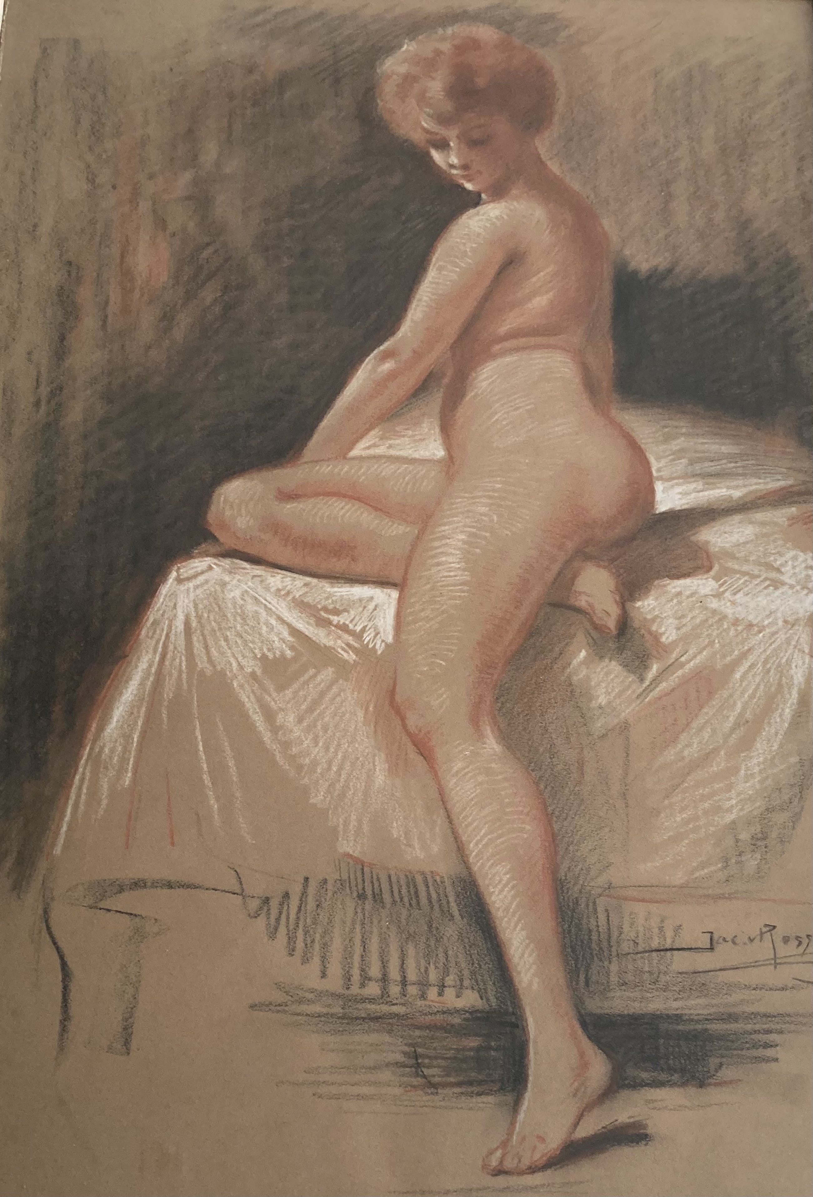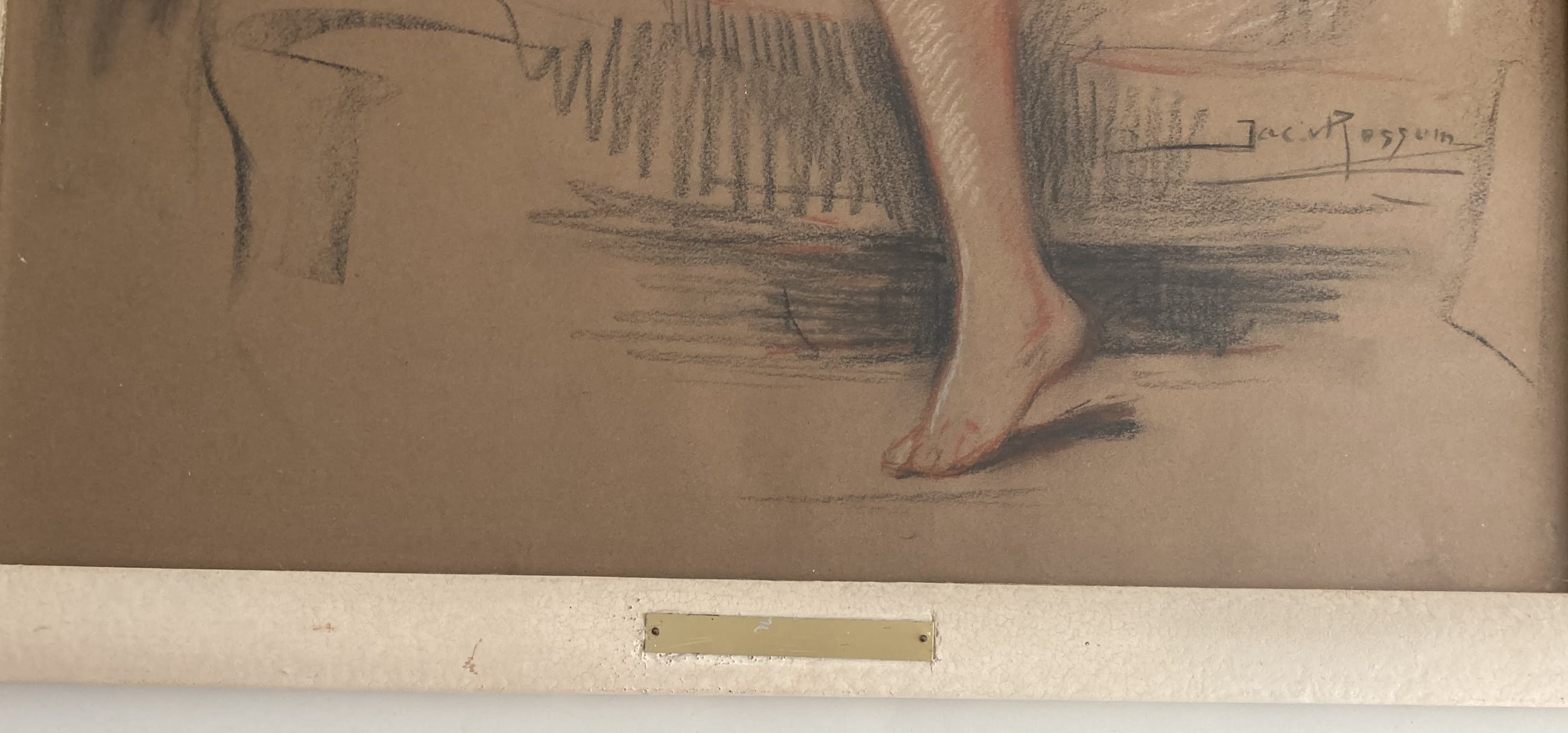Twee prachtige vrouwelijke naakten van de Haagse kunstenaar Jacobus Willem van Rossum. Gemengde techniek op papier.