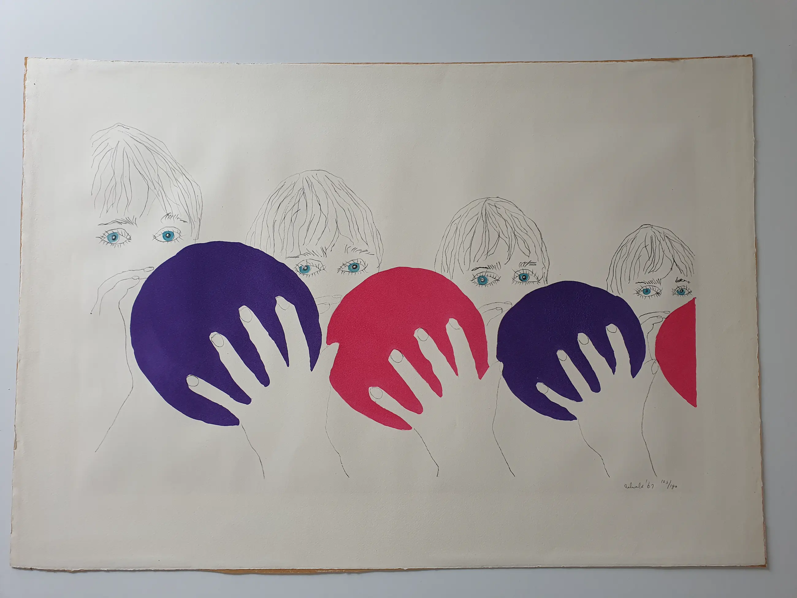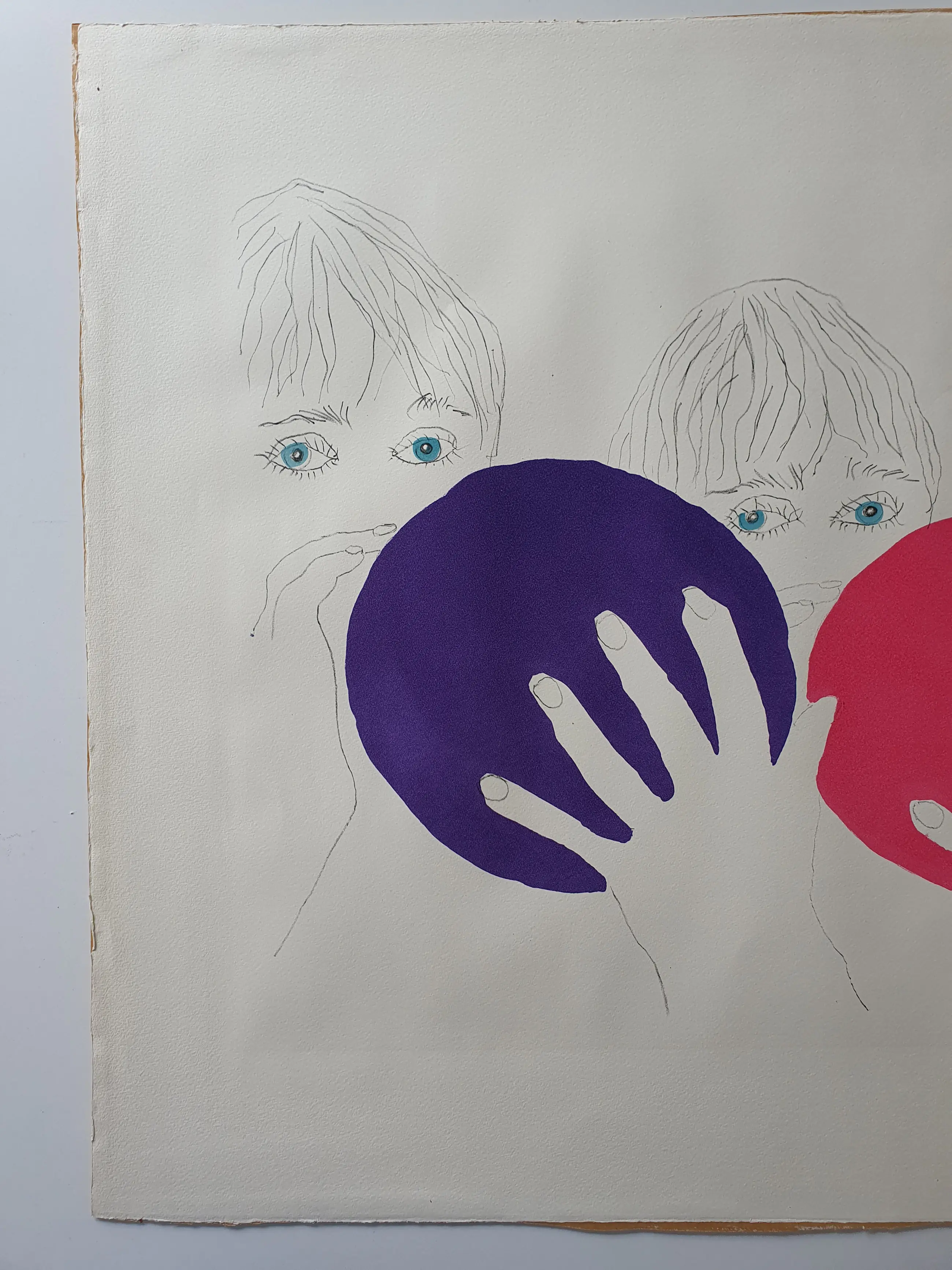 Foto’s maken onderdeel uit van de beschrijving. Gemengde techniek. Potlood en verf.