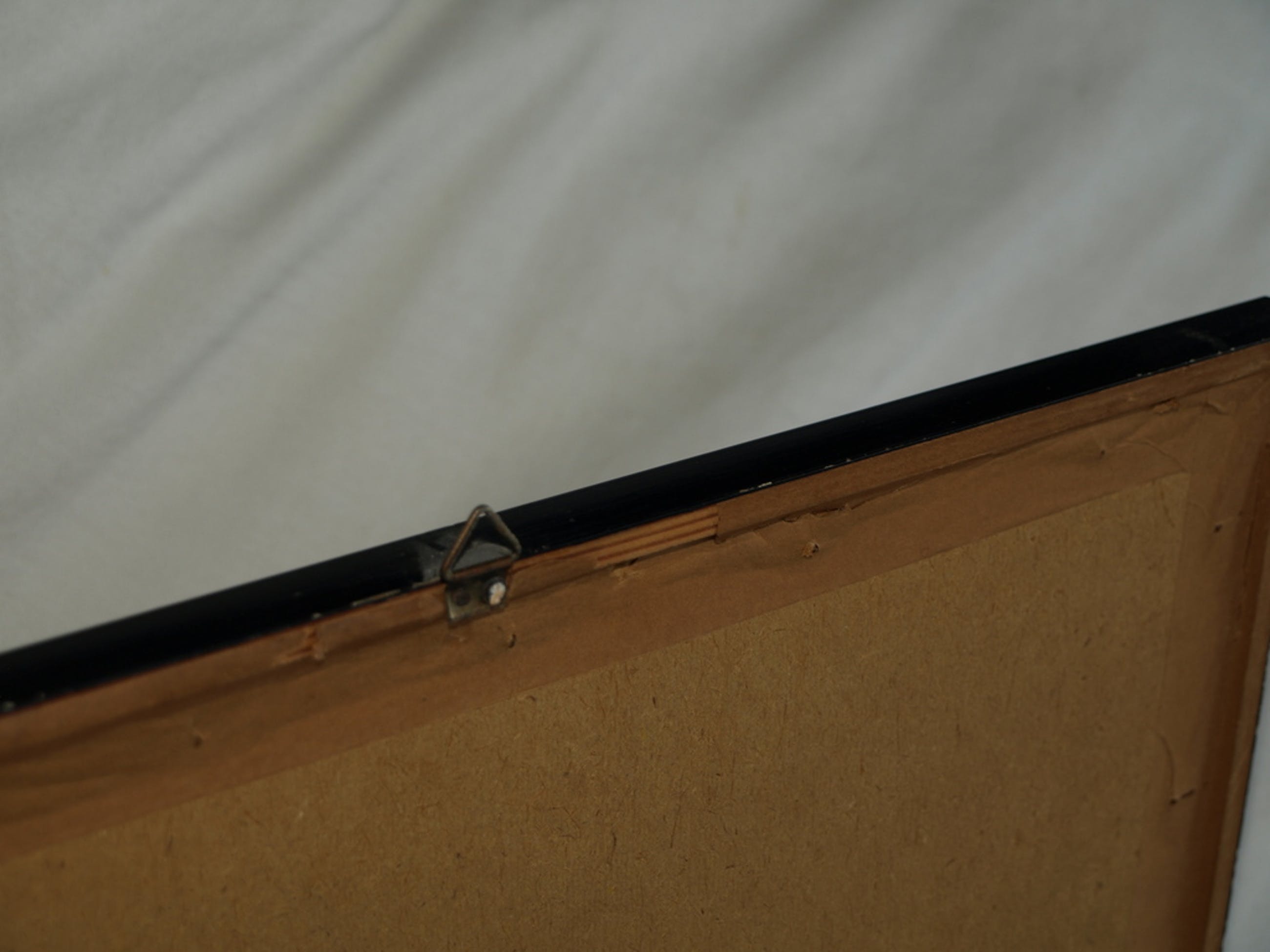 De litho is ingelijst in de originele houten lijst met glasplaat.