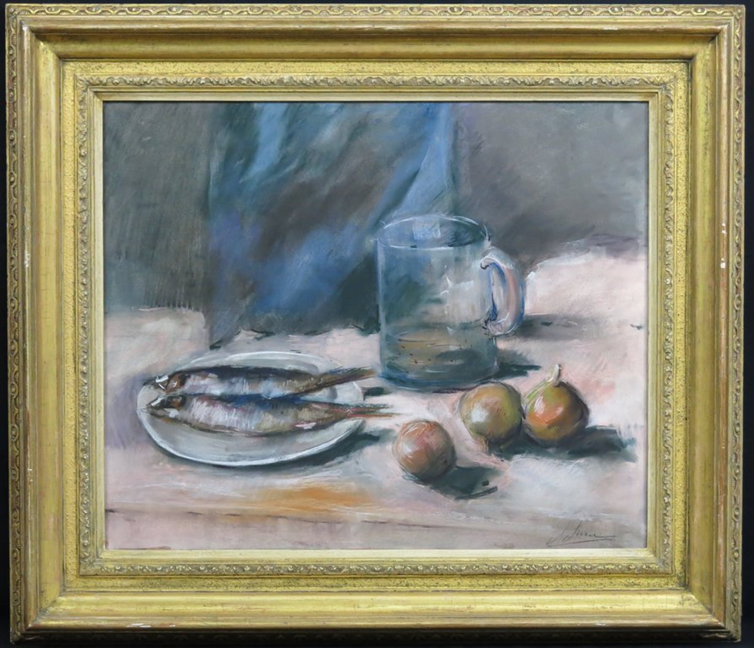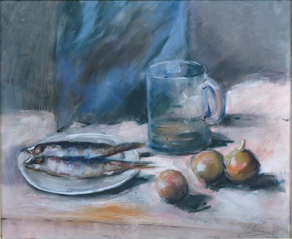 Titel: Stilleven met vis en uien