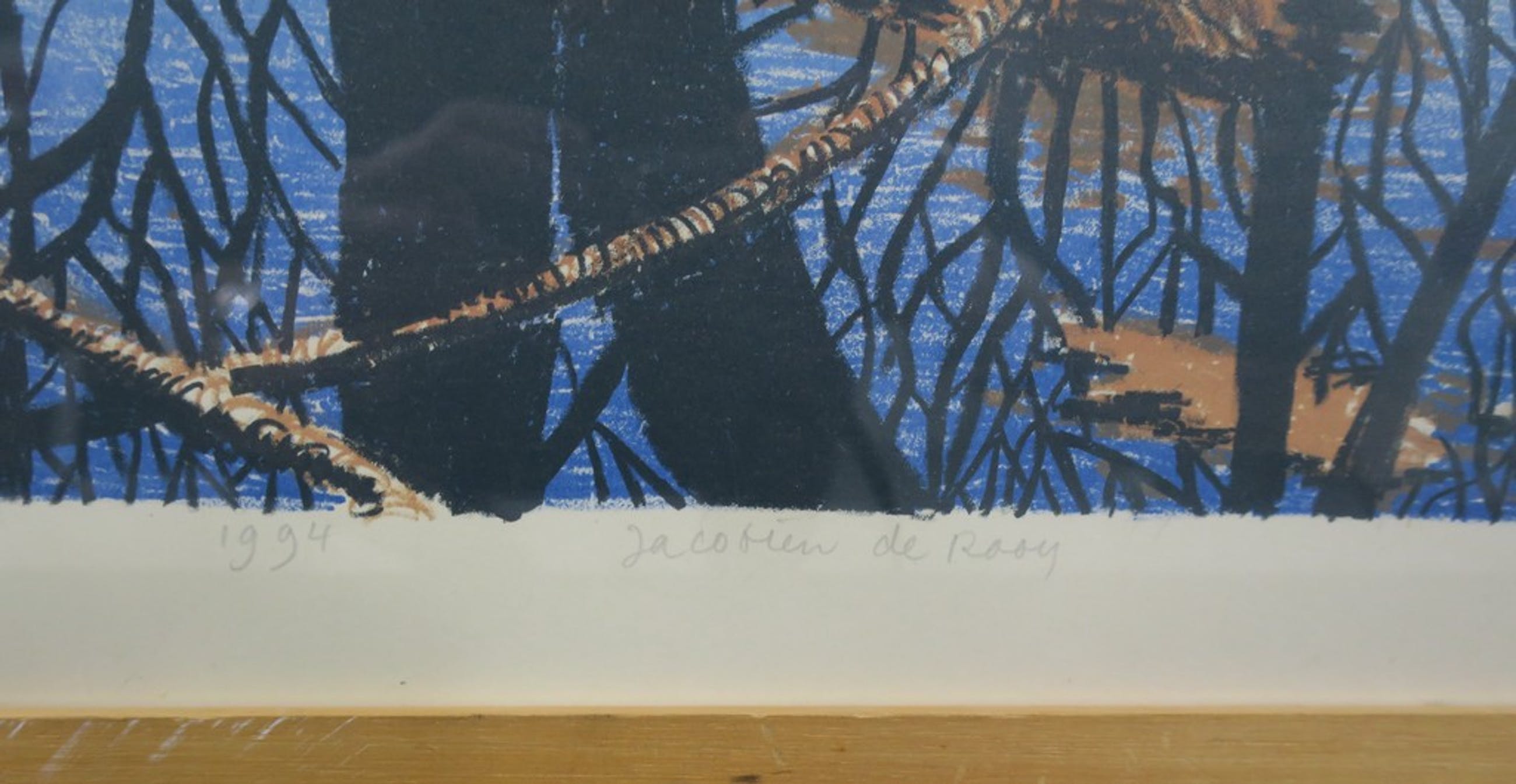 Bij foto´s van ingelijste werken kan spiegeling zichtbaar zijn. Het oplagenummer op de foto(‘s) kan afwijken van het hierboven genoemde correcte oplagenummer.