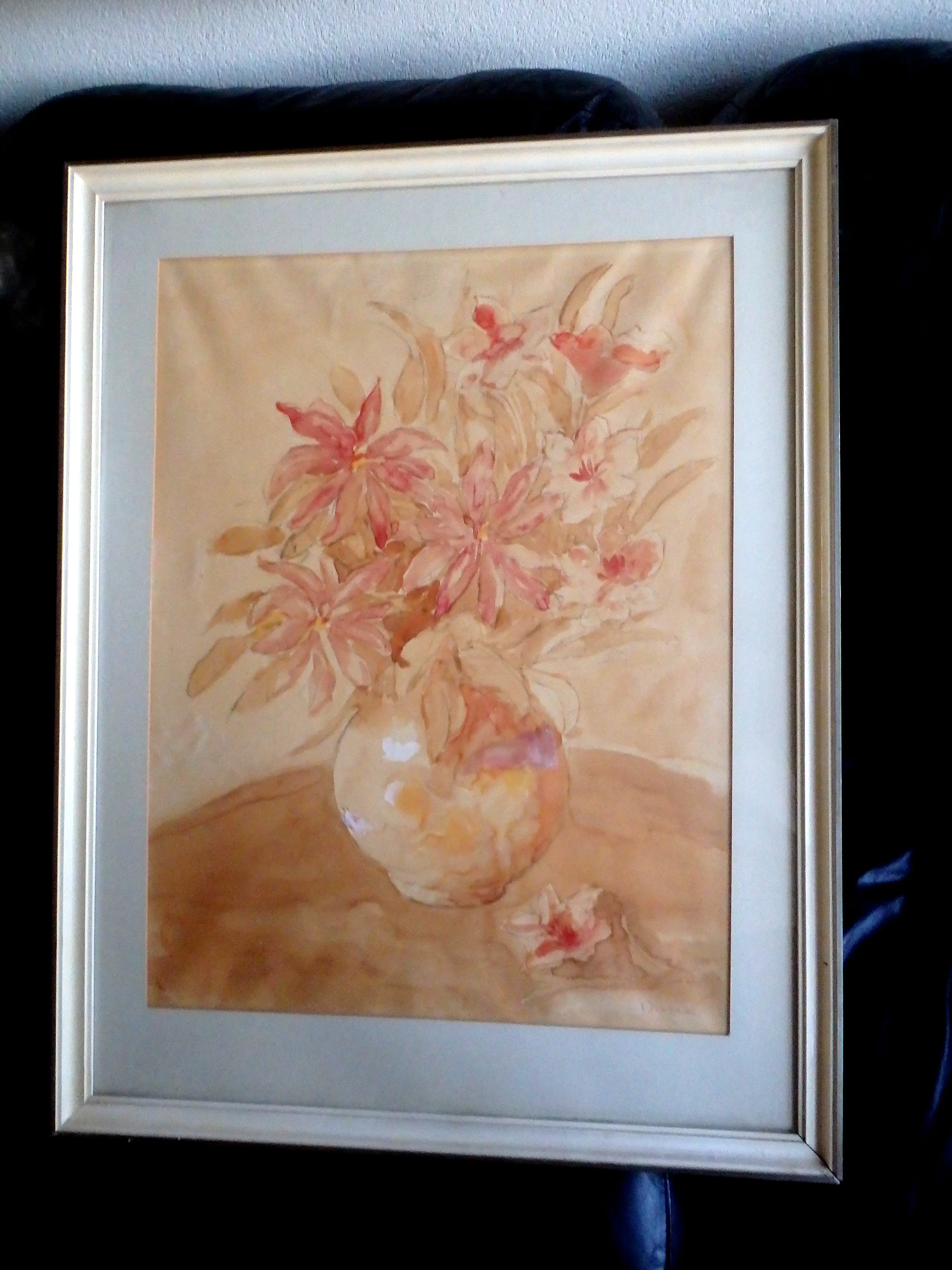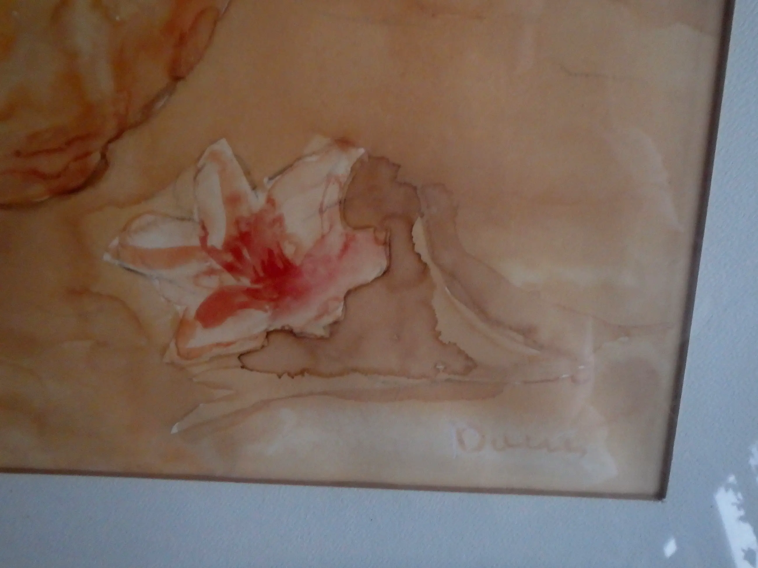 aquarel 62x47 , rechtsonder onduidelijk gesigneerd Doeser, geaquarelleerd ca. 1940, Ingelijst in de jaren 50, maat lijst 90x70 cm.