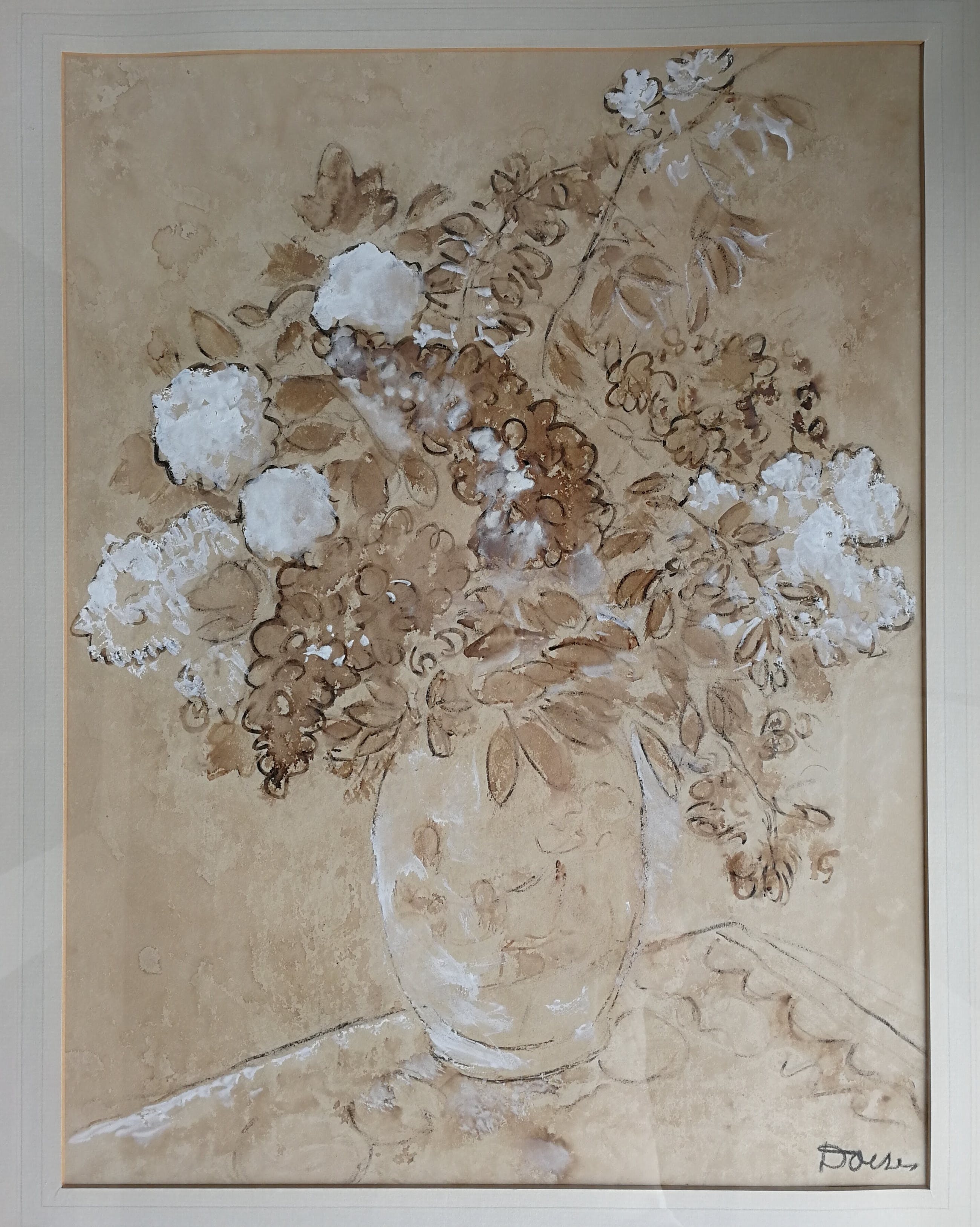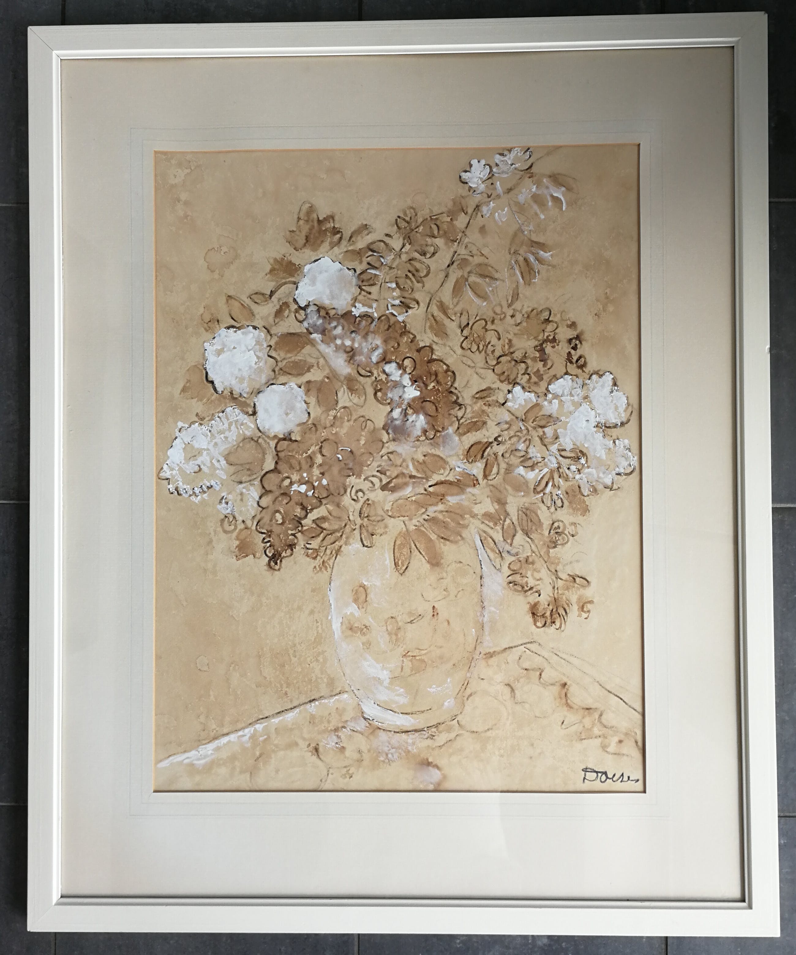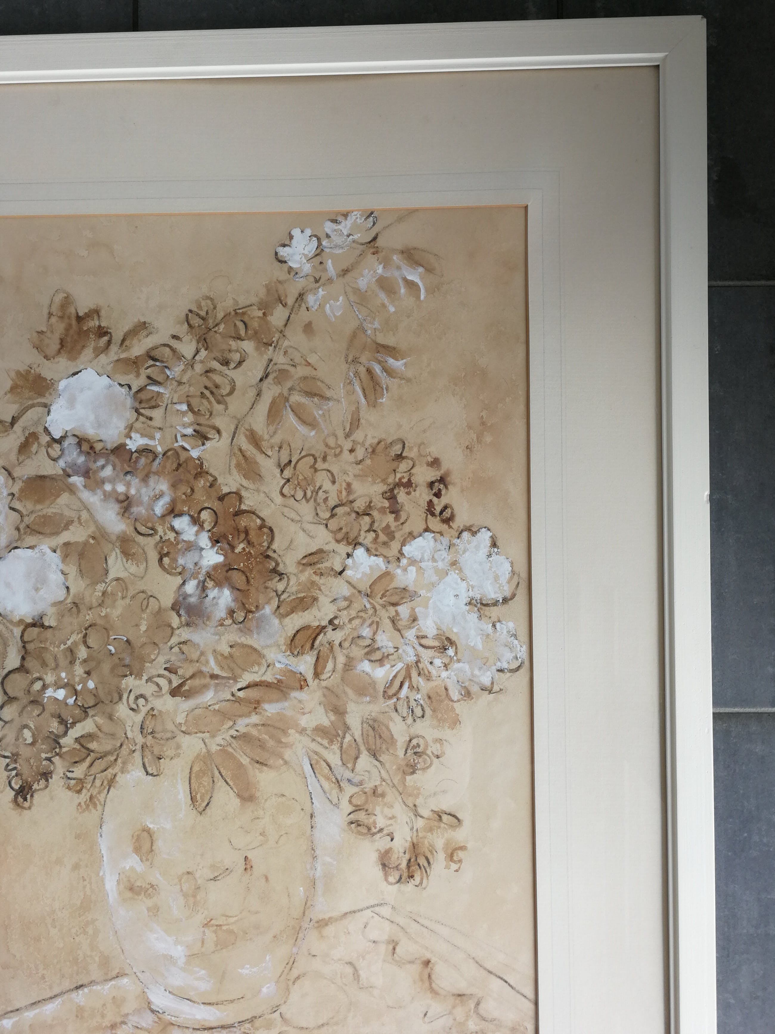 Mooi werk. Opgehoogd met wit. Gesigneerd rechtsonder. Zie foto's. Ophalen in Haarlem ivm glas en gewicht.