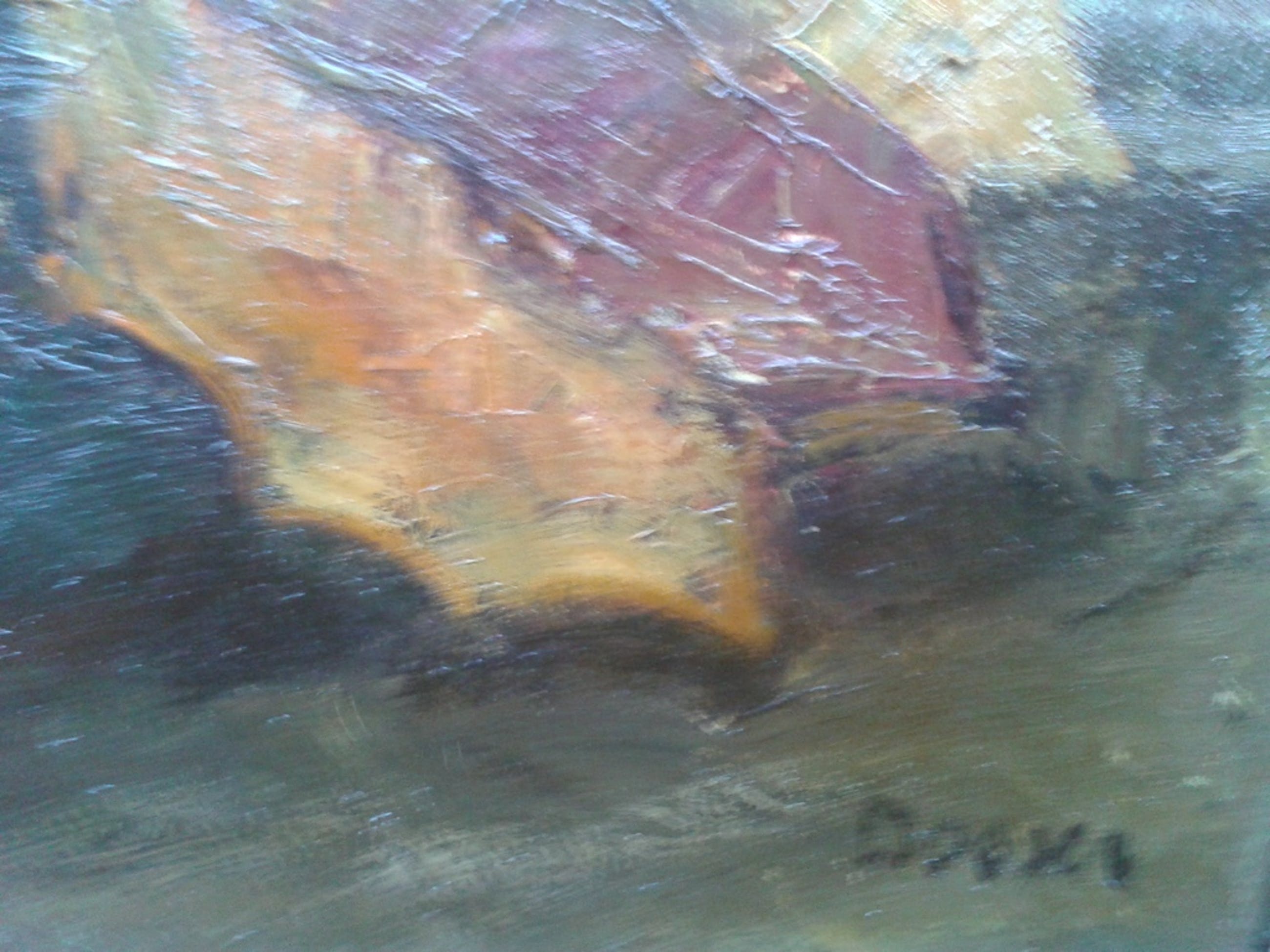 De lijst moet absoluut vervangen worden,maar het doek is zo mooi dat hij dat zeker waard is.