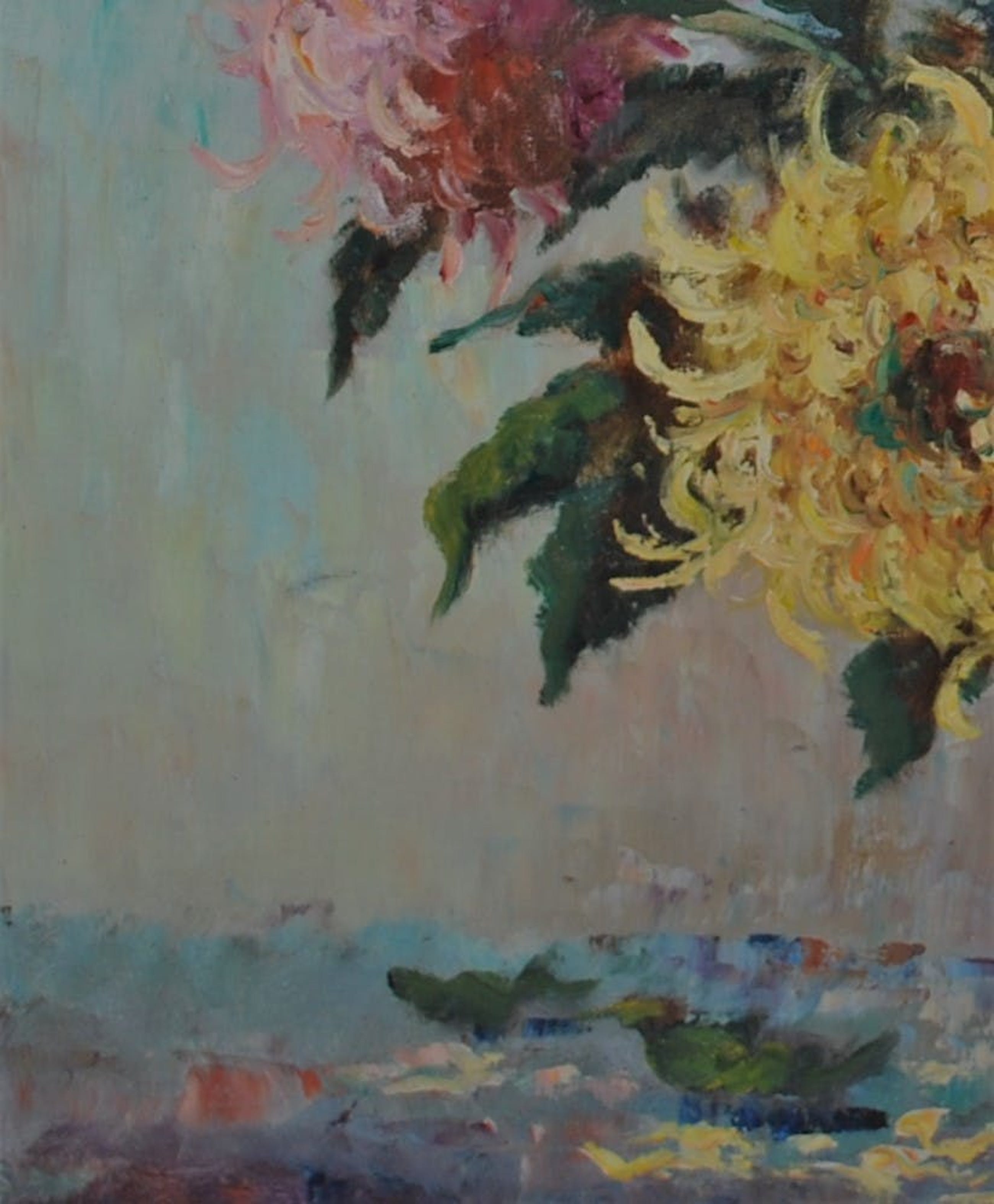 In goede gebruikte staat. Het doek heeft een paar dunne plekjes en een klein goed hersteld scheurtje linksmidden