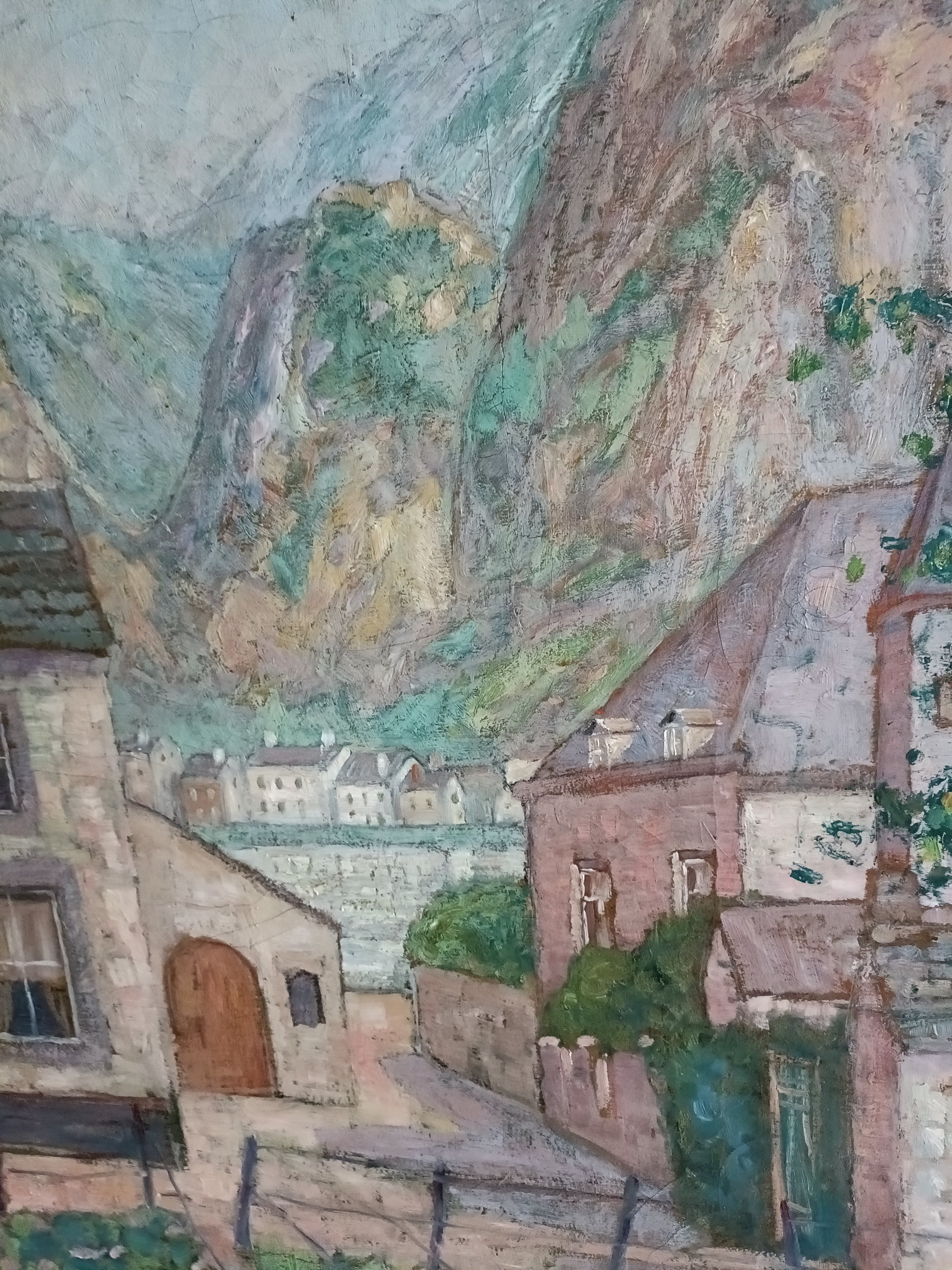 Dit werk is geschilderd in Frankrijk met een mooie dieptewerking. Groot formaat met een totale afmeting van 108.5x 83.5 cm. De originele bijpassende lijst is in zeer goede staat, enkele lichte gebruikerssporen.