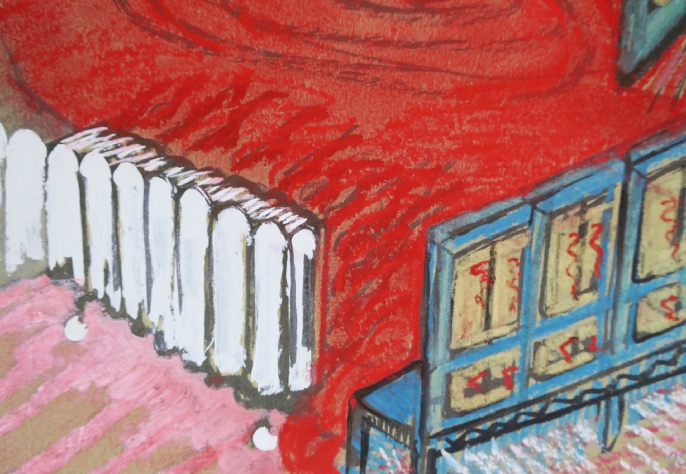 Materiaal: Gem.techniek op papier, o.a. krijt en gouache
