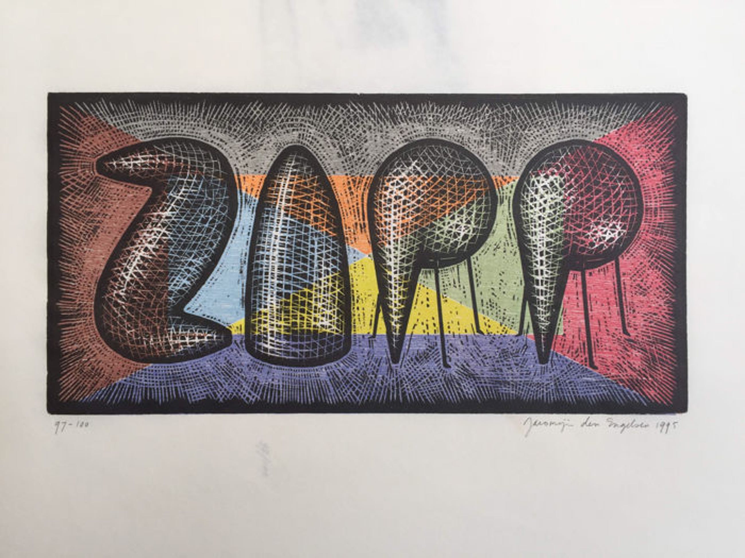 Leuke houtsnede van Jacomijn den Engelsen. Afmeting blad 65x50 cm in nieuwstaat. Handgesigneerd en genummerd oplage 100ex.