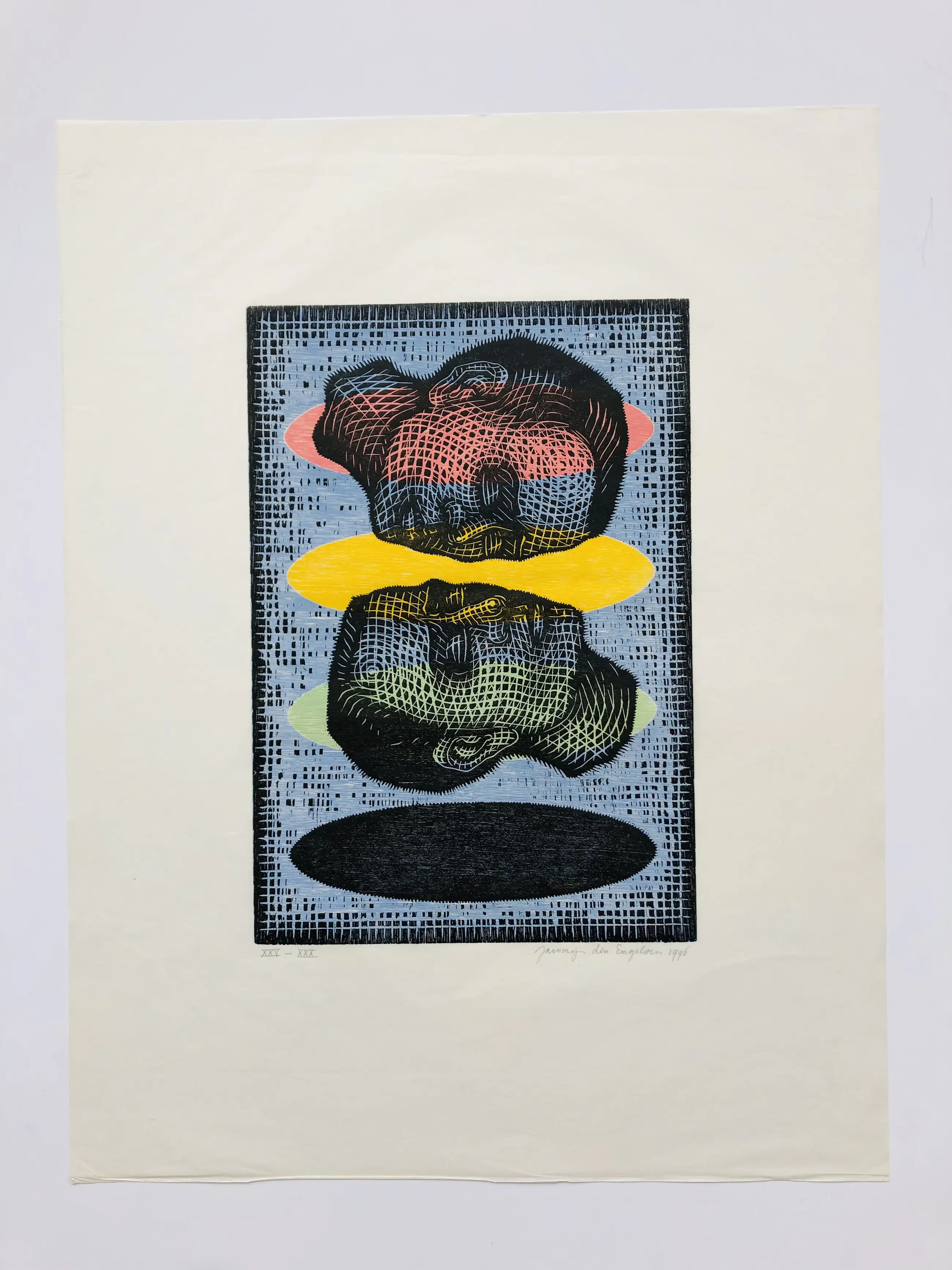 Mooi werk van Jacomijn den Engelsen. De gedetailleerdheid is erg fraai in dit werk. Gedrukt op Japanspapier.