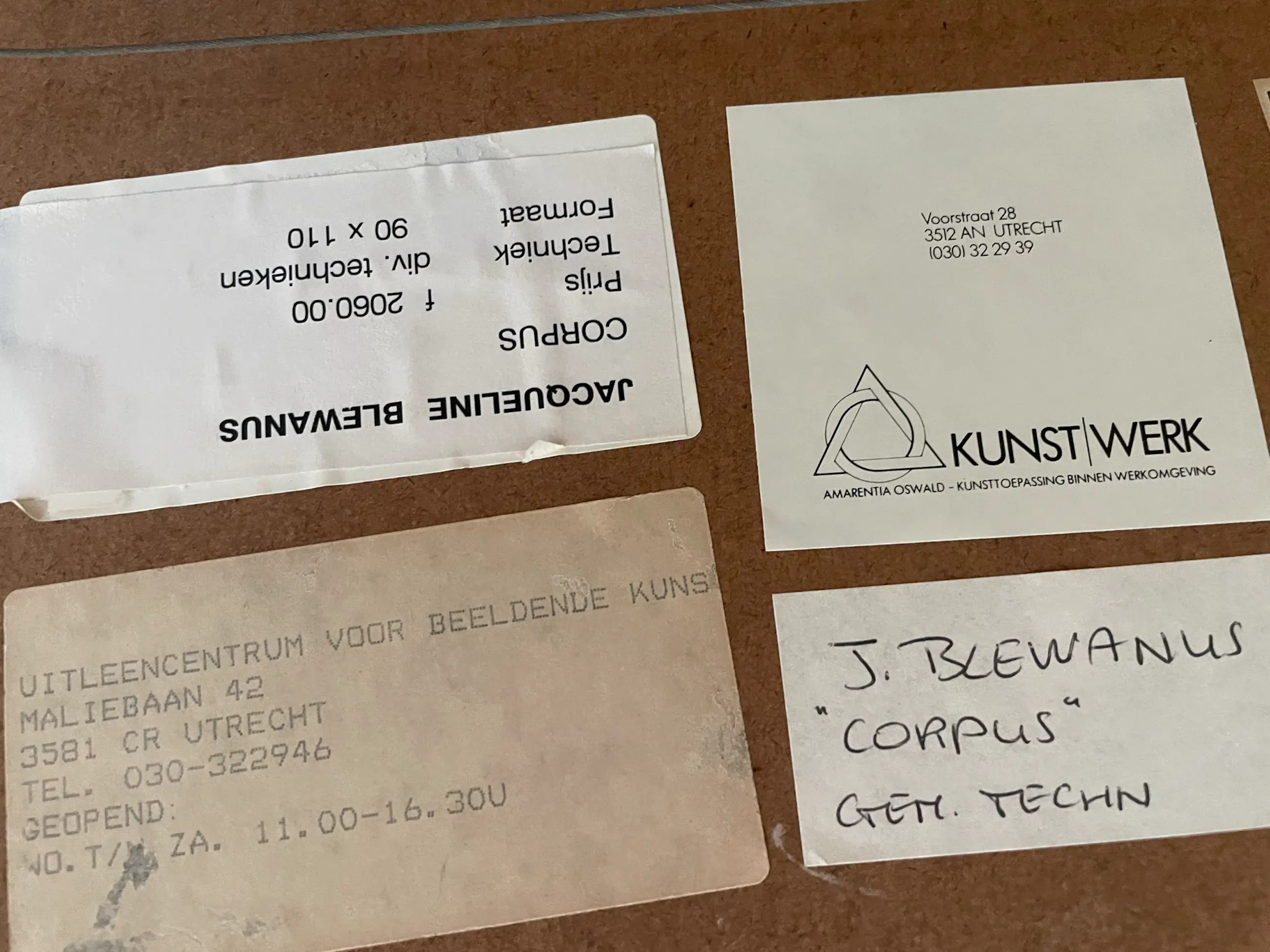 Het werk is af te halen op locatie. Als koper dient u zelf verpakkingsmateriaal mee te nemen. De locatie is: Utrecht, Nederland