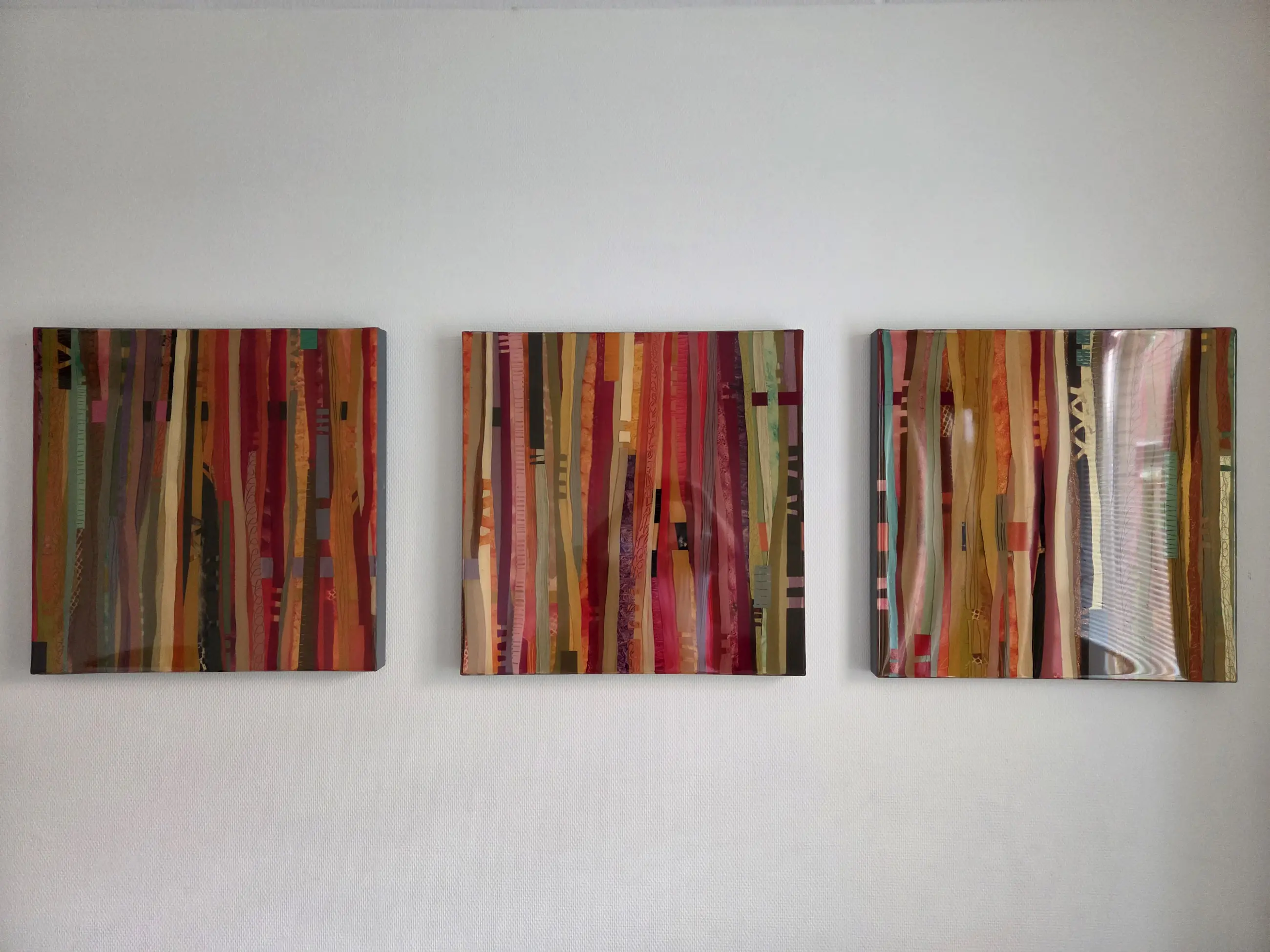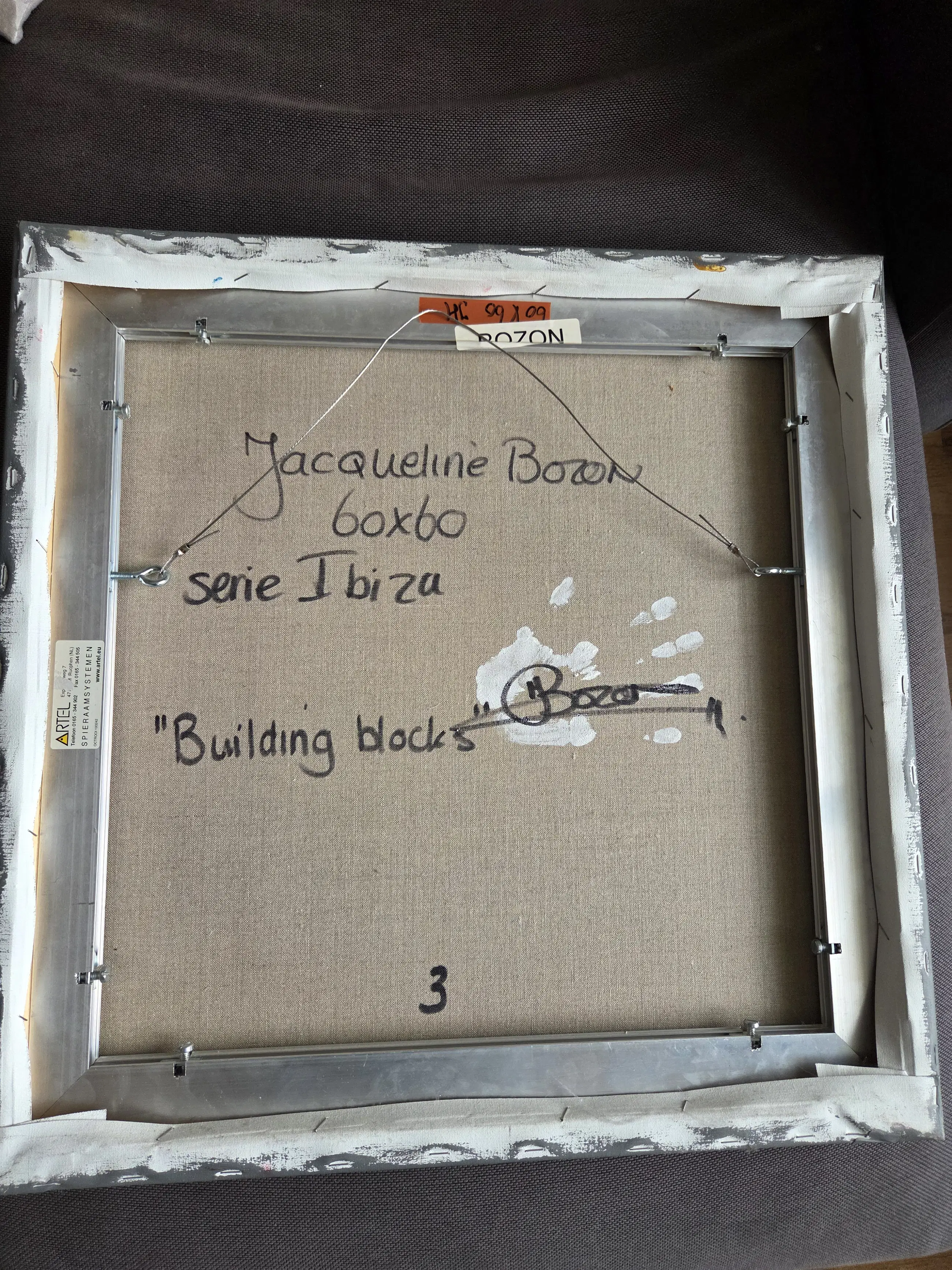 Prachtig drieluik genaamd "Building blocks" uit de Ibiza serie. Er is gewerkt met lagen epoxy hars om de kleuren te versterken en het werk de glossy uitstraling te geven die Ibiza voor veel mensen heeft.