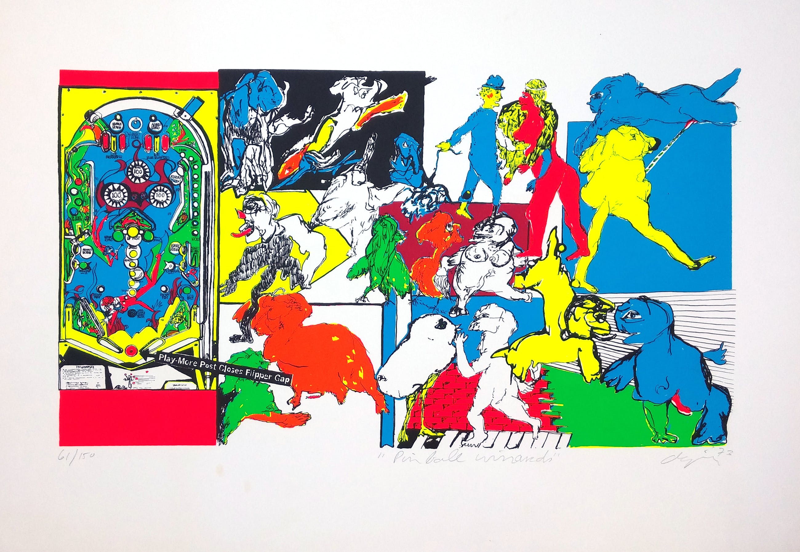 Kleurrijk werk van Jacqueline de Jong . Prent van de maand NRC 1973