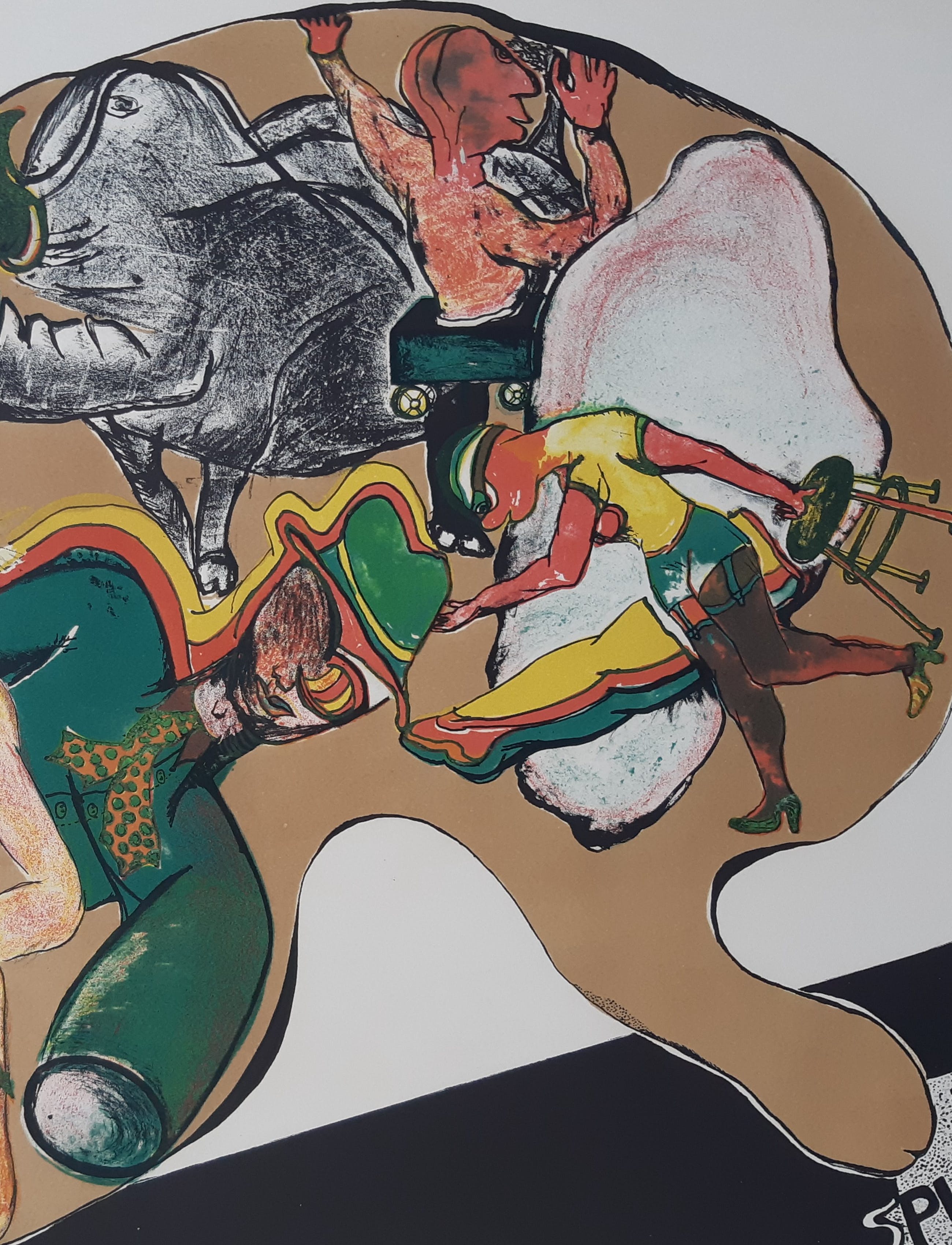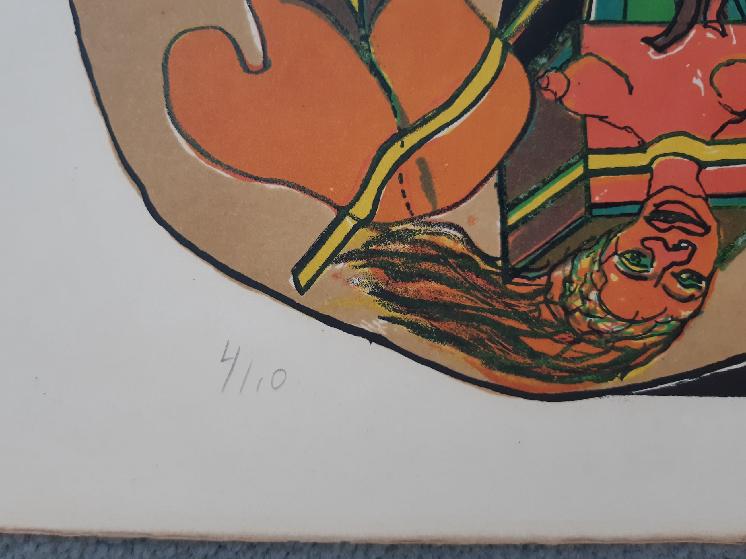 Litho van Jacqueline de Jong, gesigneerd, gedateerd en genummerd 4 / 10. De conditie is goed, het werk is nooit ingelijst geweest, het papier is egaal enigszins vergeeld, donkerder aan de rand waar het geschepte papier dun is (zie foto's).