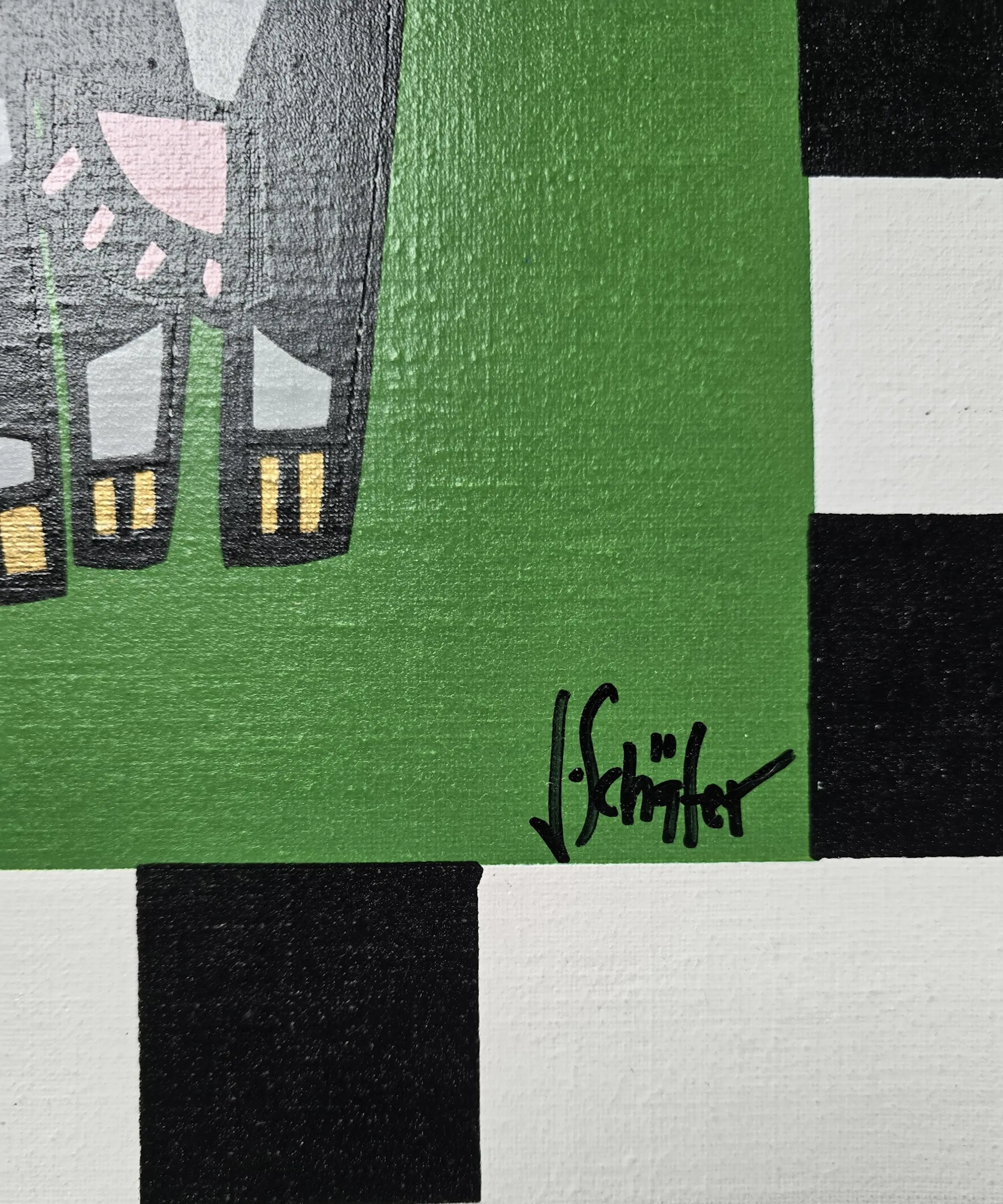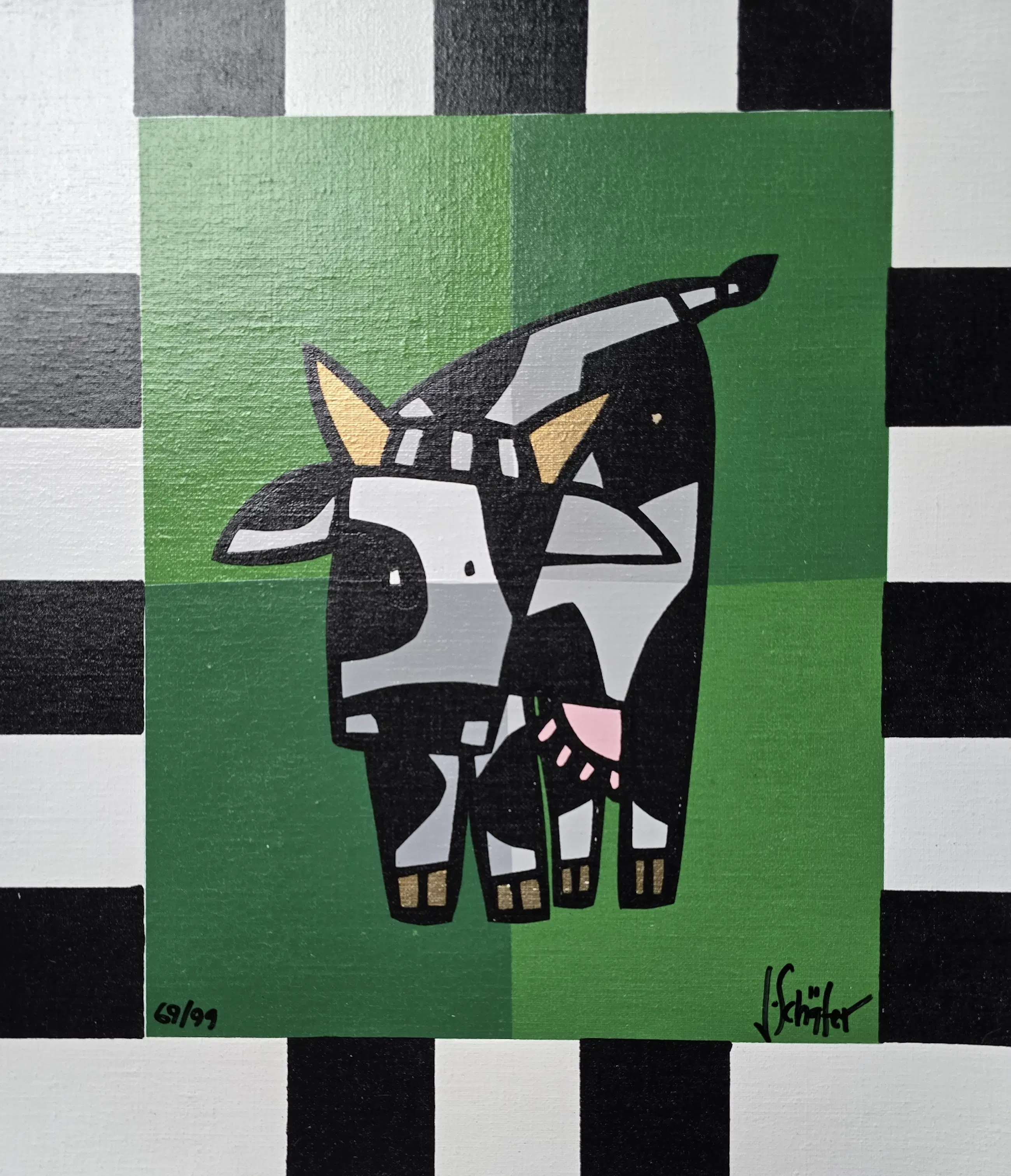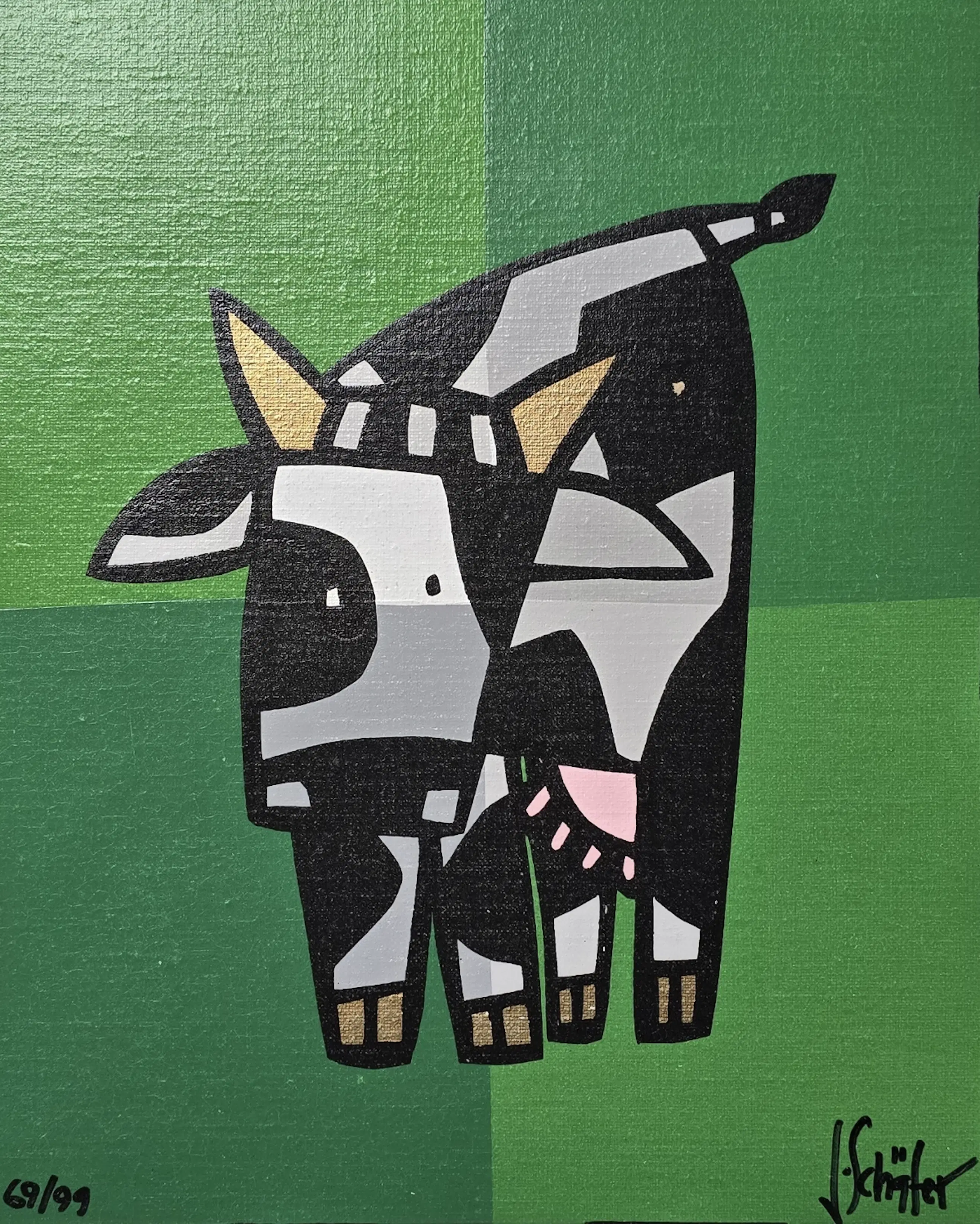 hand gesigneerde en genummerde zeefdruk op linnen van Jacqueline Schafer