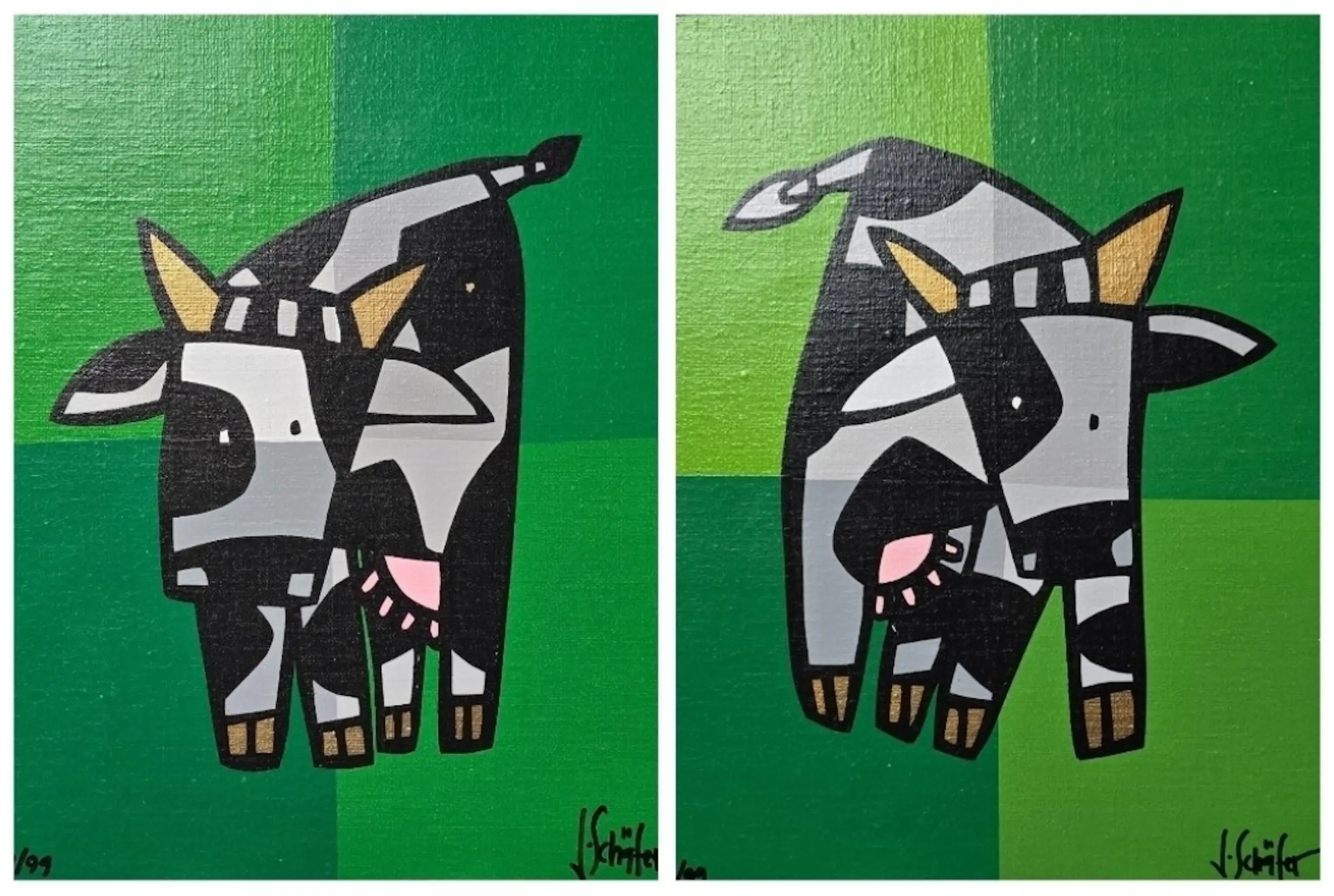 2 prachtige hand gesigneerde en genummerde zeefdrukken op linnen van Jacqueline Schäfer