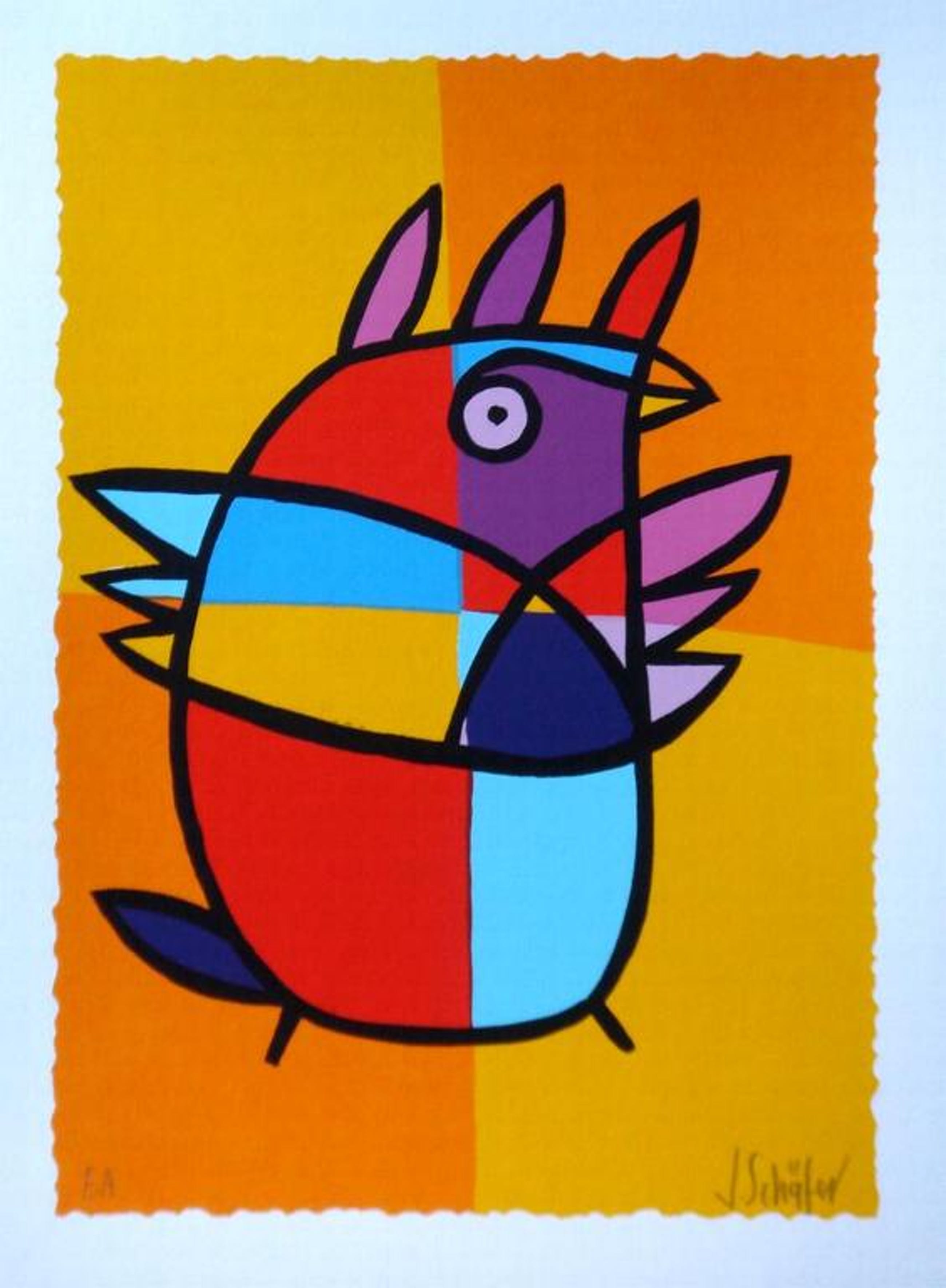 Titel: Gele Vogel (vormt een set met de Blauwe Vogel (zie andere veiling))