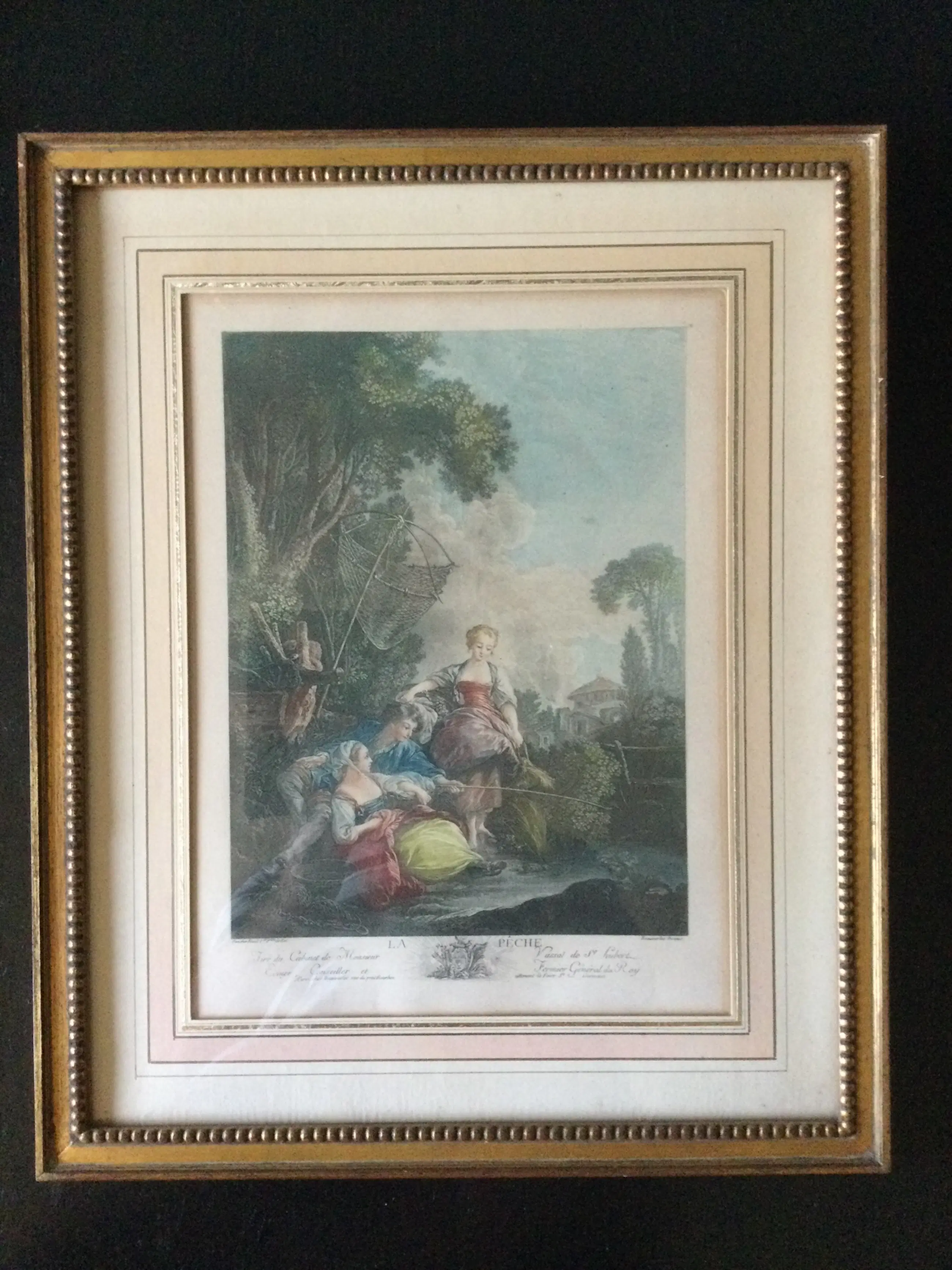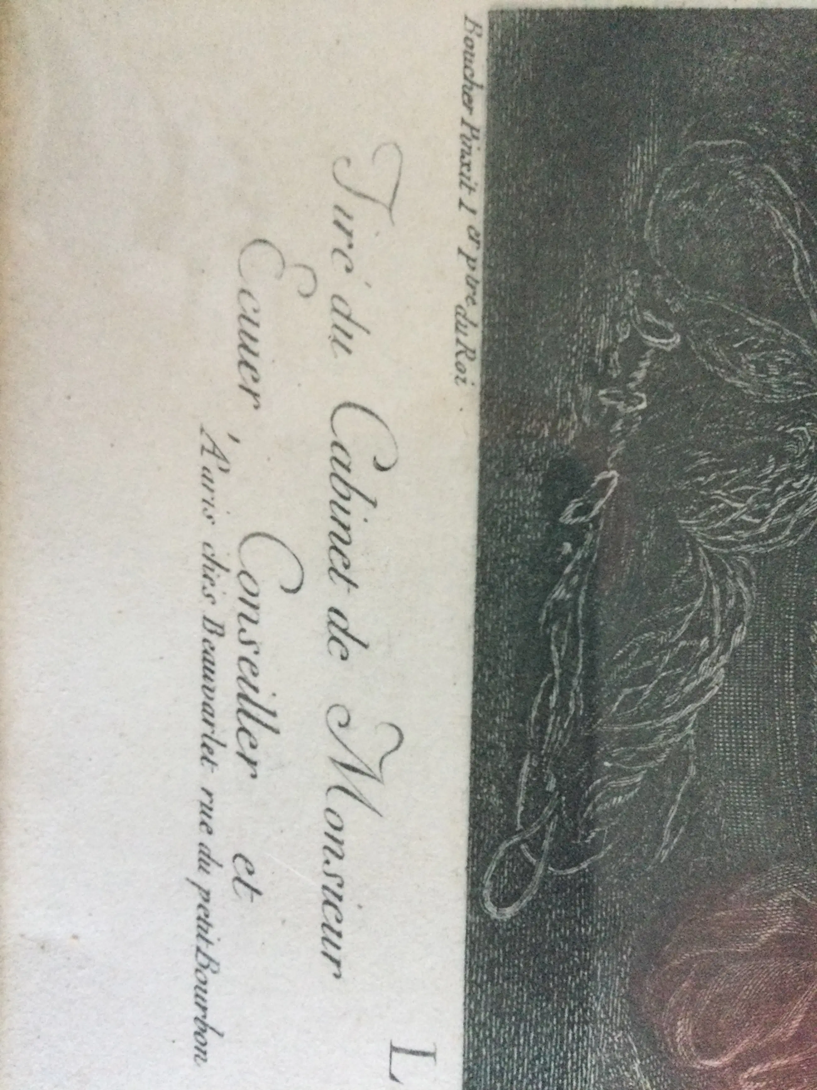Jacques-Firmin Beauvarlet (1731-1797) naar François Boucher (1703–1770), Premier peintre du Roi. Kopergravure en etsing, met latere handkleuring. Uitgegeven te Parijs "chés Beauvarlet, rue du petit-Bourbon” (opschrift). Datering ca. 1765–1775 (druk); inkleuring vermoedelijk 19e/20e eeuw.