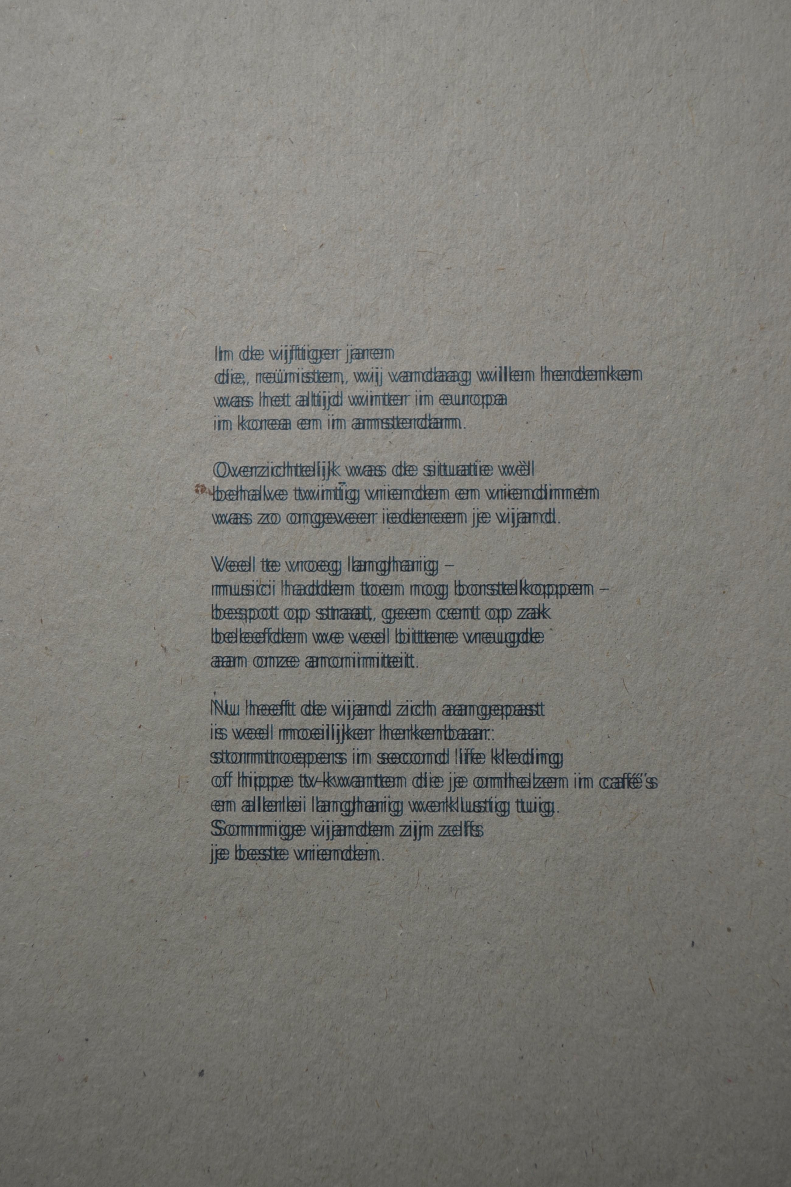 teksten werden gedrukt door Mart Spruyt te Amsterdam de vormgeving werd