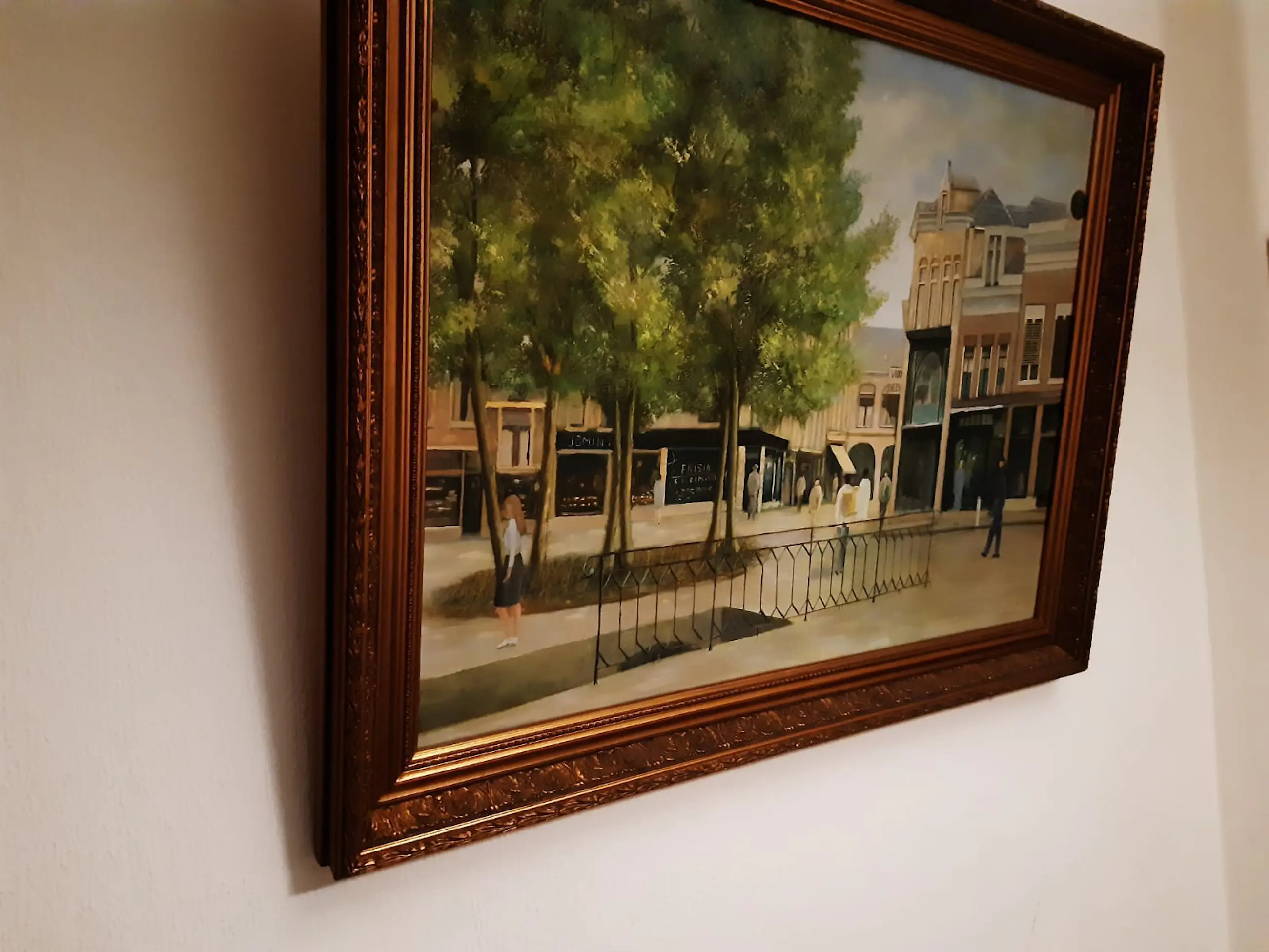 Prachtig schilderij stadsleven van sneek prachtig geschilderd door kunstenaar fboersma Afmetingen breedte 92cm inclusief lijst Afmetingen hoogte 72 cm inclusief lijst Nogmaals heel mooi werk