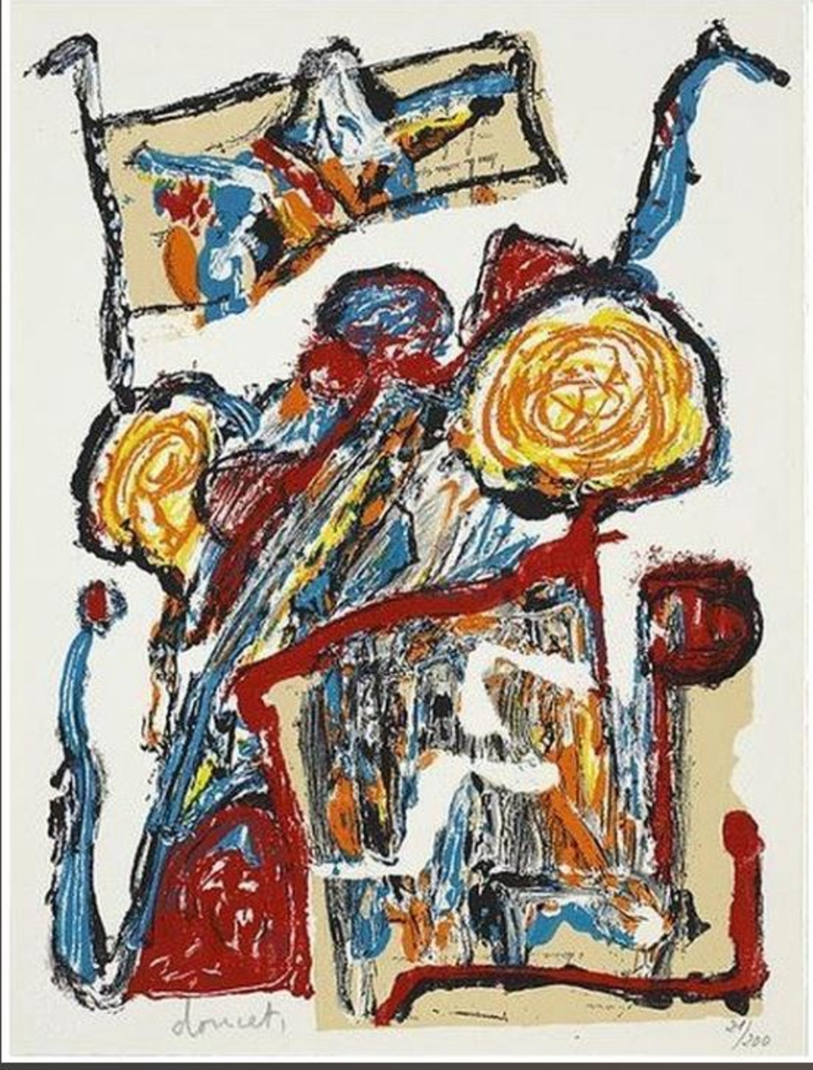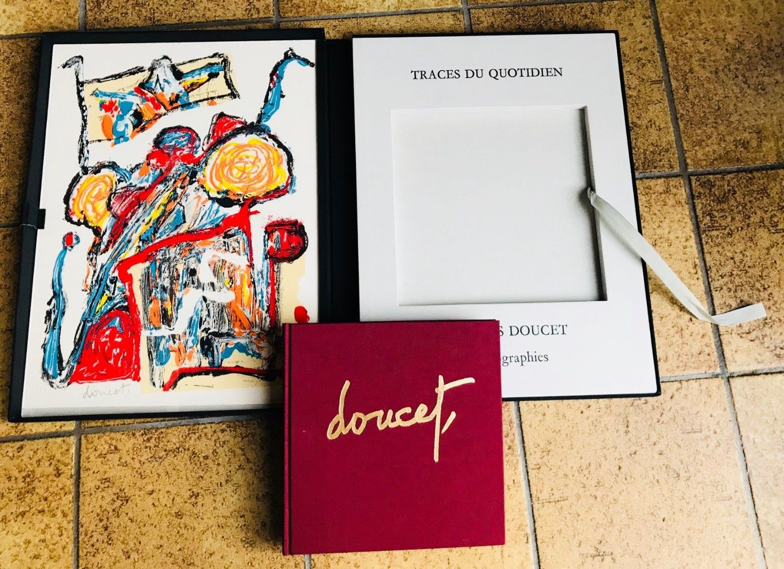 Portfolio (luxe editie): 3 met potlood gesigneerde Litho's van Jacques Doucet + boek met tekst door Corneille en Joseph Paul Schneider in een mooi zwart portfolio! In prima staat. Collector item. De 3 litho's zijn in uitmuntende staat, steeds goed bewaard gebleven.
