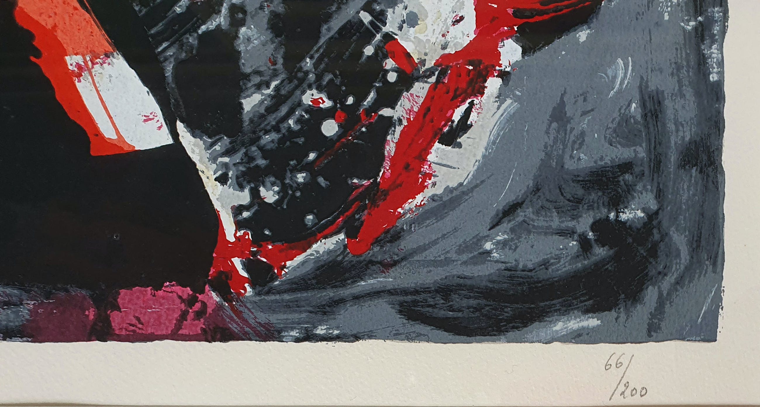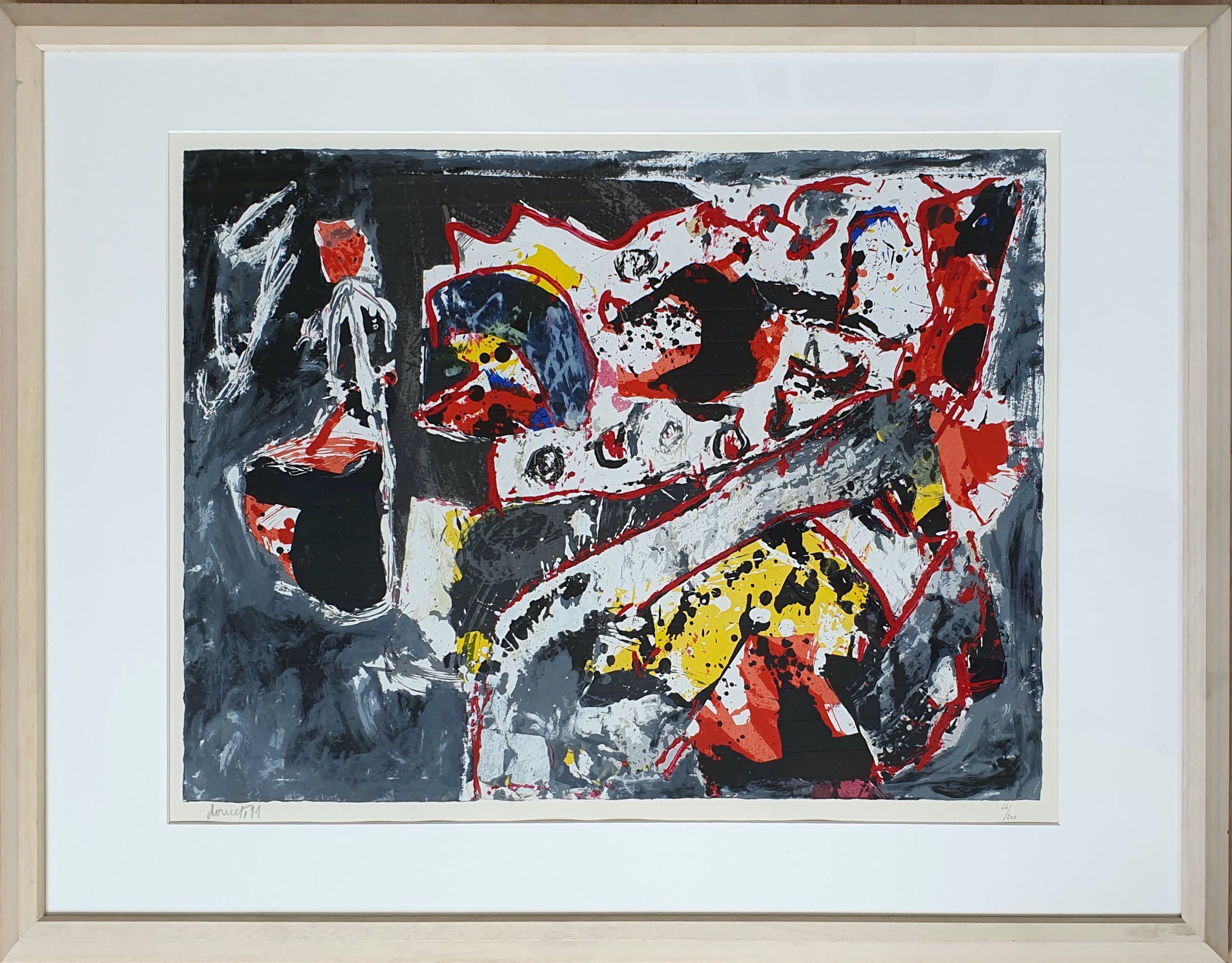 Prachtige, grote compositie van Jacques Doucet. Zeefdruk op papier. De kunstenaar heeft het werk met potlood handgesigneerd en gedateerd (‘91) en genummerd (66/200).