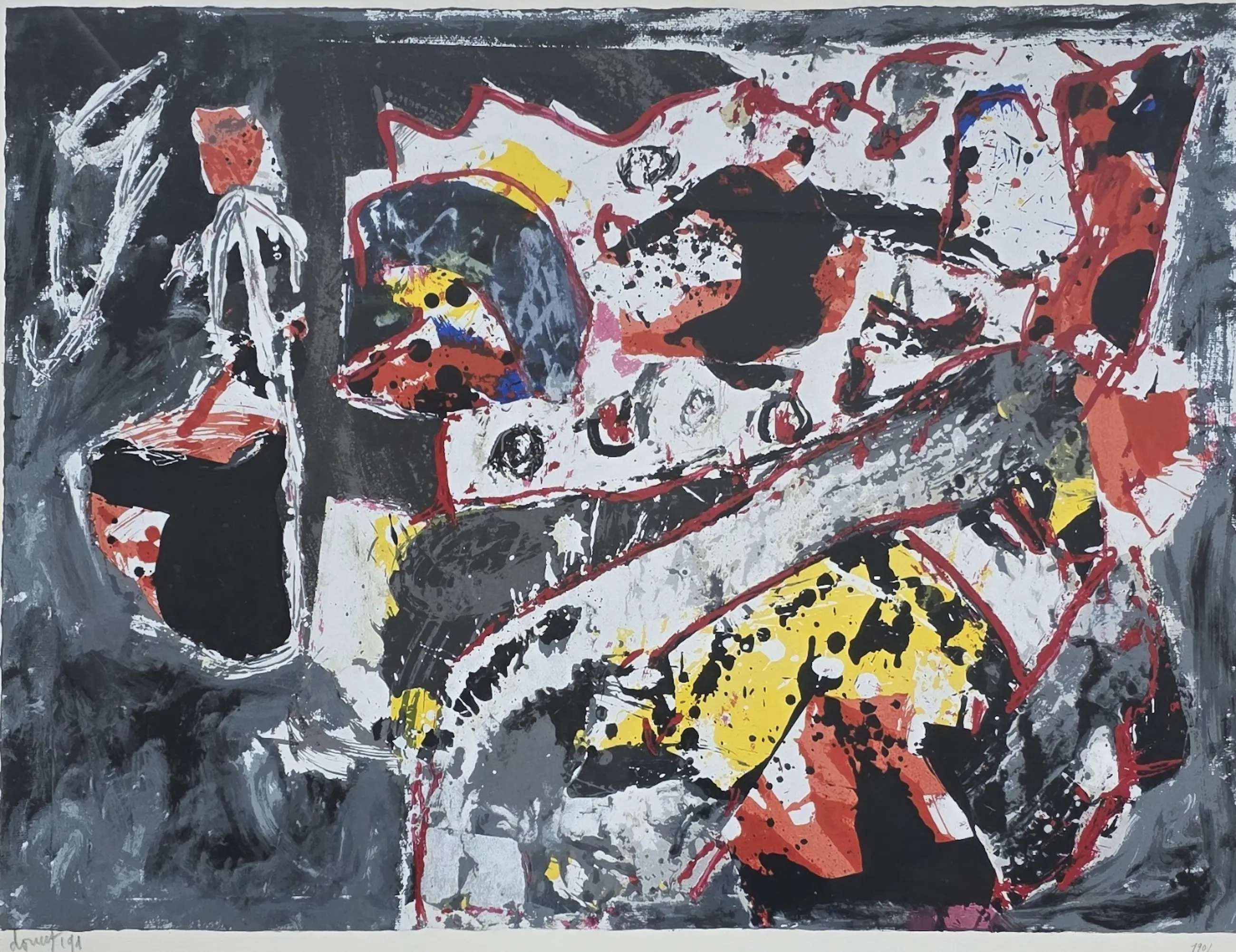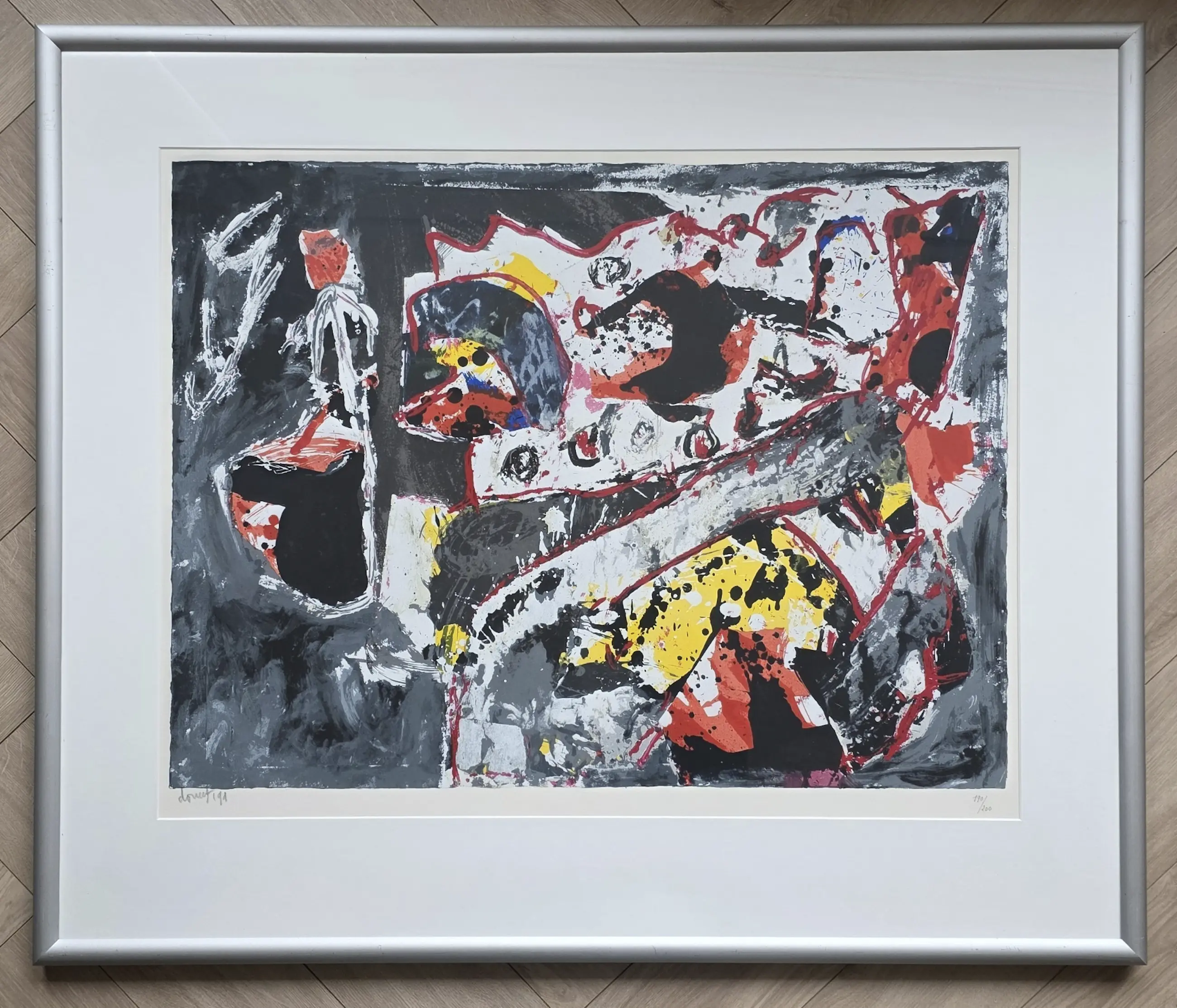 Grote ingelijste zeefdruk van Jacques Doucet (Cobra) Eté A Saint-Christol