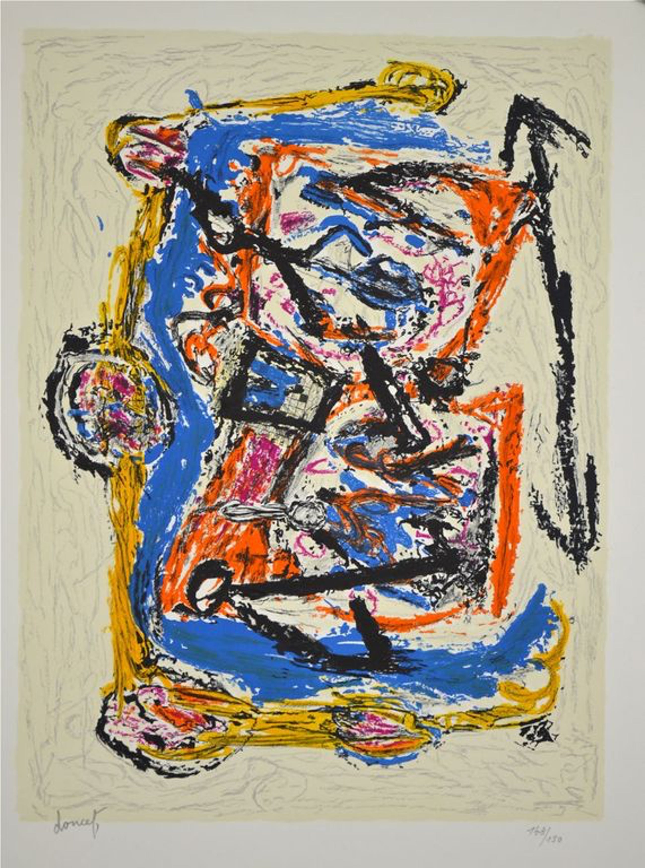 Zeer mooie portfolio met drie litho’s en gedichten van Jacques Doucet.
