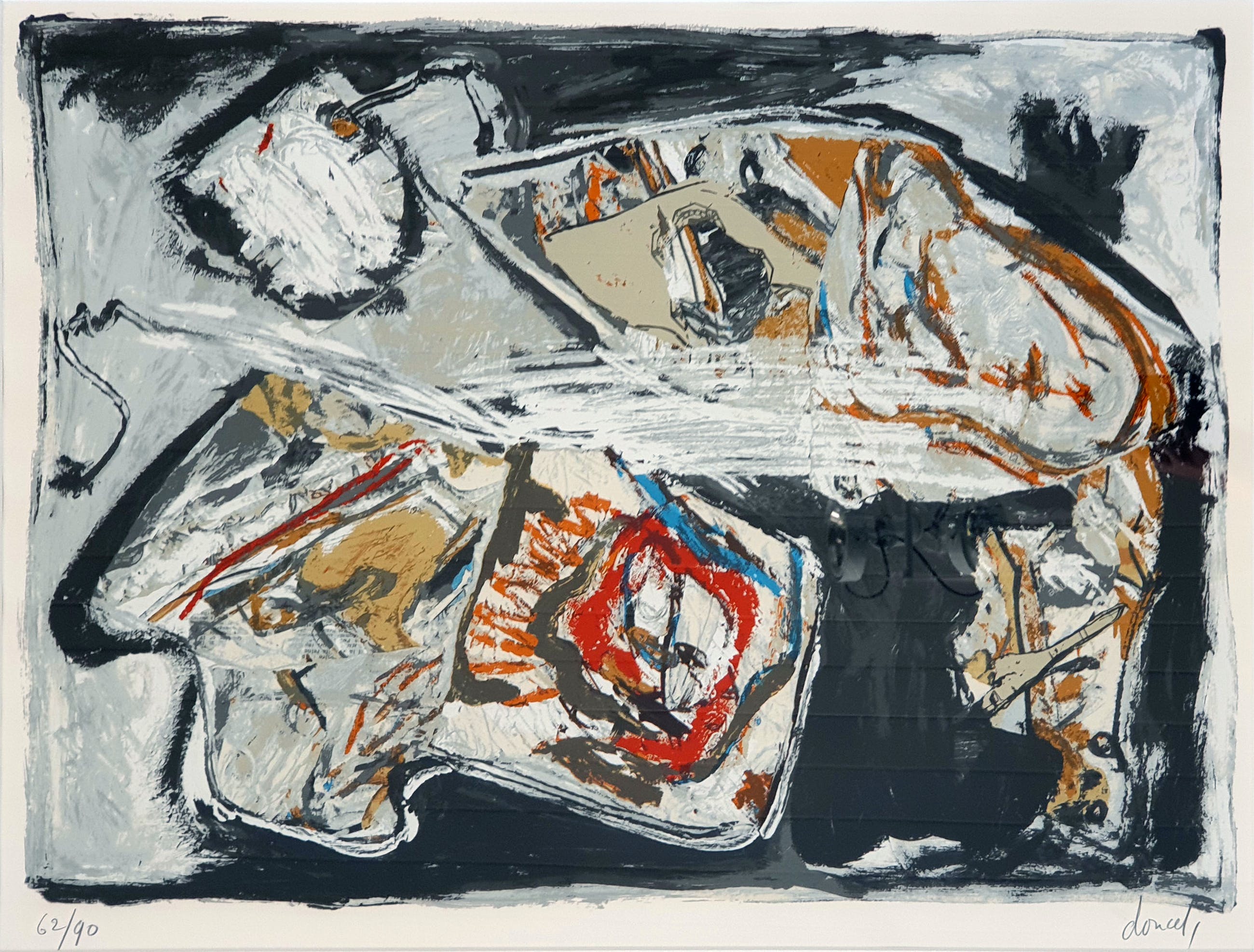 Opgenomen in diversen particulieren collecties en musea. Jacques Doucet (Boulogne-sur-Seine, 1924 - Parijs, 1994) was een Frans kunstschilder. en wordt gerekend tot de Cobra groep.