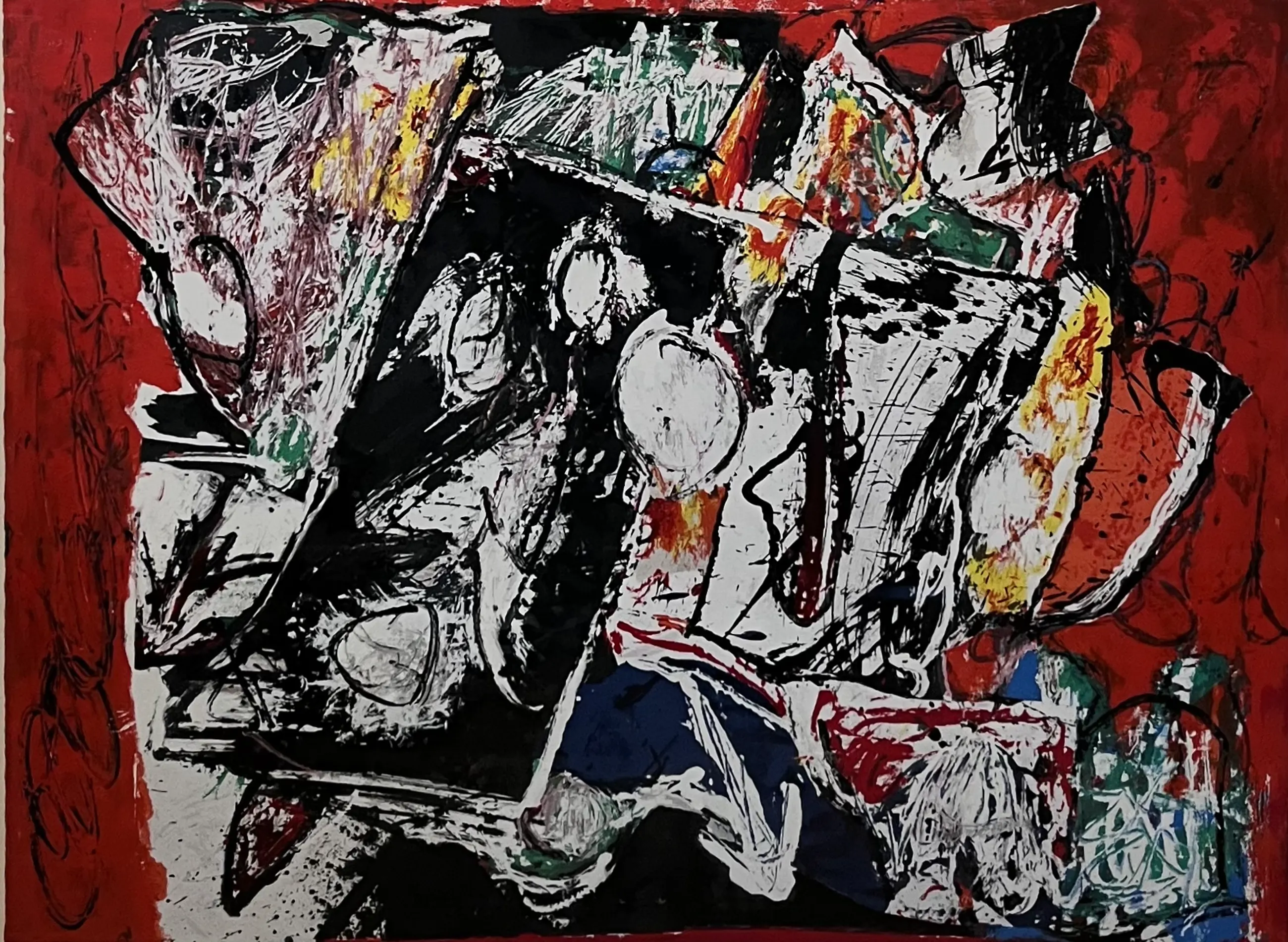Mooie zeefdruk van Jacques Doucet, Franse CoBrA met lijst. Een werk dat zo aan de muur kan worden gehangen! U kunt het werk vooraf komen bekijken in de Schatkamer van galerie Rotor in Gorcum, na aankoop afhalen of verzenden per koerier met lijst. De foto is door het glas van de lijst heen genomen. De lijst is niet nieuw. Pademietip: In overleg kunt u uw aankopen laten opslaan in onze verwarmde opslagruimte en ze in een later stadium ophalen.