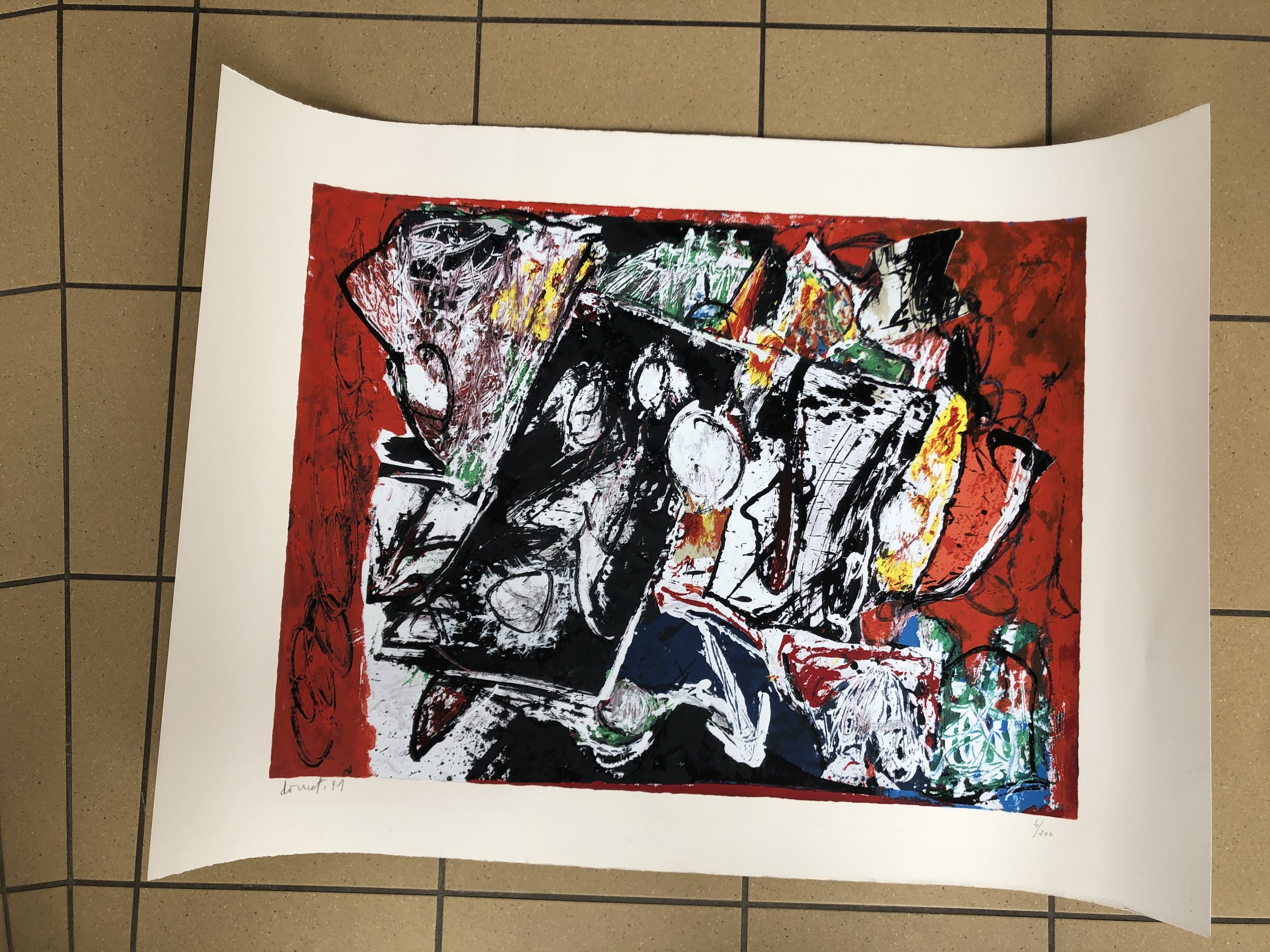 Grote en fraaie zeefdruk van Cobrakunstenaar Jacques Doucet. U kunt het werk vooraf komen beoordelen in de schatkamer van galerie Rotor in Gorcum. In overleg kunt u uw aankopen laten opslaan in onze verwarmde opslagruimte en ze in een later stadium ophalen.