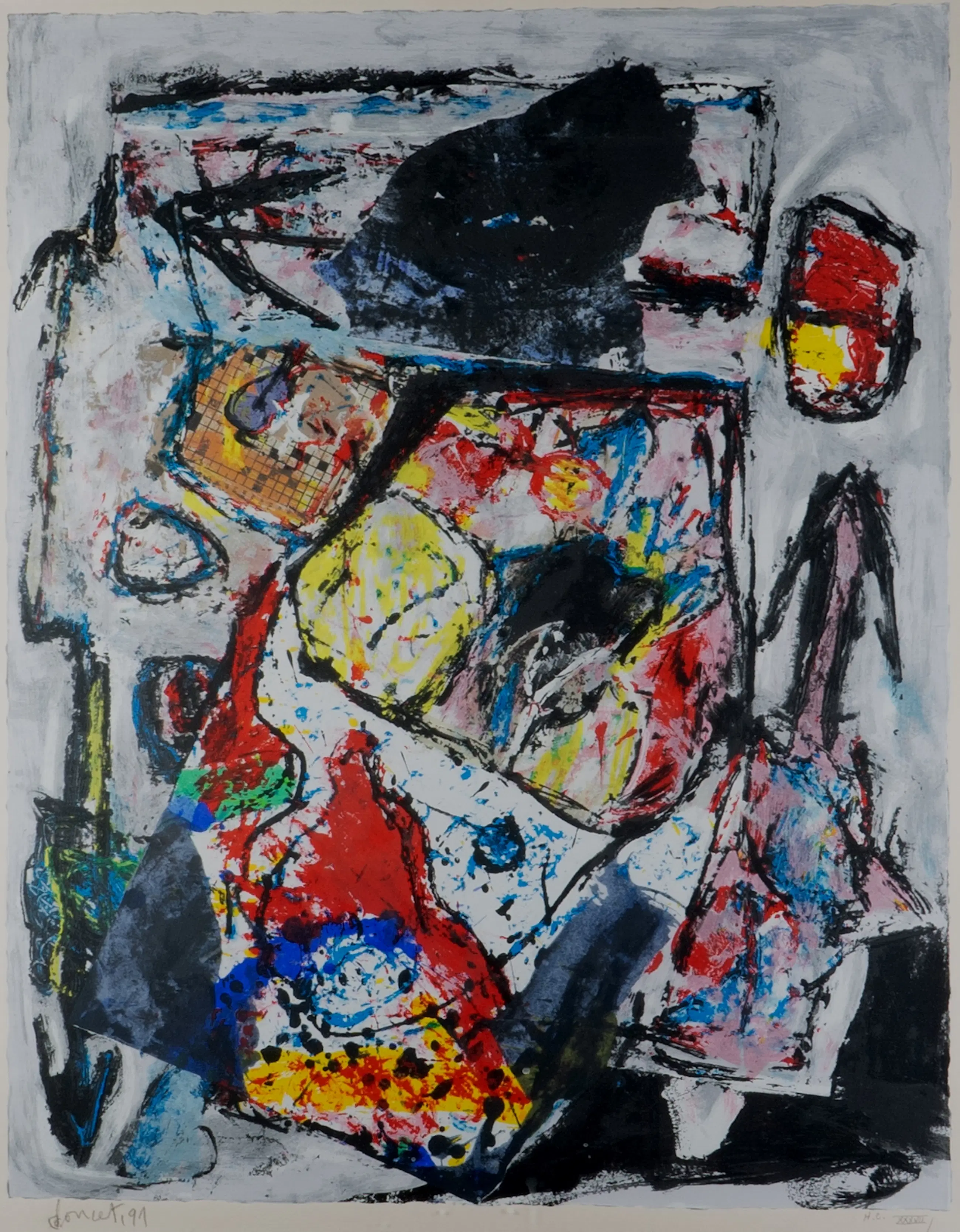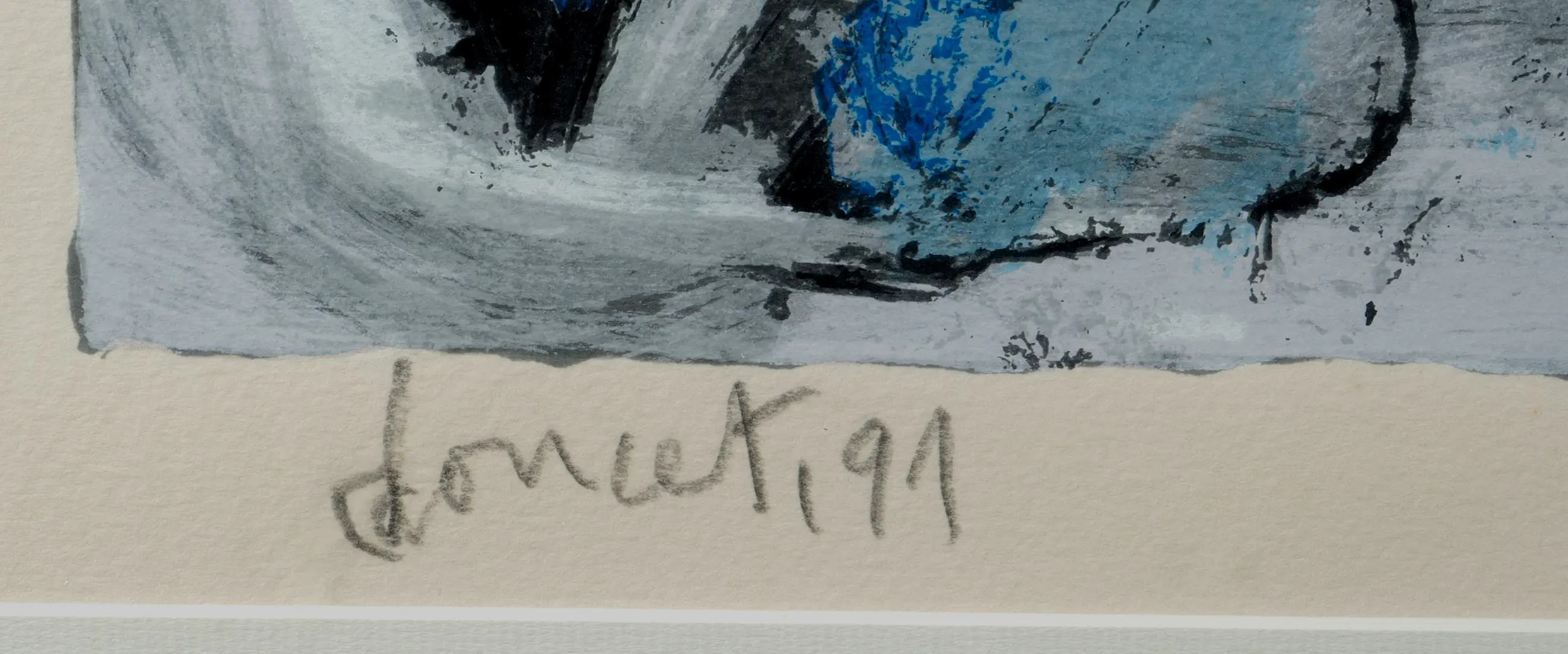 Ingelijste litho van Jaques Doucet. Zonder titel. Jaar: 1991. Oplage: H. XXX VII / L. Afmetingen incl lijst: H100 x b80cm. Afmetingen voorstelling: H80 x b60cm. Het werk is rechts onderaan, gesigneerd door de kunstenaar. De authenticiteit van het aangeboden werk wordt volledig gegarandeerd. Een certificaat van echtheid kan, op aanvraag, worden gemaild.
