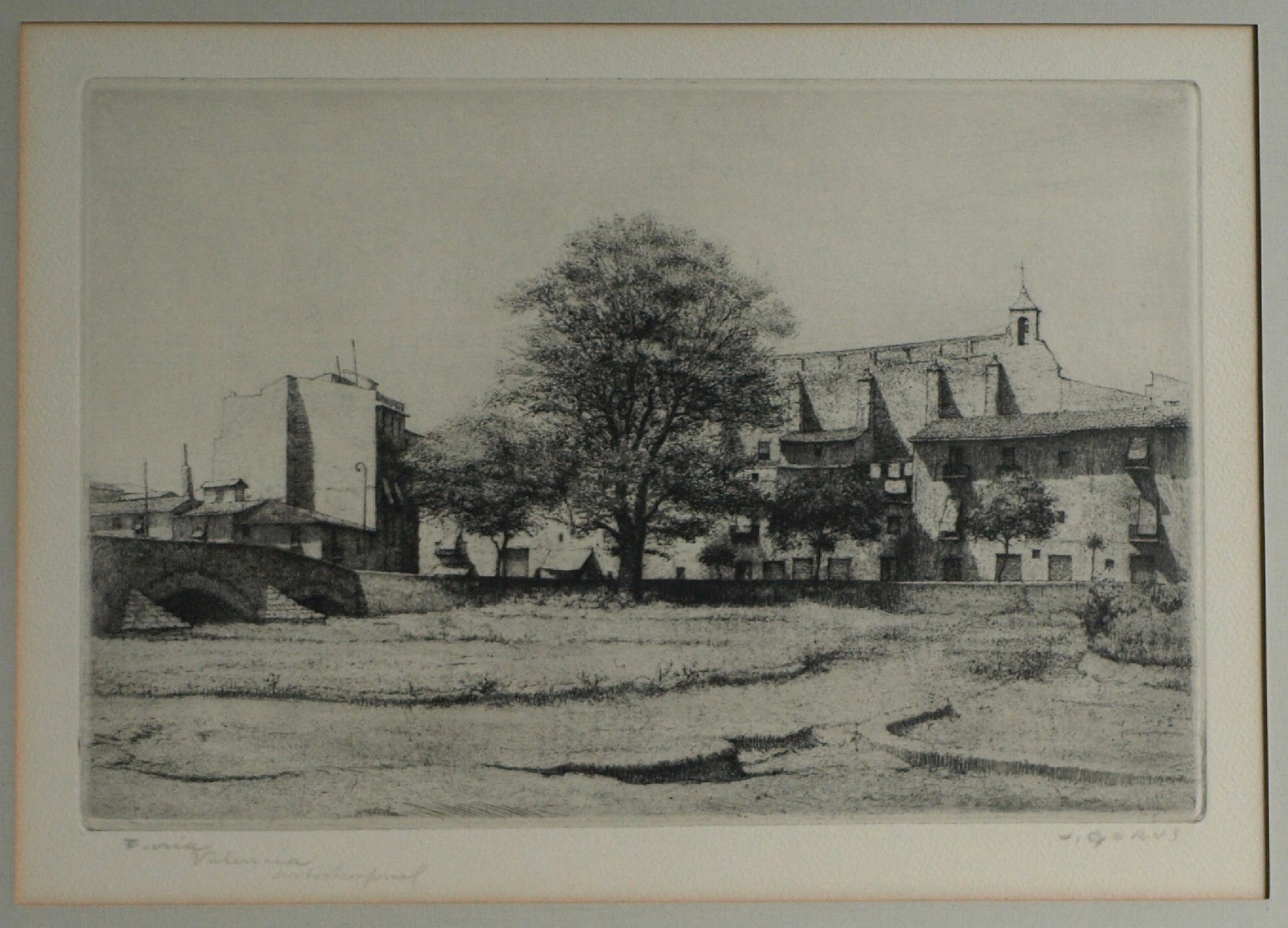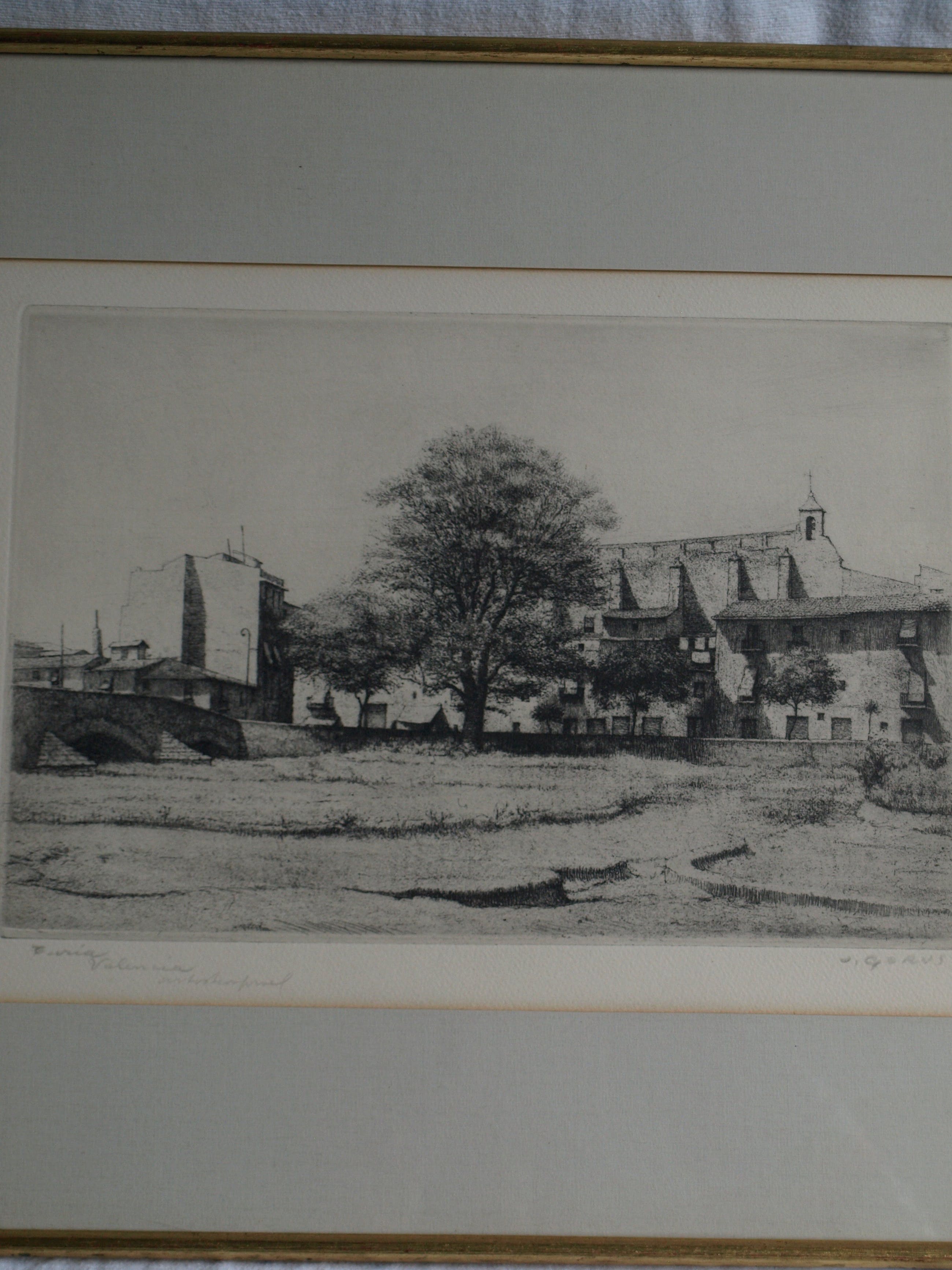 Een ingelijste ets van de Belgische kunstenaar Jacques