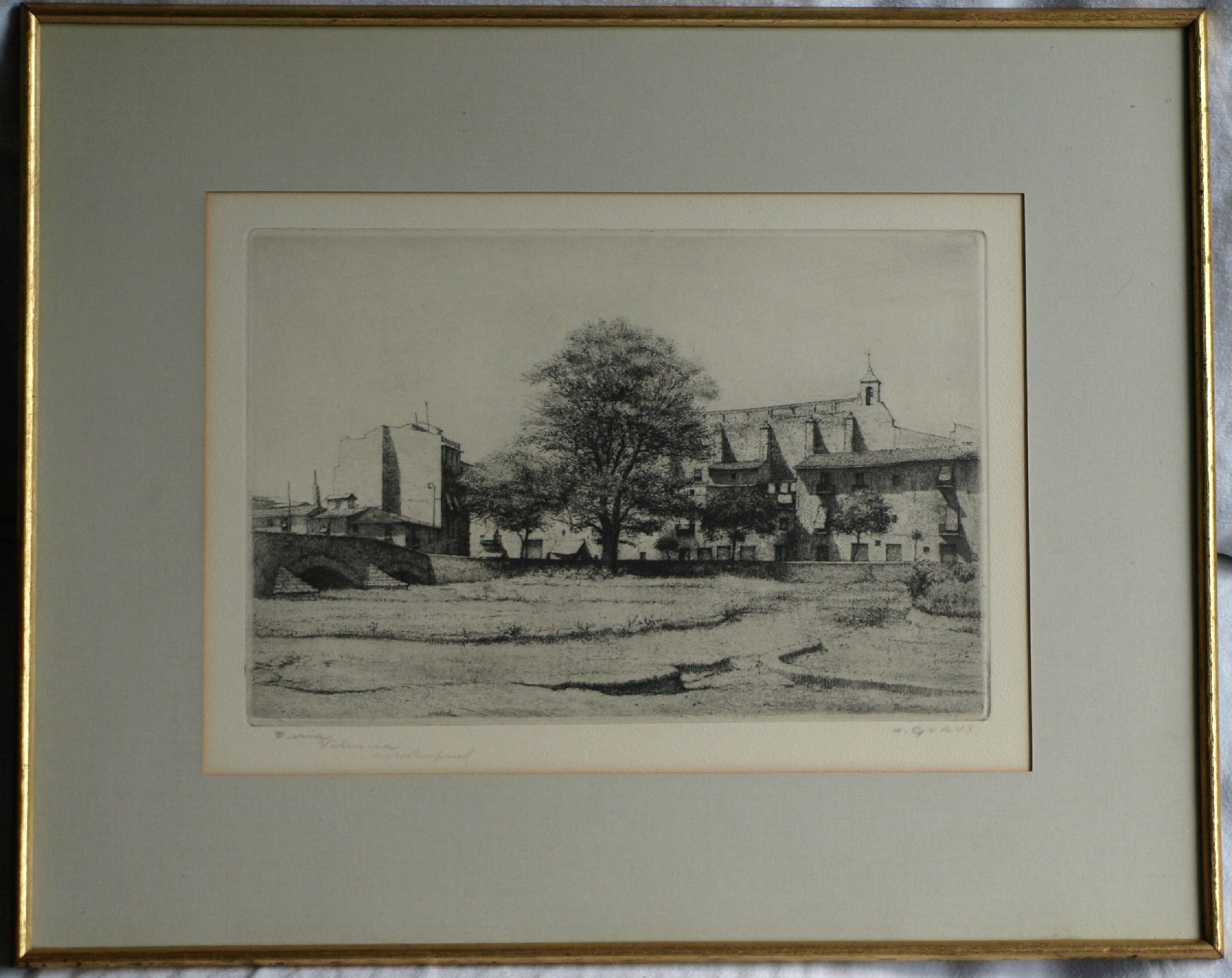 -Afmetingen: Lijst: 38 x 48 cm. Beeld / ets: 20 x 30 cm.