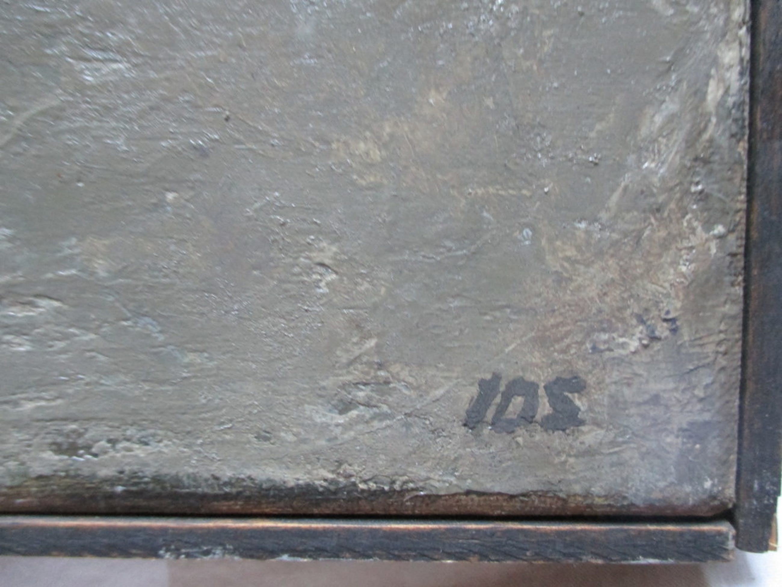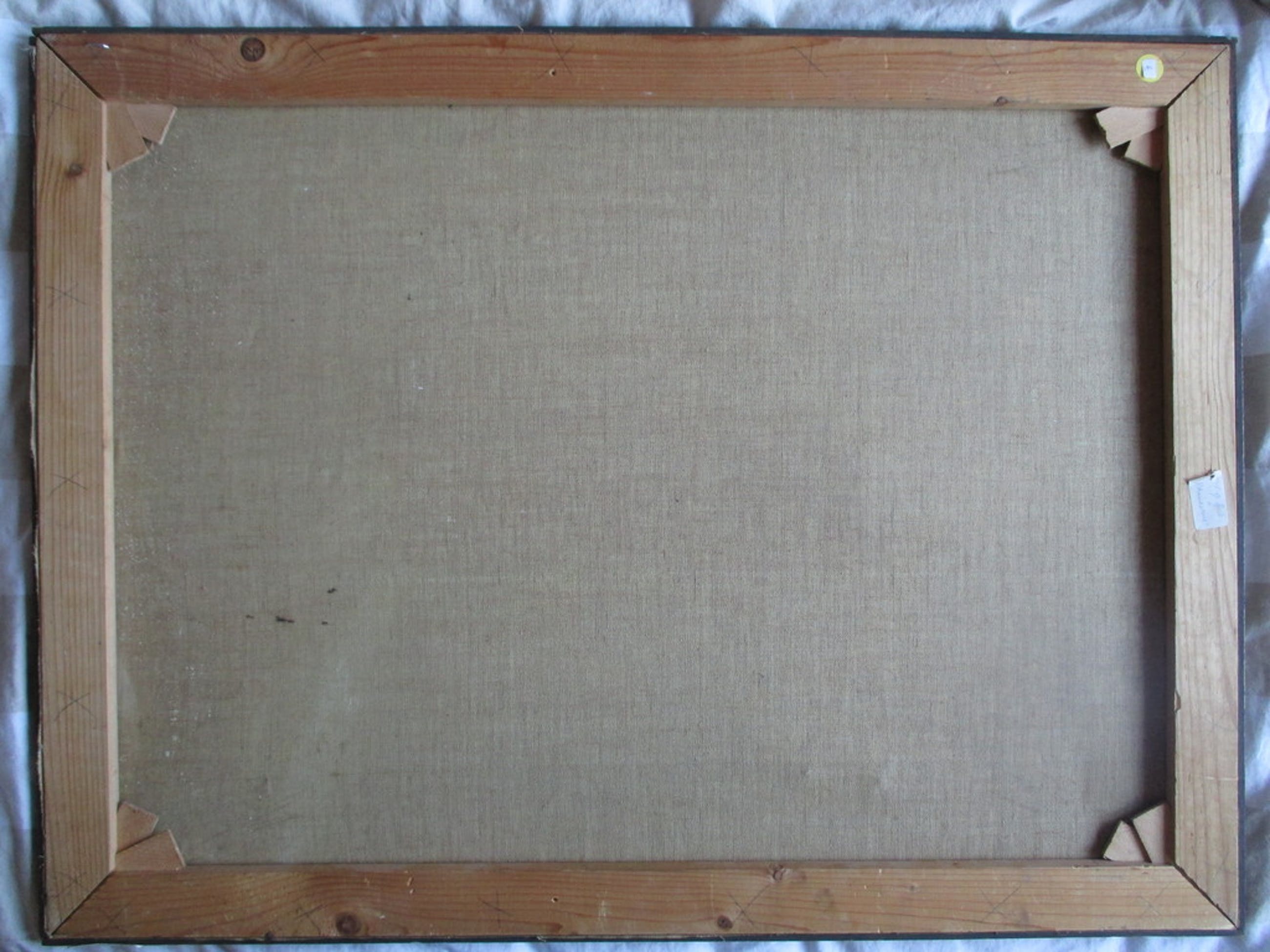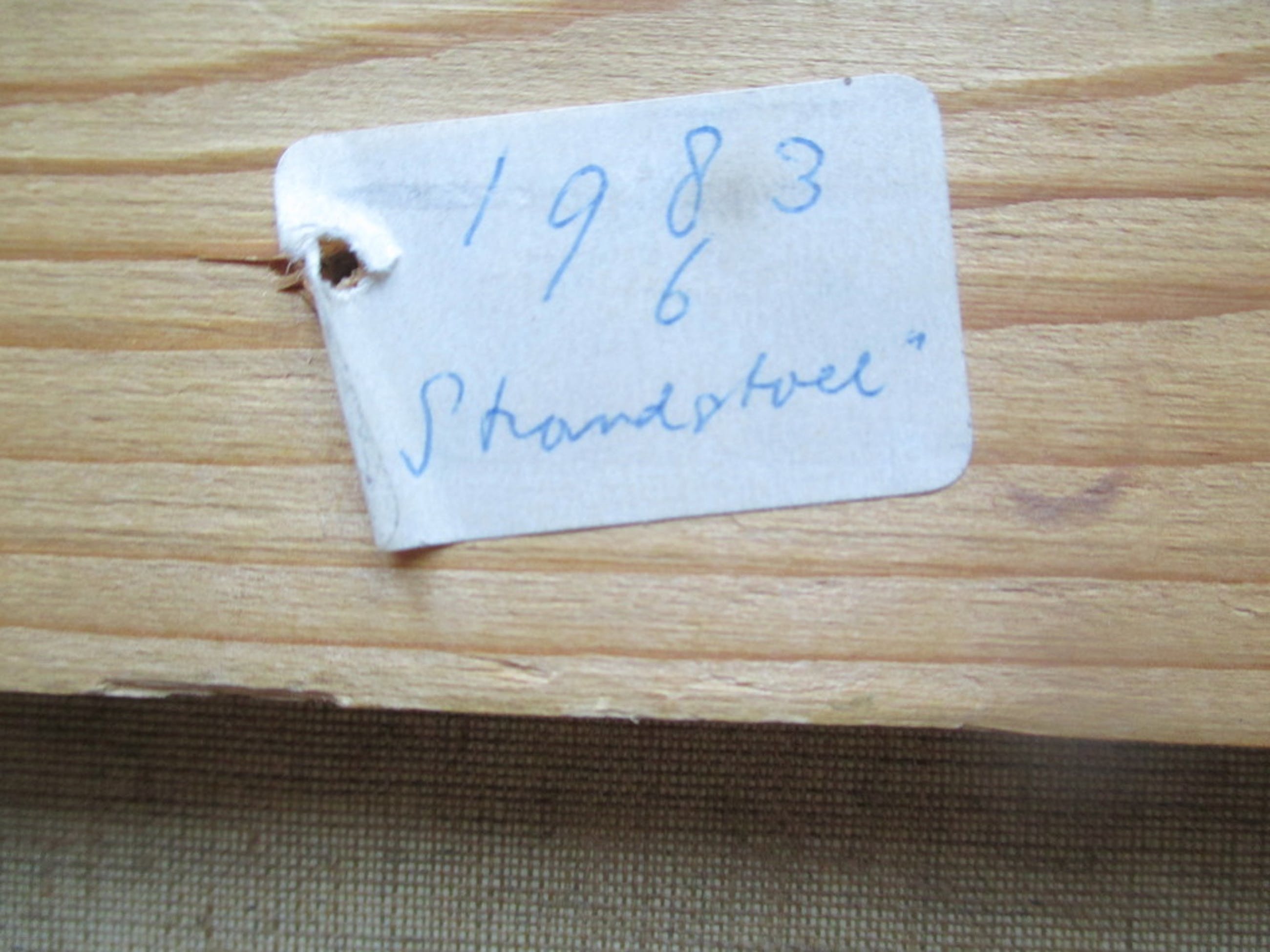 van Jacques Idserda: een schilderij op jute gespannen op een spierraam met eenvoudige latten omlijsting. Rechtsonder met monogram gesigneerd. Afm. 61x81 cm. Achterop staat "strandstoel 1983" Verzending alleen in Nederland mogelijk: 15,00. Wordt verzonden tussen twee platen.
