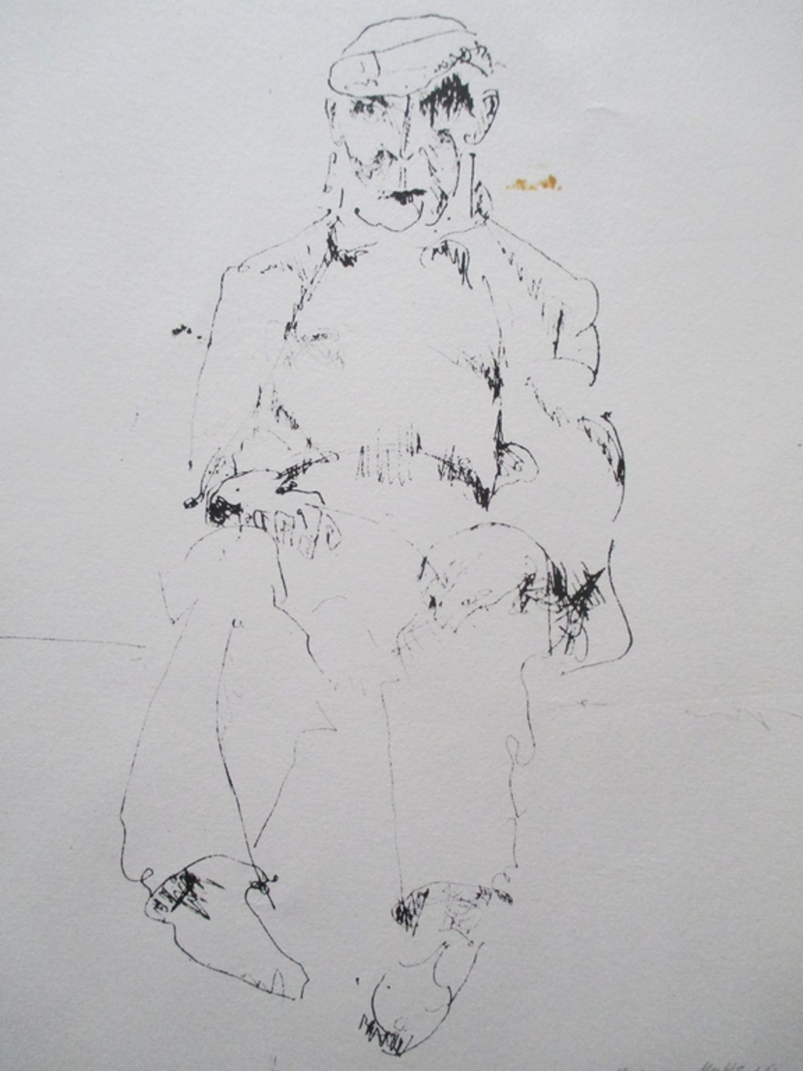 Litho van Jacob Jutte (1930-) uit 1961, getiteld "Dakloos", r.o gesigneerd in potlood. Afm. blad 19x25 cm. Het blad verkeert in uitstekende staat, alleen zitten er vlak langs de randen vouwen van een eerdere inlijsting op een dik stuk karton, en helaas een bruin vlekje naast het hoofd, zie foto's.