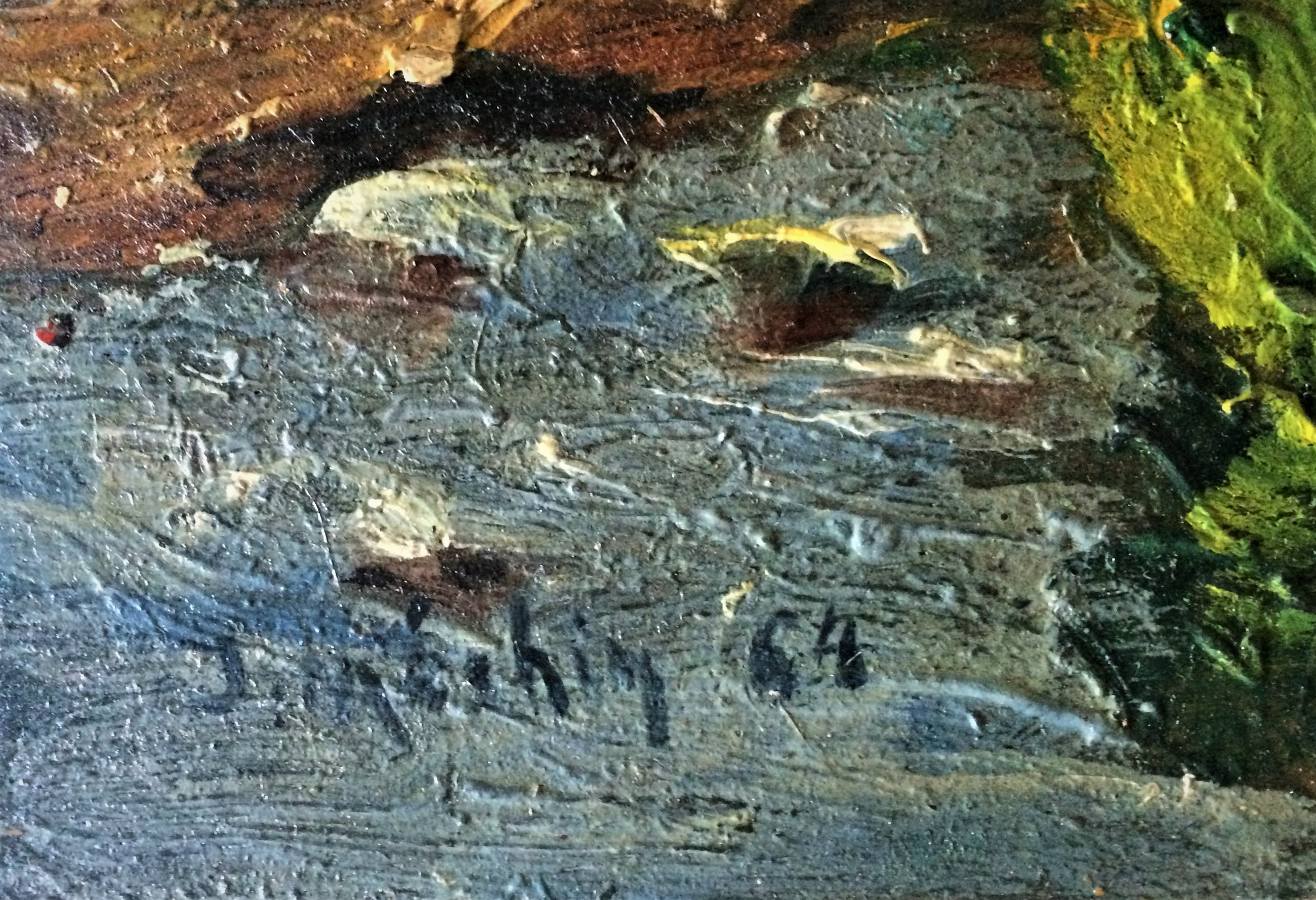 aangeboden een olieverf op paneel (zonder kader). kleurrijk schilderij en dik in de verf geschilderd. gesigneerd onderaan met jaartal 1964 algemeen goede staat. achteraan titel geschreven .Route Ponte Di Nava Italië afmetingen paneel 27 cm x 35 cm achteraan tekst geschreven schilderij hebben later nog tentoon gesteld zie etiketten. foto's maken deel uit en horen bij de beschrijving .